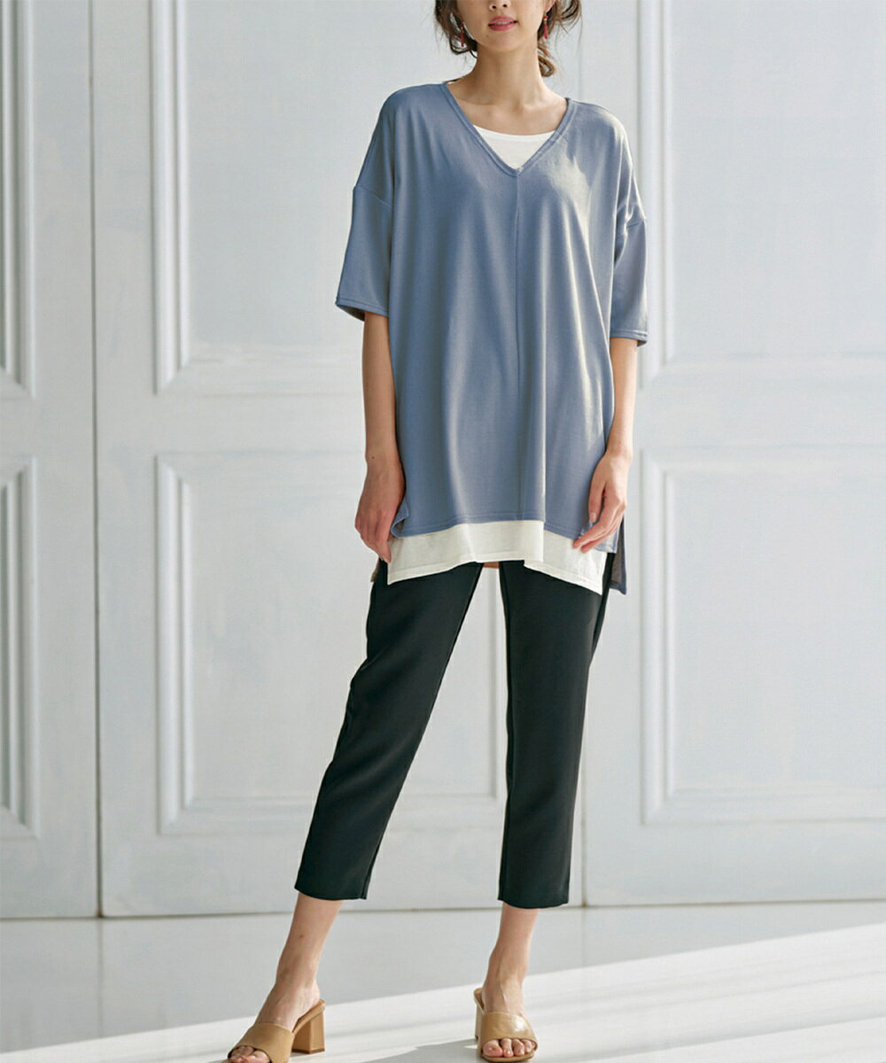 レイヤード風ニットソー半袖チュニック/ラナン(Ranan)
