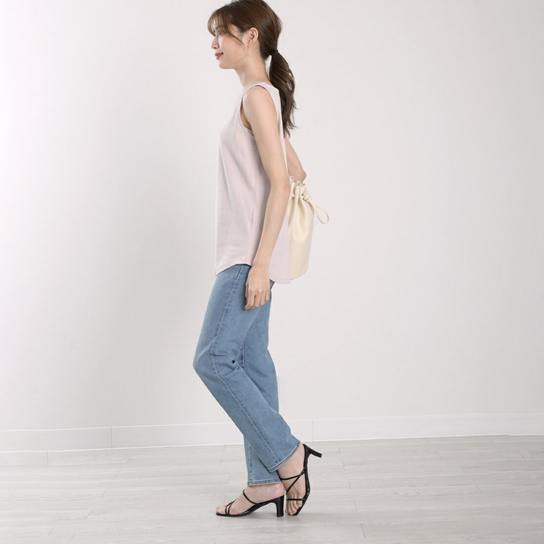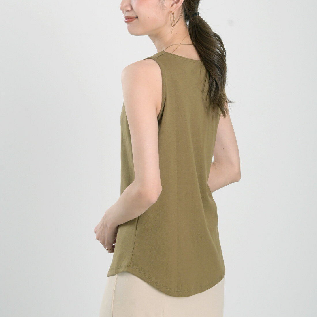 ネックラインは期待通りかなり綺麗に見えます。ただ、同じサイズ選択でも同時購入のリブタイプでは丁度良かった所が、こちらはワンサイズ下げた方が良かったかなという感じになりました。個体差か、生地の差か不明ですが、次回購入する場合はサイズで迷いそうです。