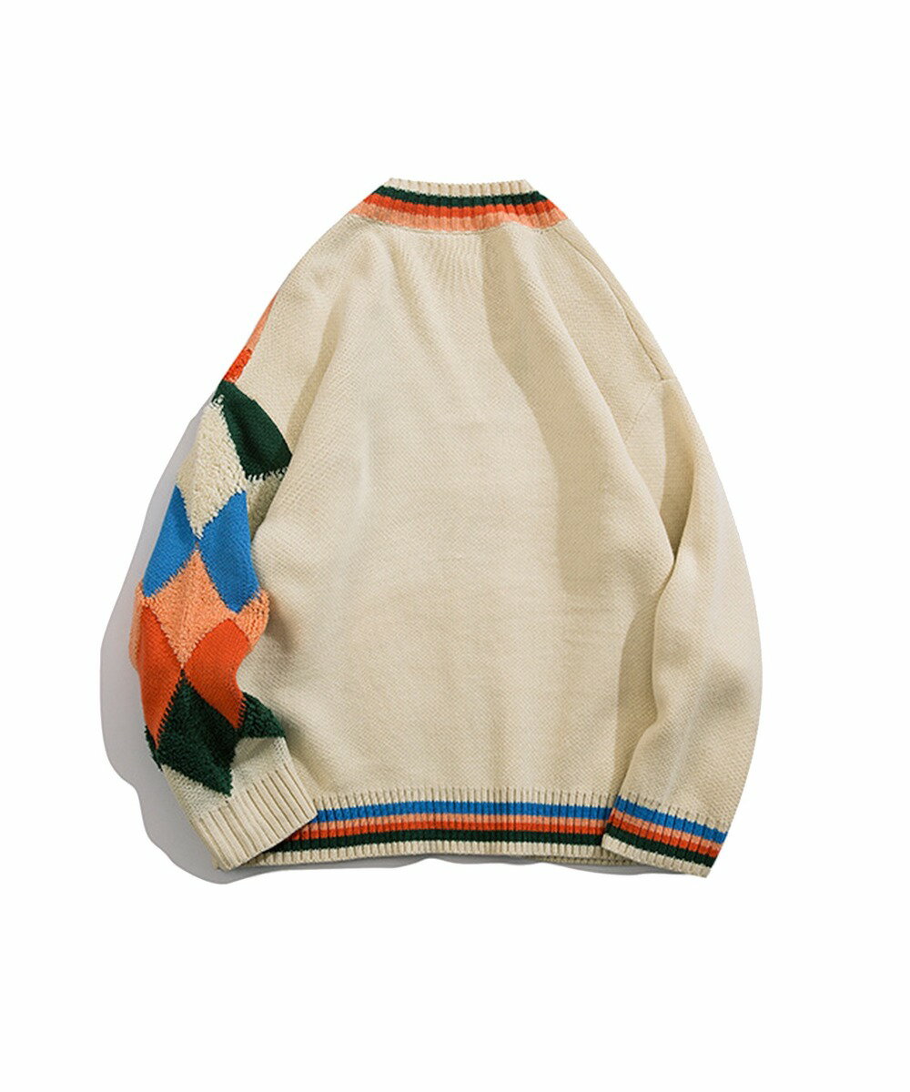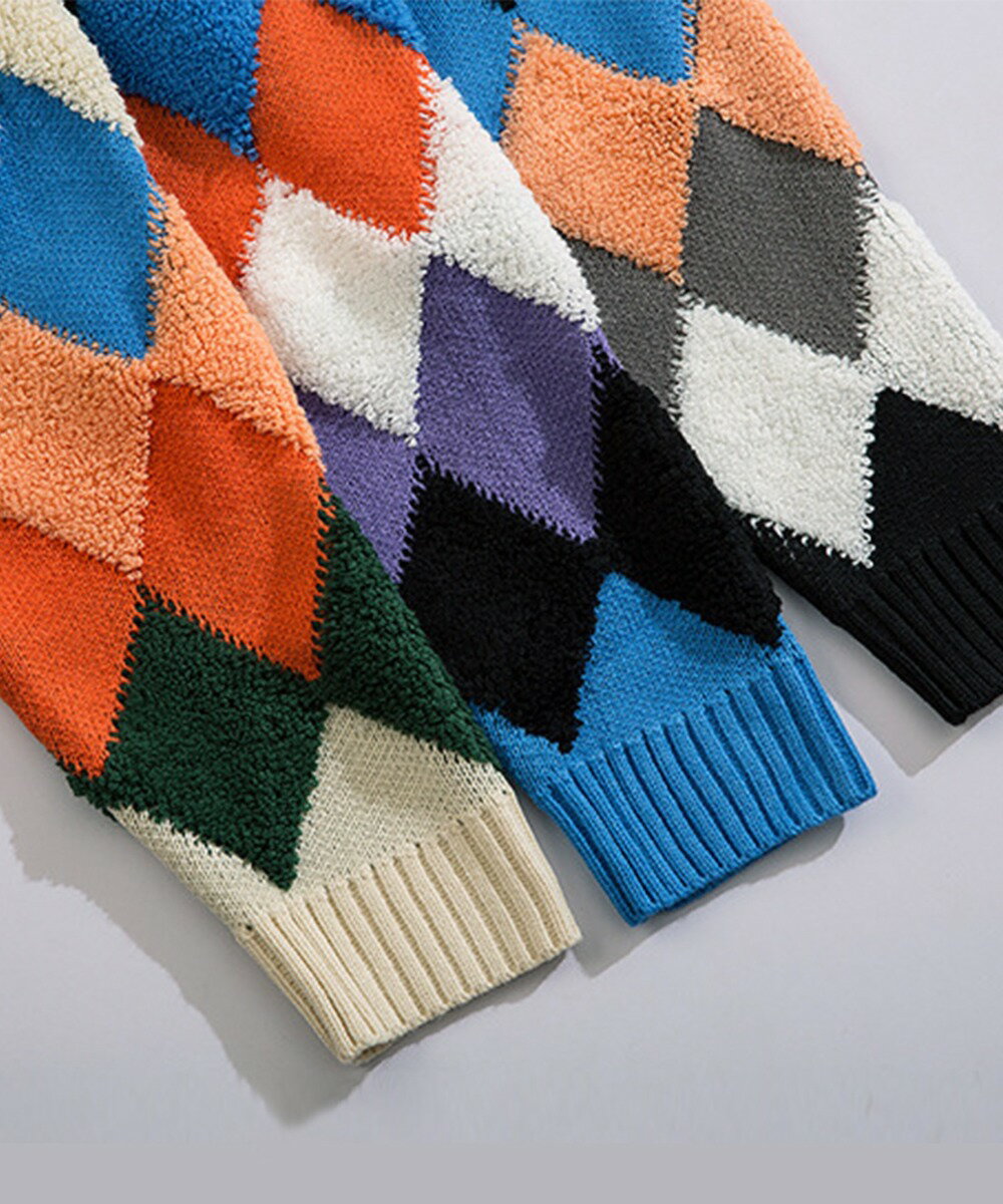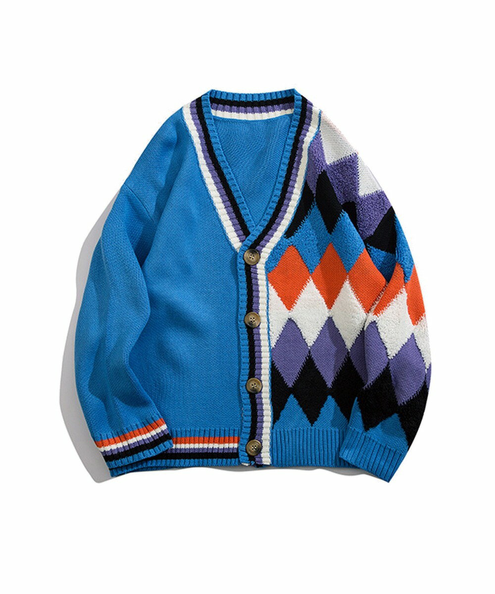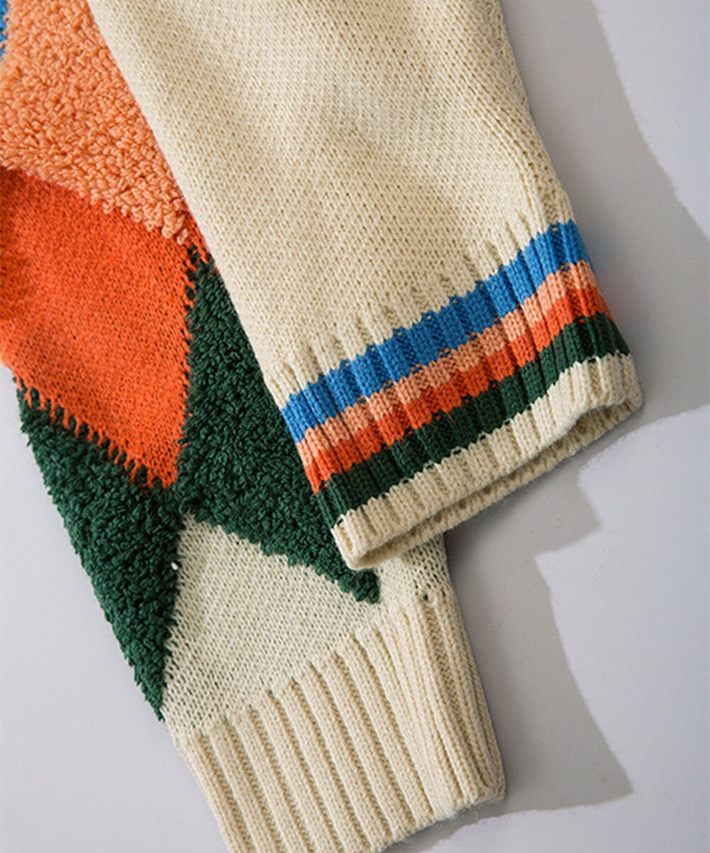【HOOK】アシンメトリー カラフルなアーガイル幾何学模様リンガーカーディガン/フック(HOOK)