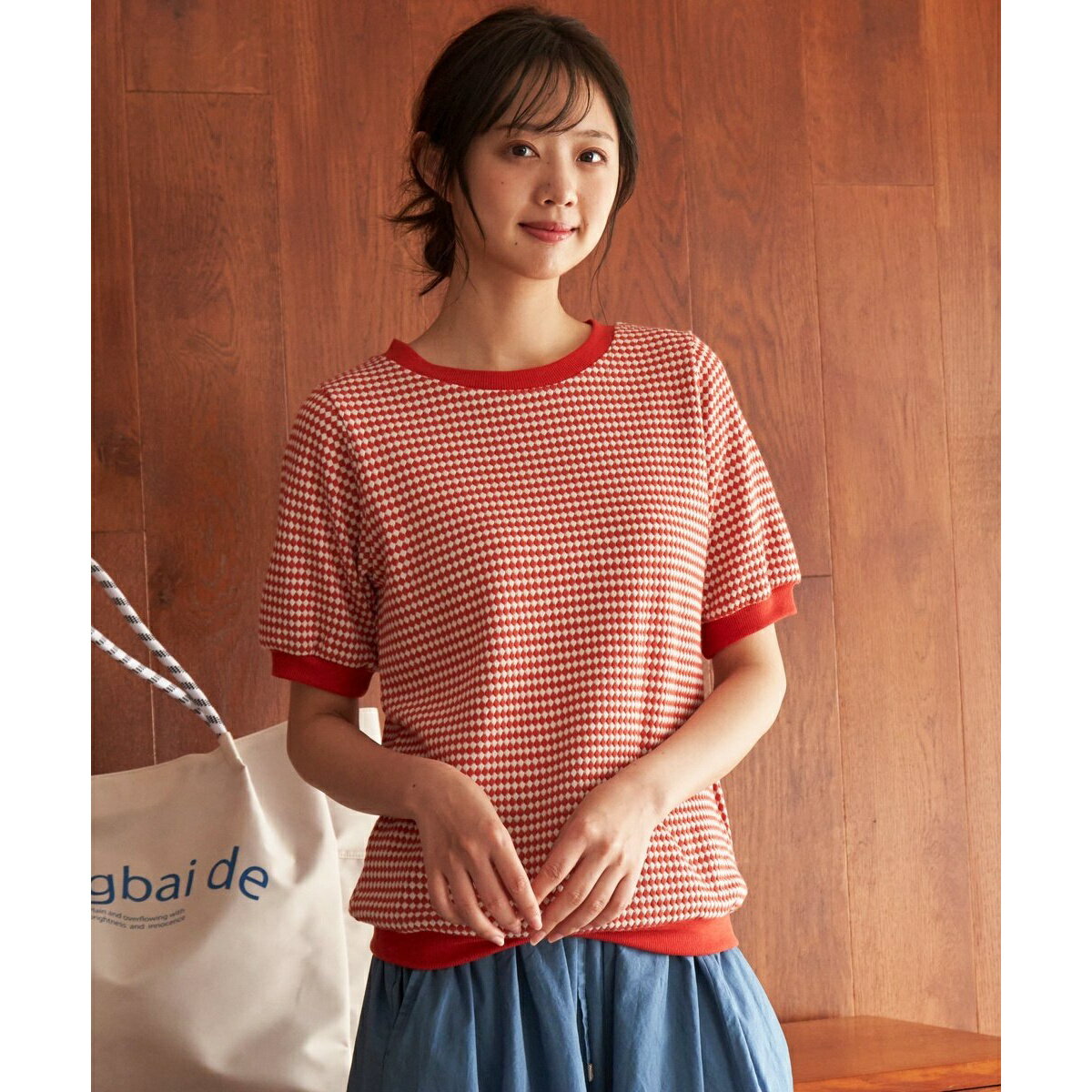 ハニカム柄ジャガードカットソー/イッカ(ikka)