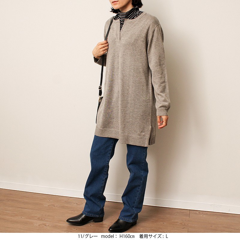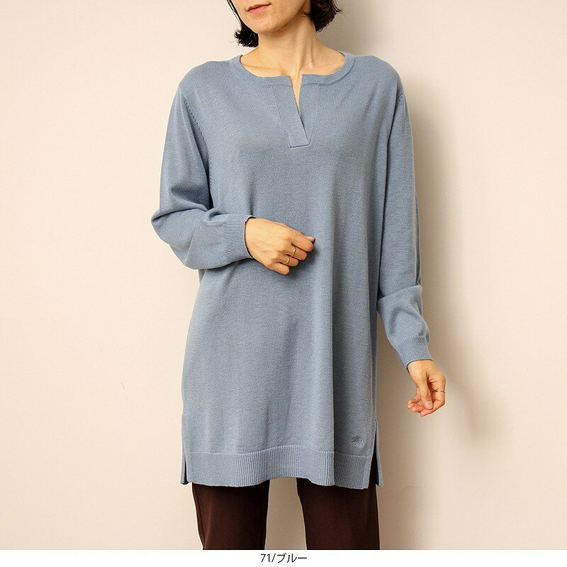 【L〜6L】【WEB限定サイズあり】【MB】ハイゲージ スキッパー ニット チュニック/エムビー(MB)