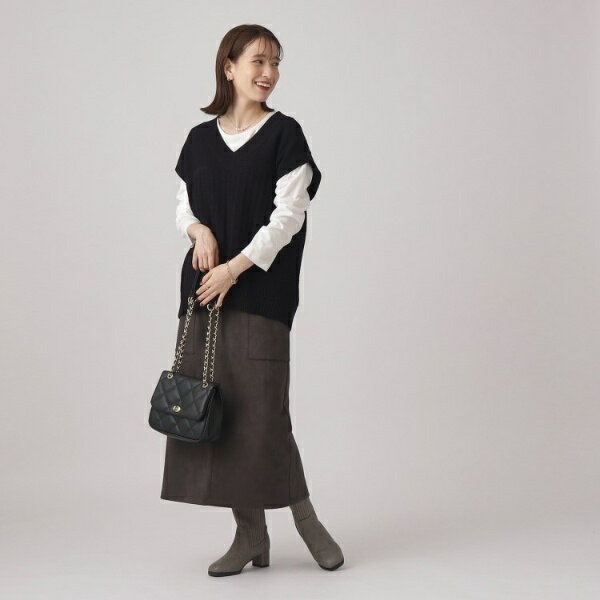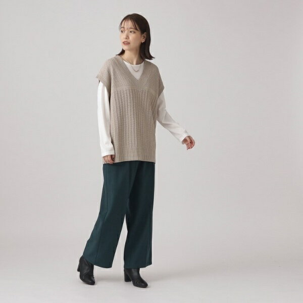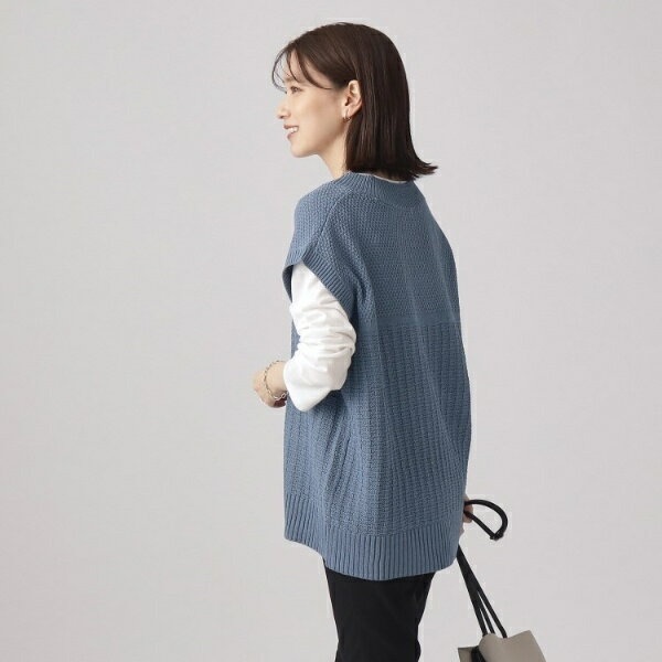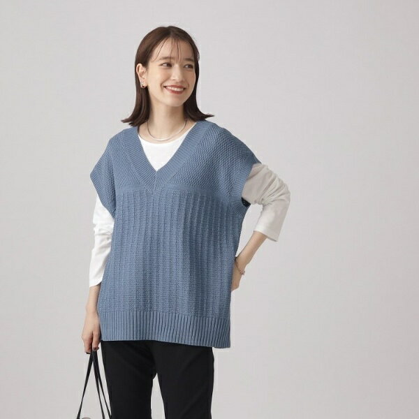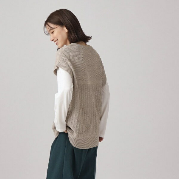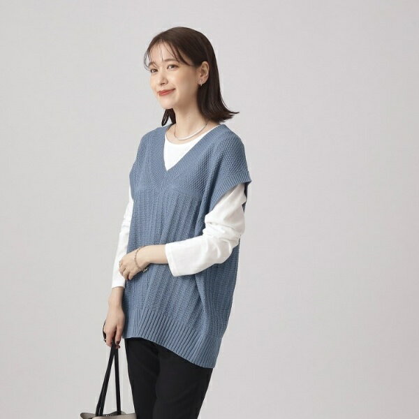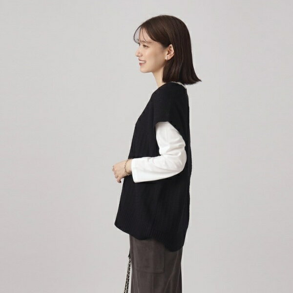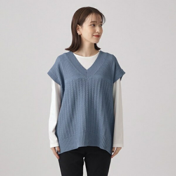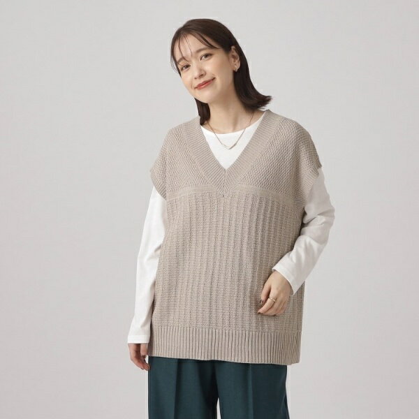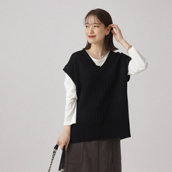 【2点セット】忙しい朝の時短コーデに 編み柄ミックスベスト+ロンT/シューラルー(SHOOLARUE)