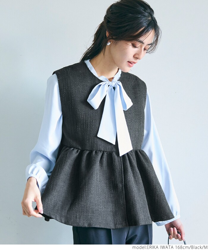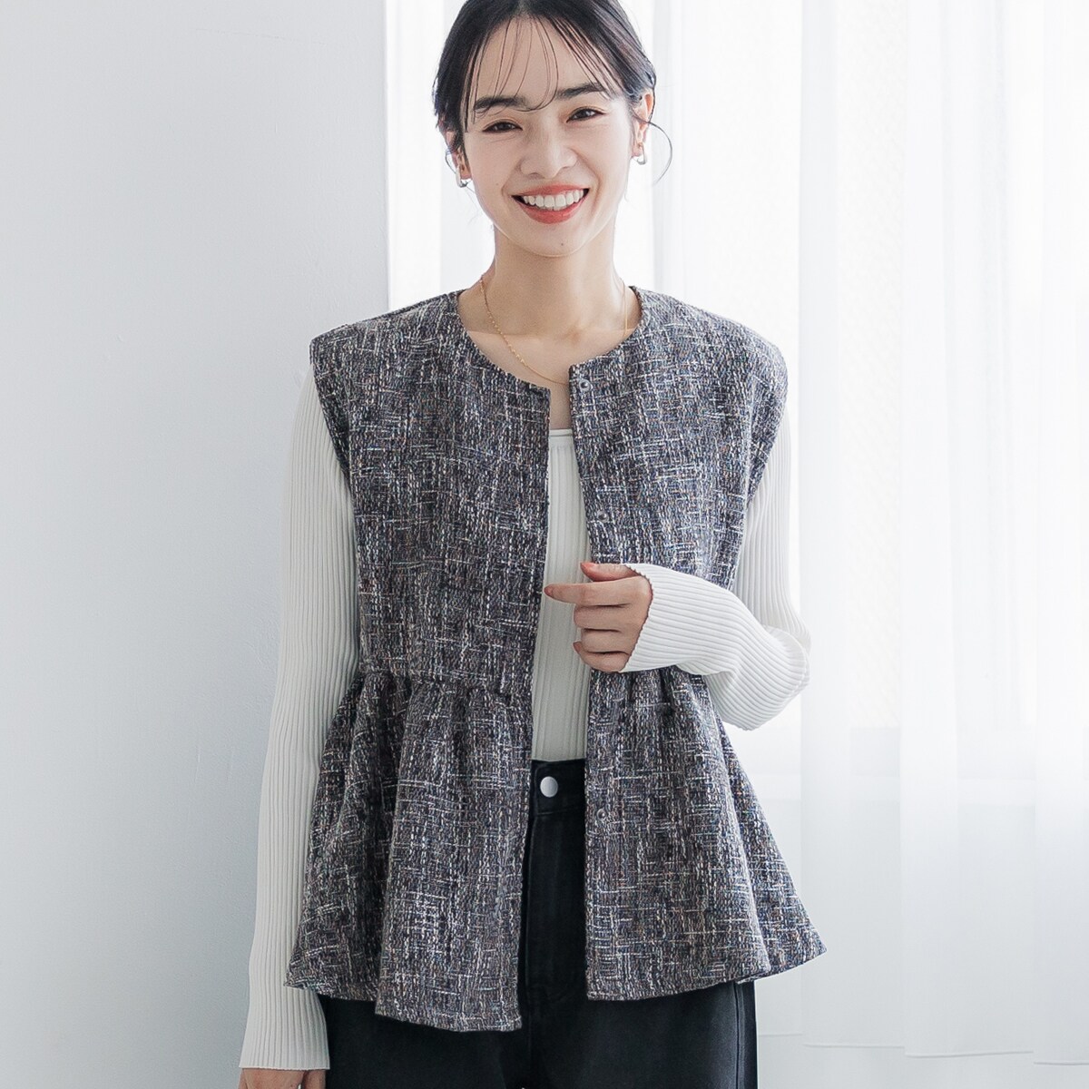 薄手ツイードフレアベスト 全2色/コカ(coca)