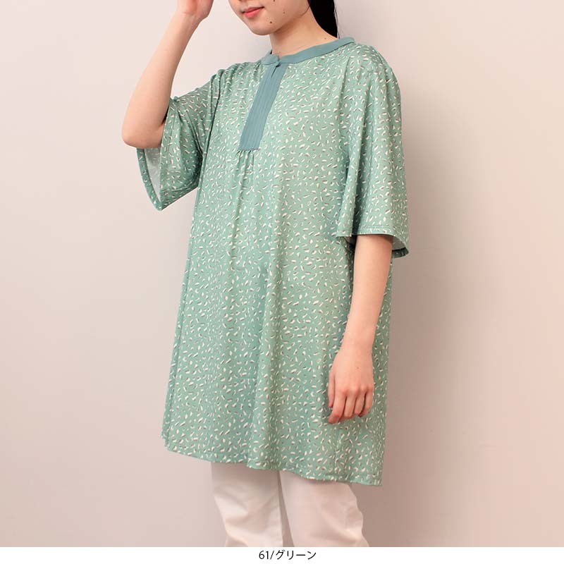 【MB】【L〜5L】小紋柄 異素材使い チュニック/エムビー(MB)