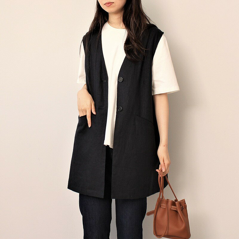 【MB】【L〜5L】麻混 オックス ジレ/エムビー(MB)
