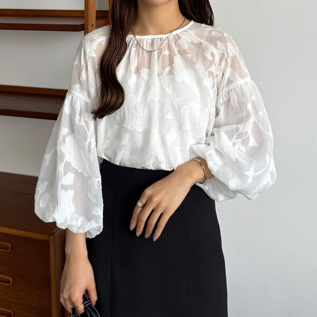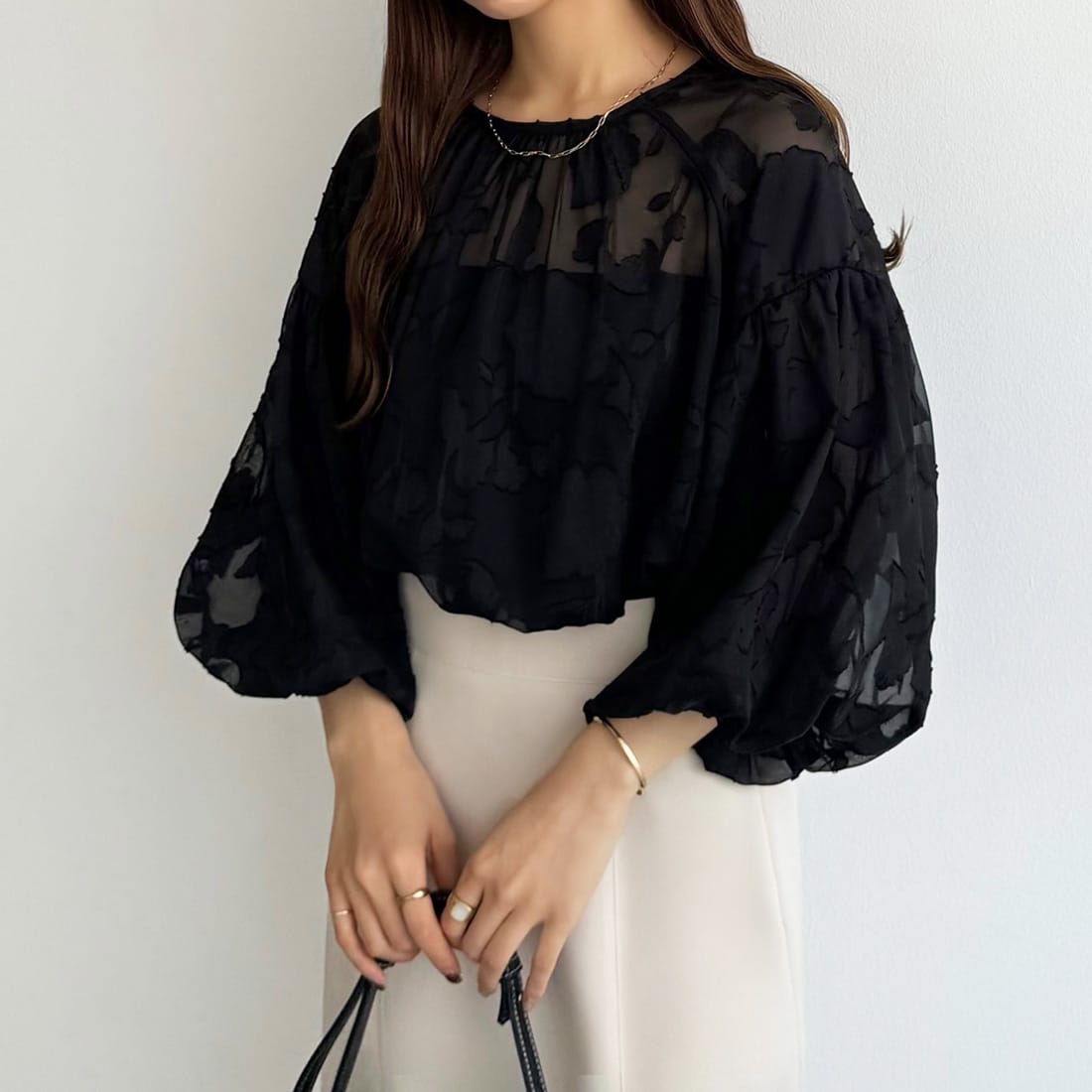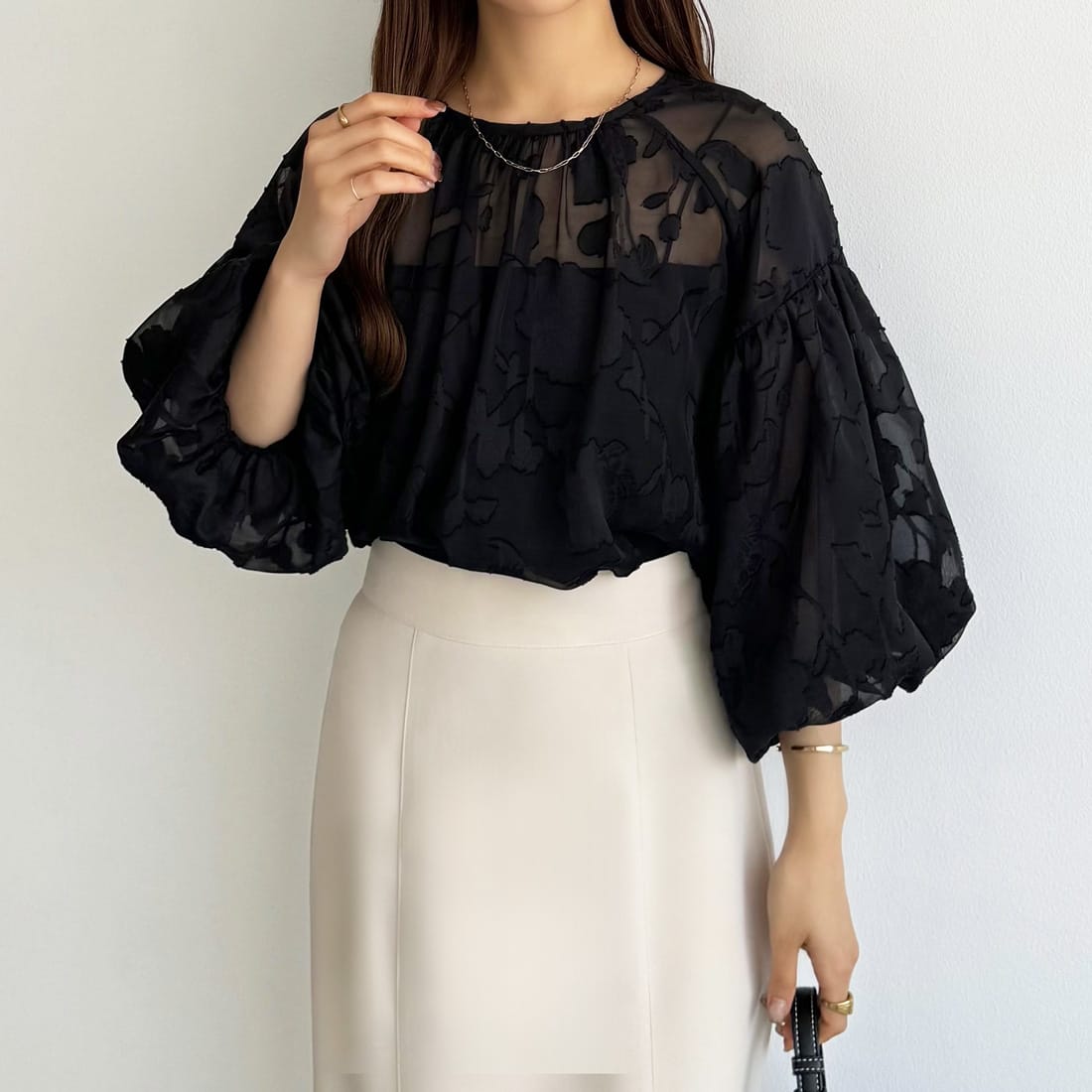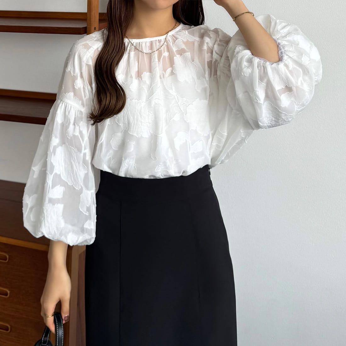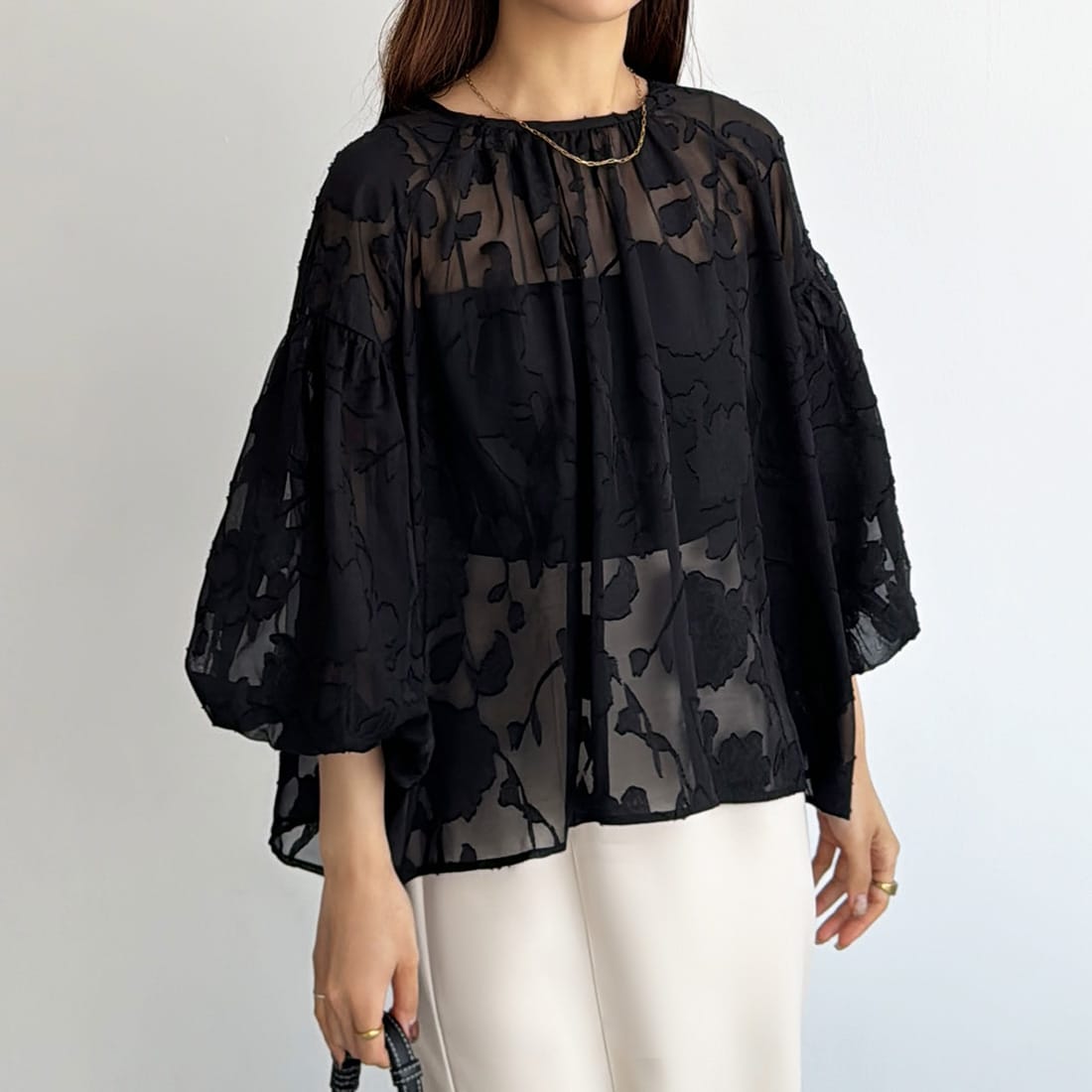 callautia シアージャガードパフスリーブトップス/カラウティア(callautia)