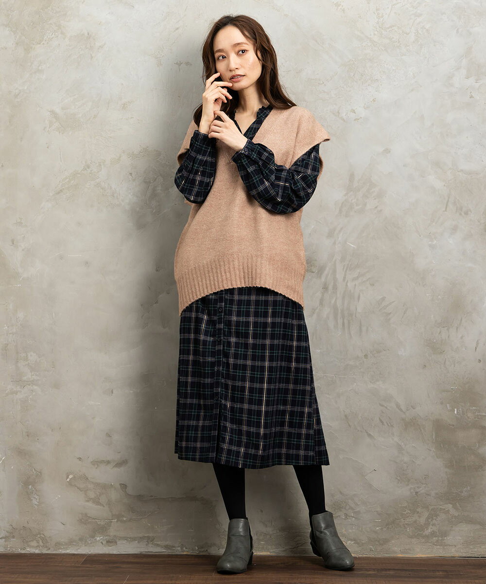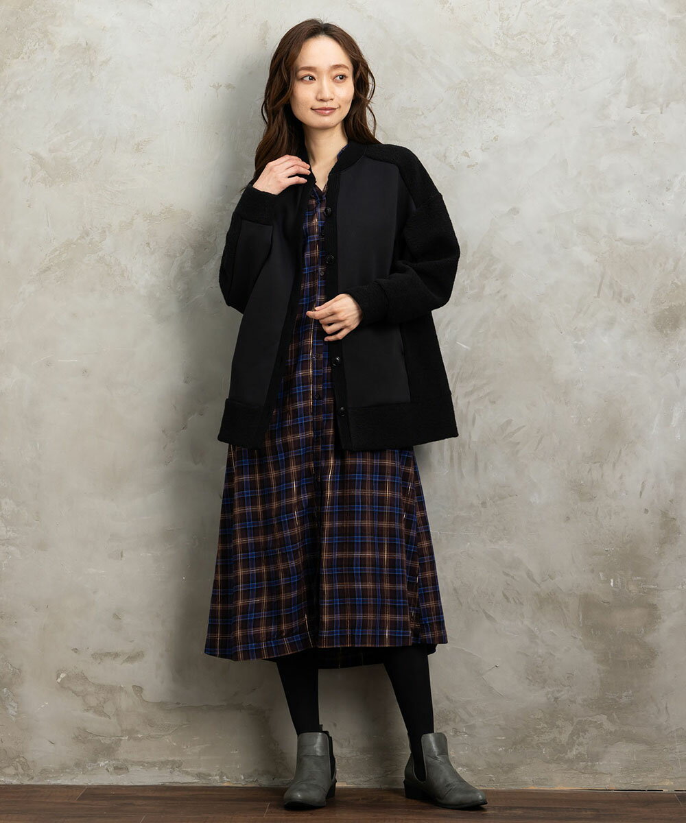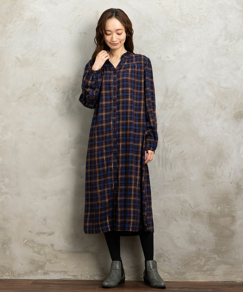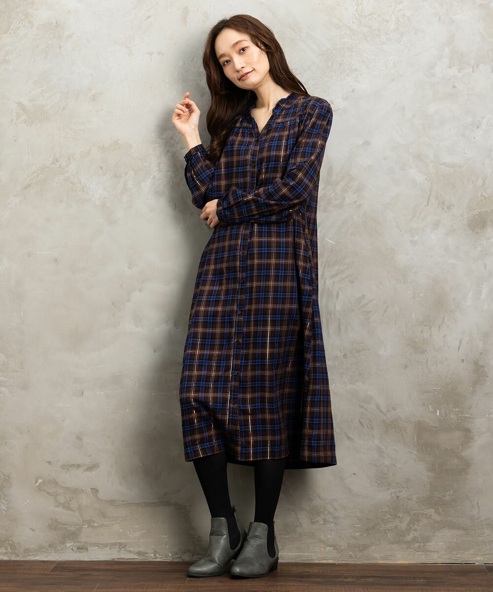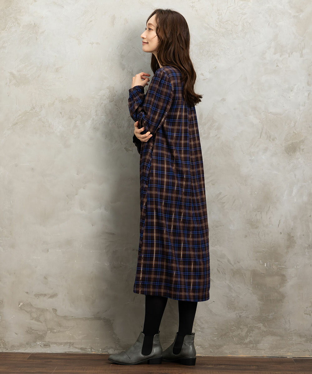 【大きいサイズ】 9号・15号・19号(M・3L・5L) 起毛ラメチェックワンピース/サブストリート(sab street)