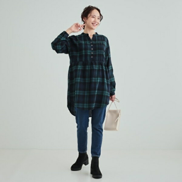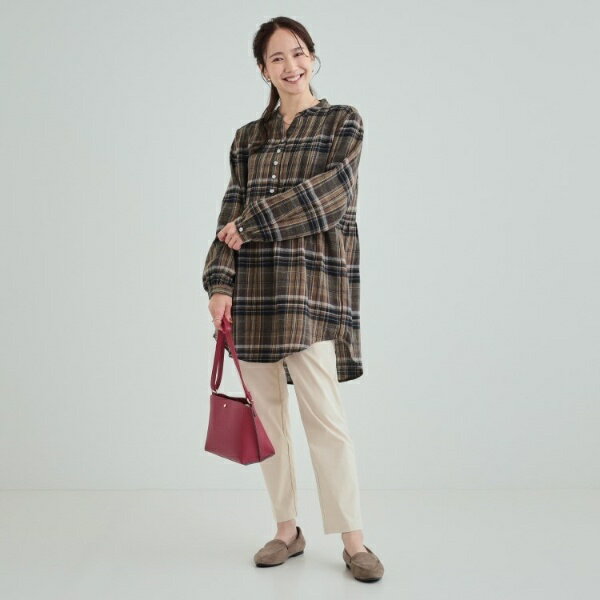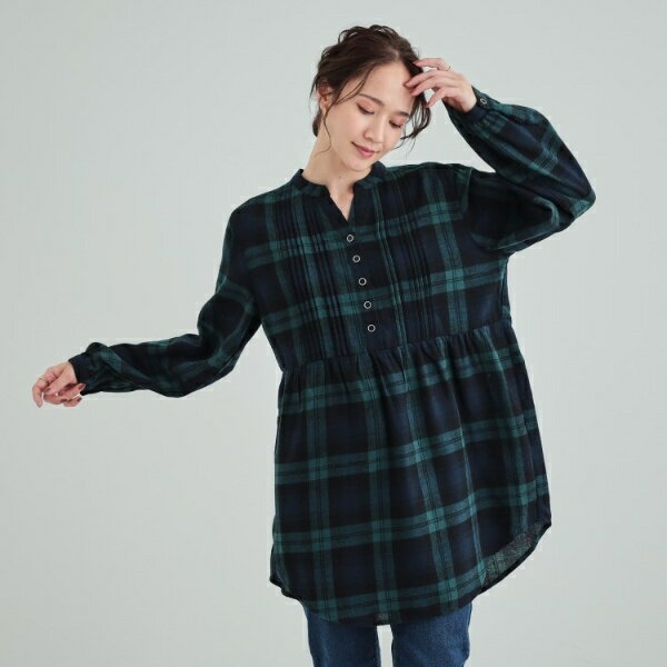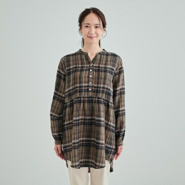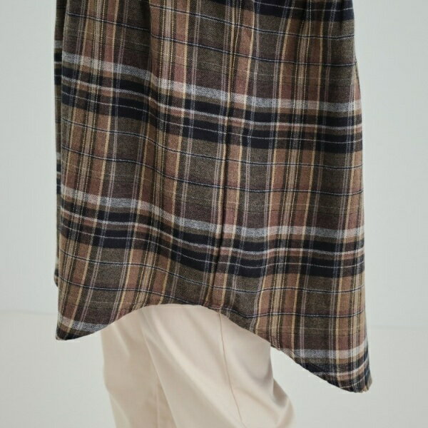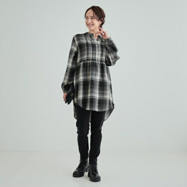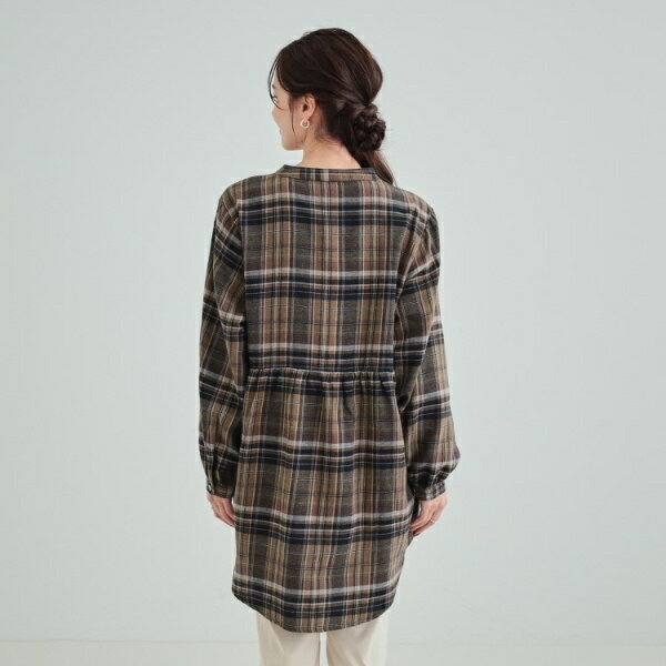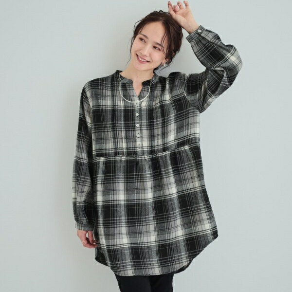 【洗える】お腹周りをゆったりカバー 起毛チェック柄チュニックブラウス/シューラルー(SHOOLARUE)