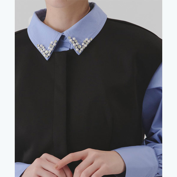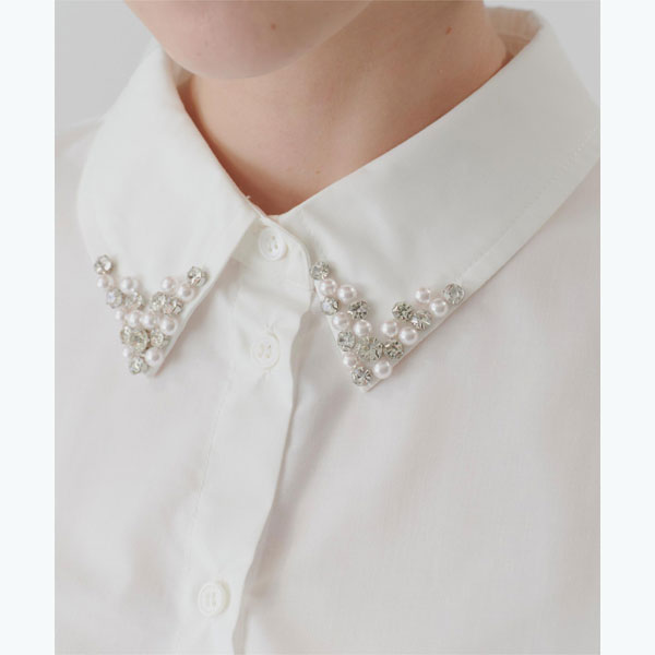 襟付ビジューシャツ/ティティベイト(titivate)
