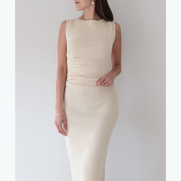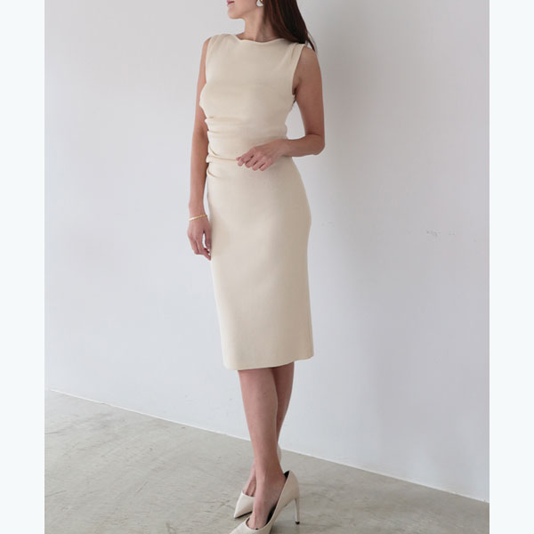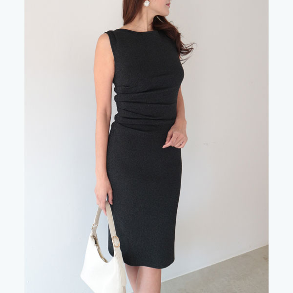 ギャザーペンシルラメニットワンピース/アンビエント(AMBIENT)