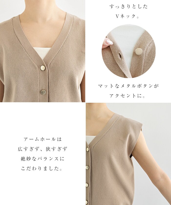 メタルボタン ノースリーブ ニット トップス/アンドミー(andme)