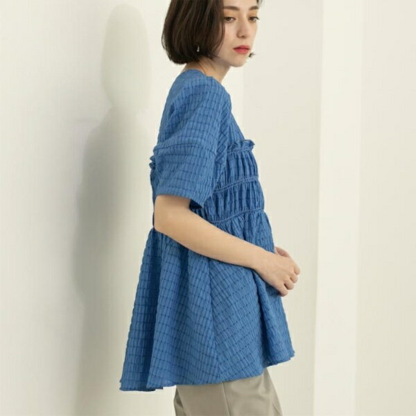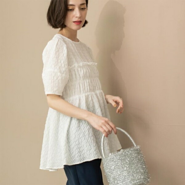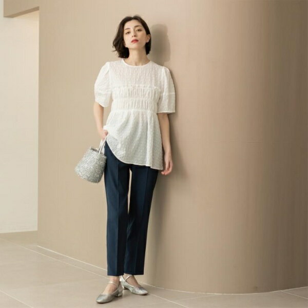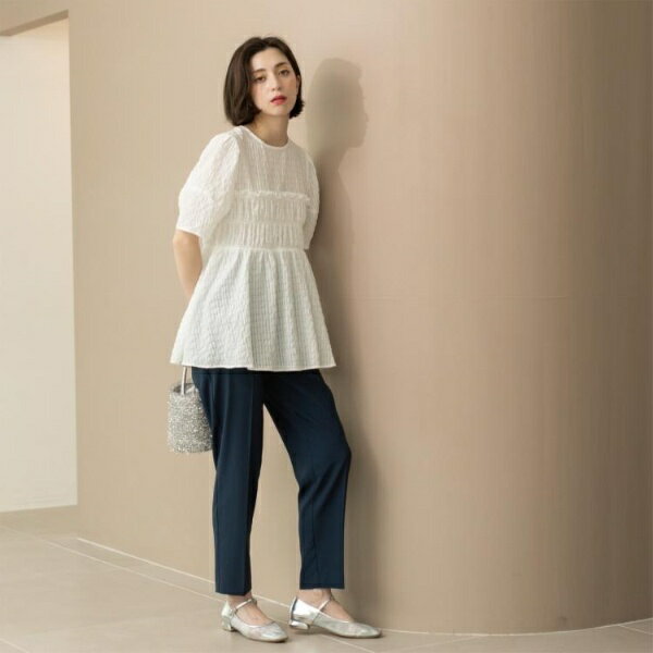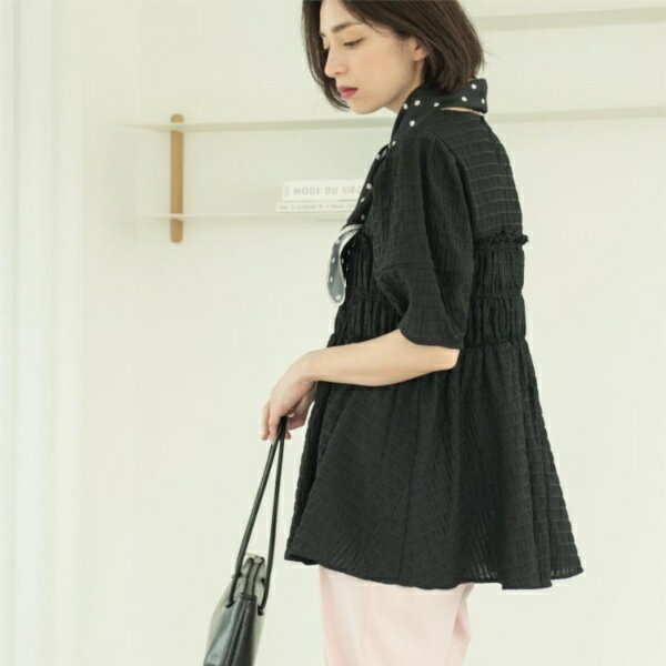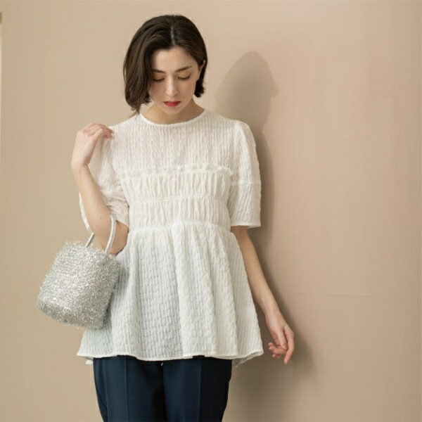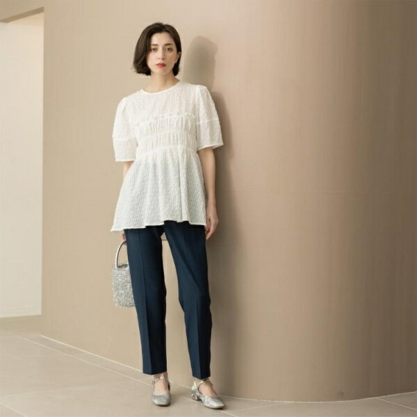 シャーリングペプラムブラウス【洗濯機洗い可】/オペークドットクリップ(OPAQUE.CLIP)