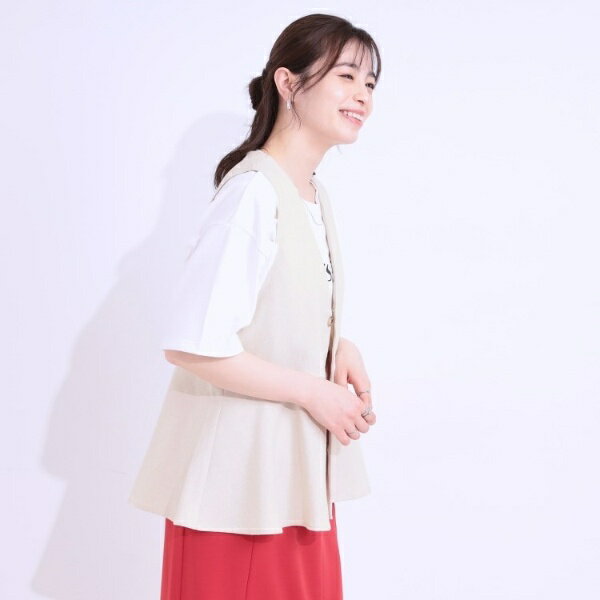 【S-LL】いつものコーデにプラスワン 麻混ペプラムベスト/シューラルー(SHOOLARUE)