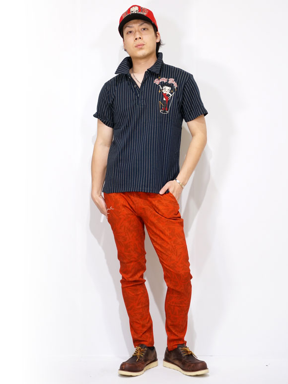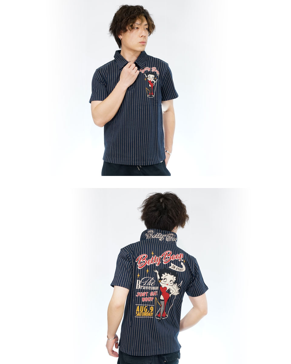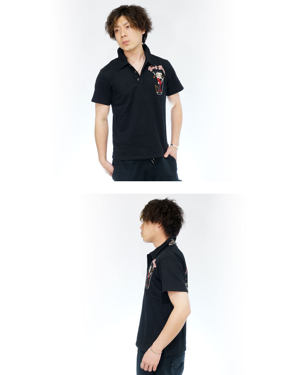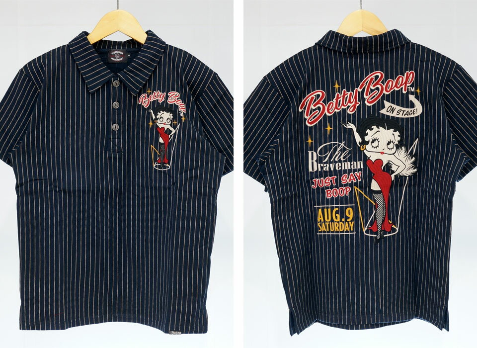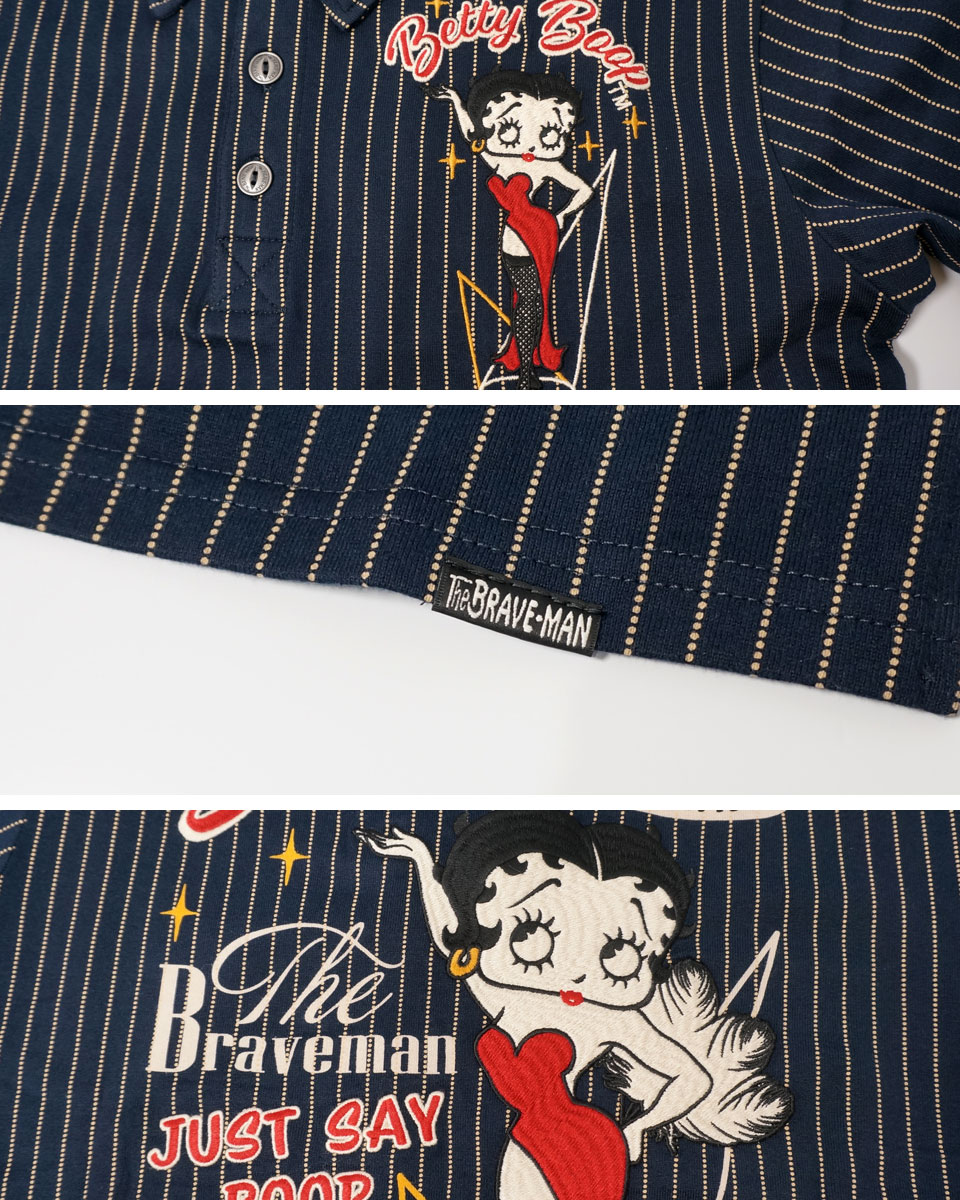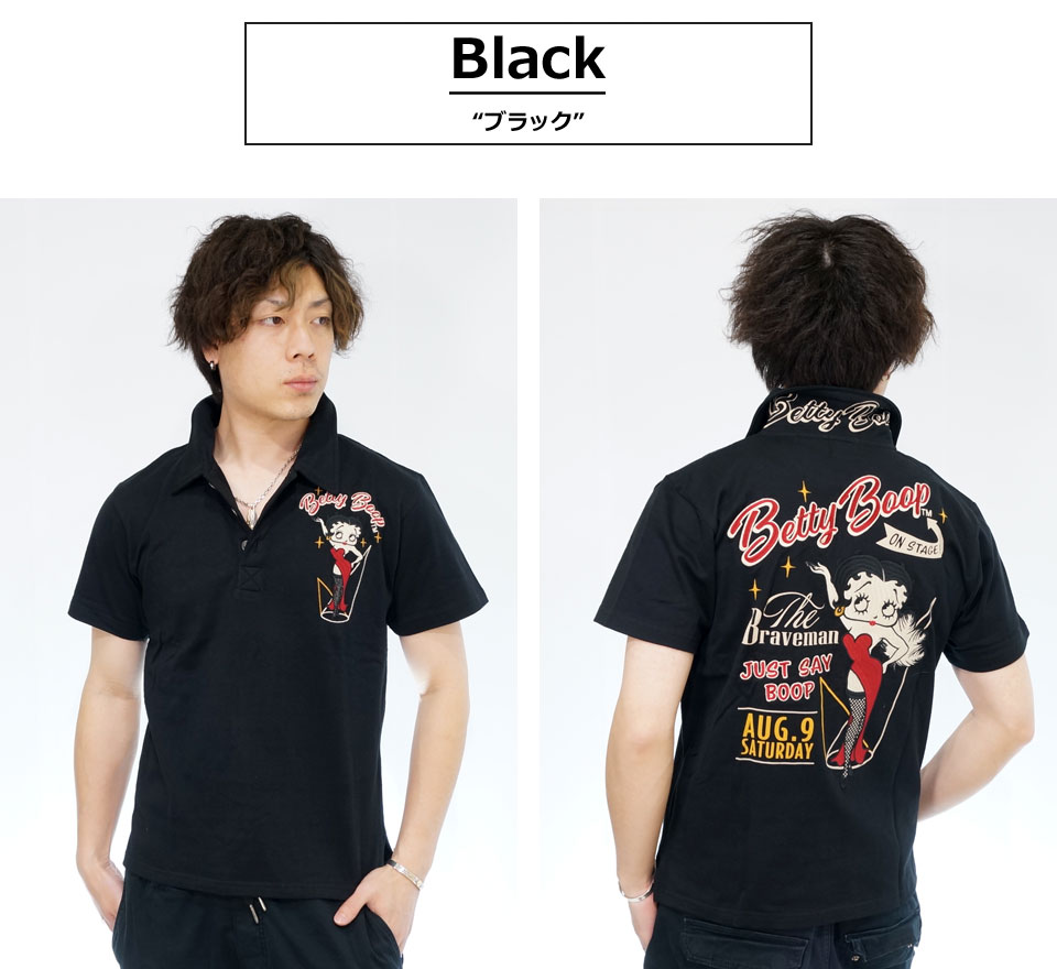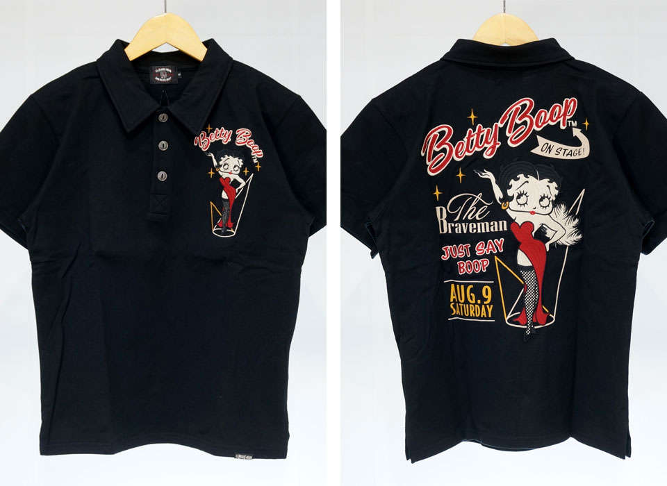 アウトレット!!ブレイブマン ベティブープコラボ アクトレスベティー刺繍 半袖ポロシャツ メンズ 新作2023年モデル THE BRAVE MAN BETTY BOOP bbb-2321
