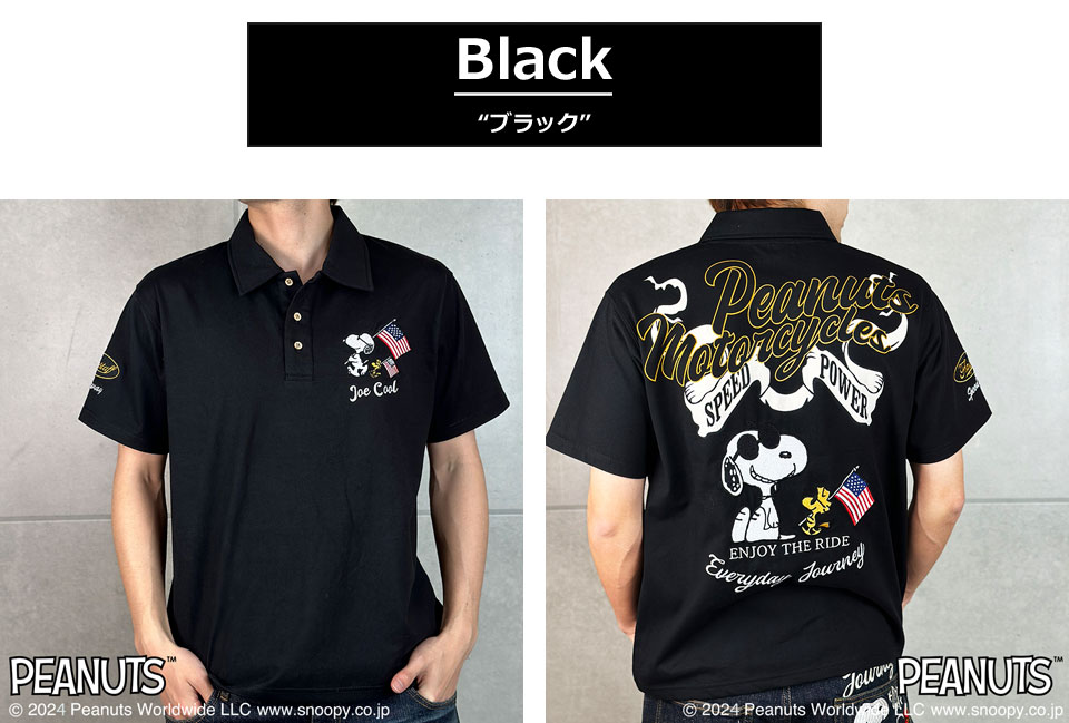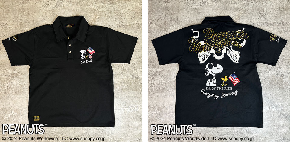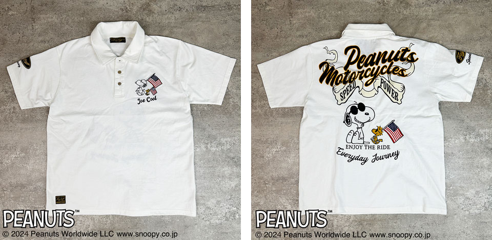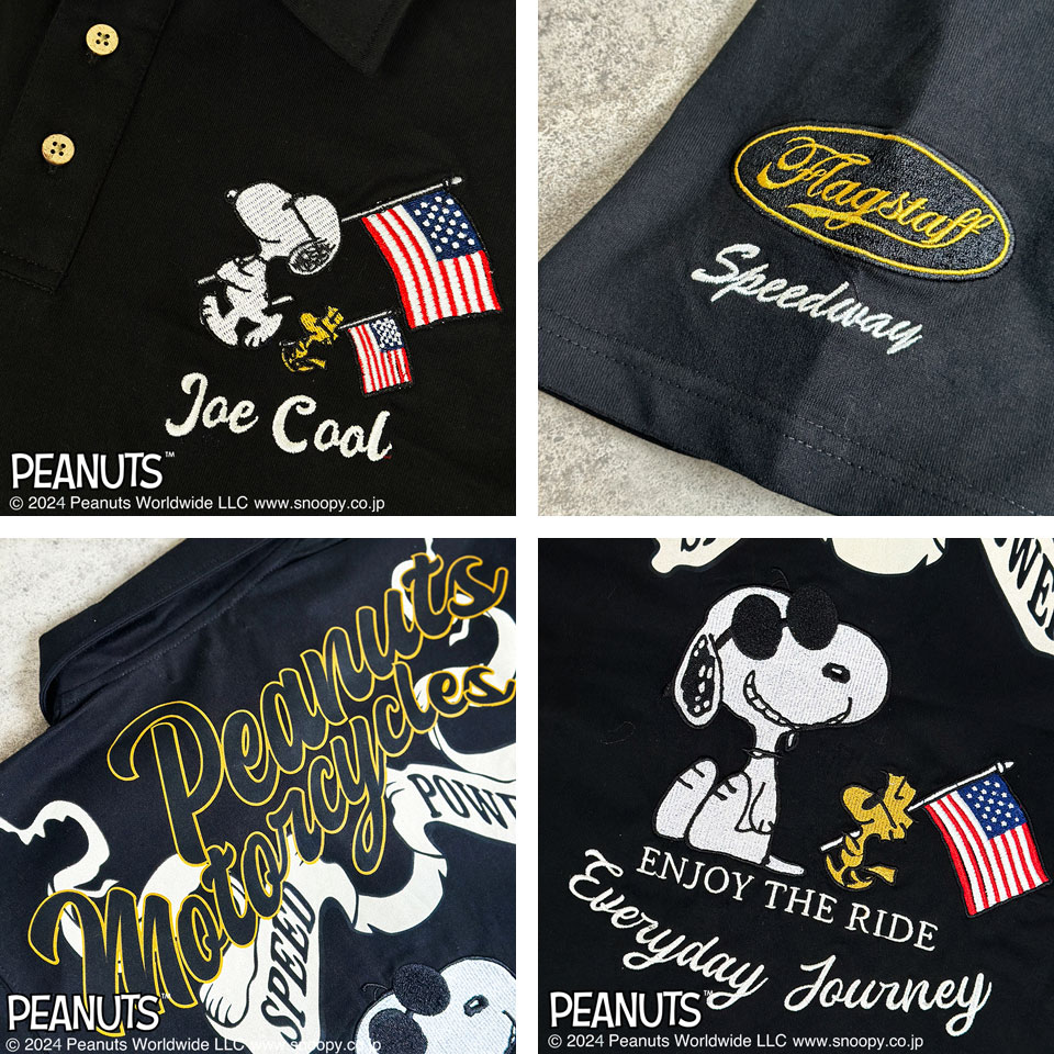 フラッグスタッフ スヌーピーコラボ ピーナッツモーターサイクル刺繍 半袖ポロシャツ メンズ 新作2024年モデル FLAG STAFF SNOOPY 442064