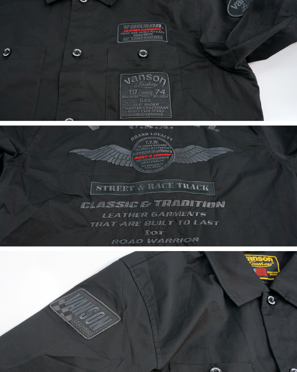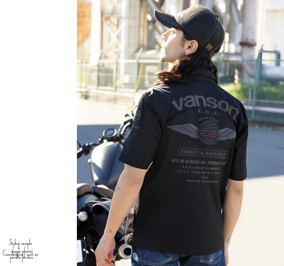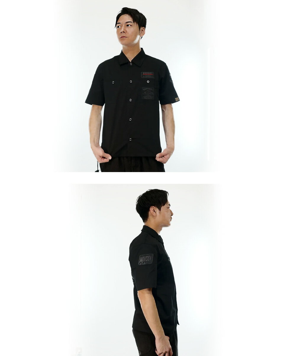 バンソン ワッペン ロゴ刺繍 ストレッチ 半袖ワークシャツ メンズ 新作2025年モデル VANSON svs2506s