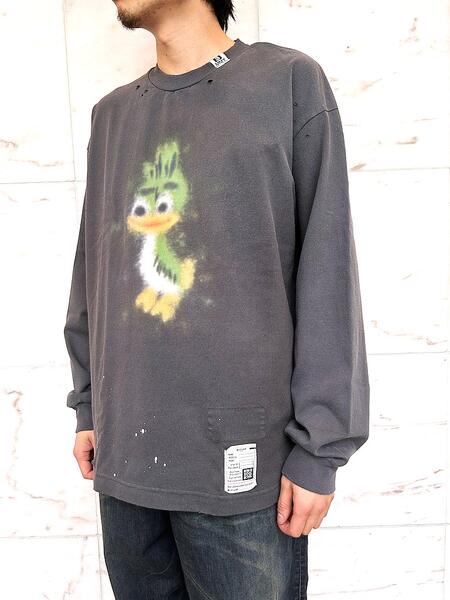 Maison MIHARA YASUHIRO(メゾン ミハラ ヤスヒロ)【LEON Print Distressed LS T-shirt】”レオン”プリント ディストレストロングスリーブティーシャツ★BLACK★