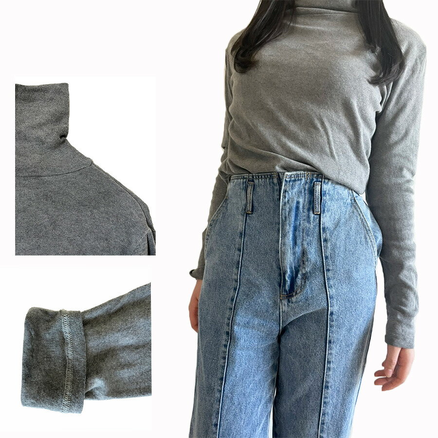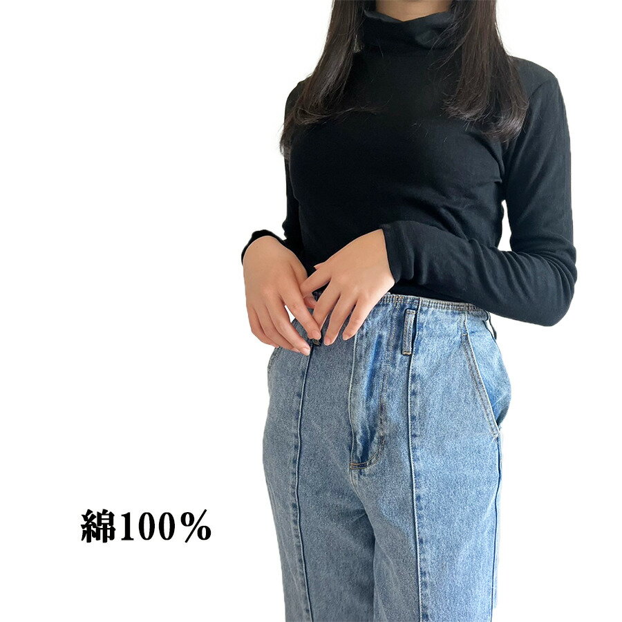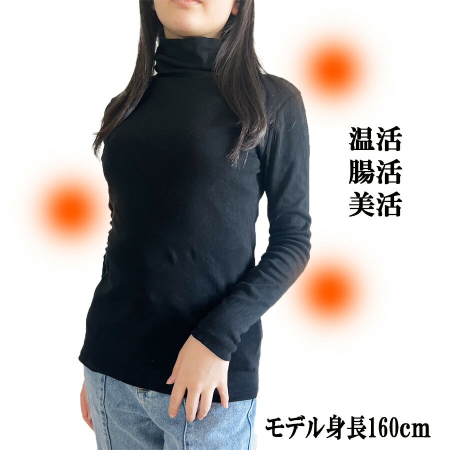 ハイネック タートルネック 岩盤浴 遠赤外線 Tシャツ モックネック クルーネック 長袖 無地 ロンT ストレッチ 秋 冬 あったか 保温 綿100% 保温 ヒート インナー ウォーマー 下着 パジャマ カットソー ブラック 重ね着 暖か アウトドア