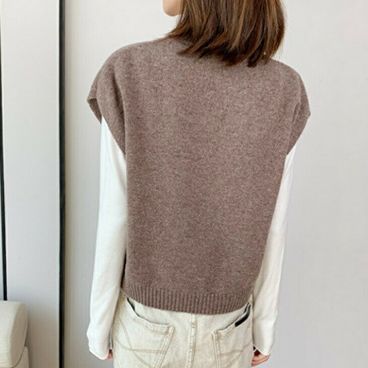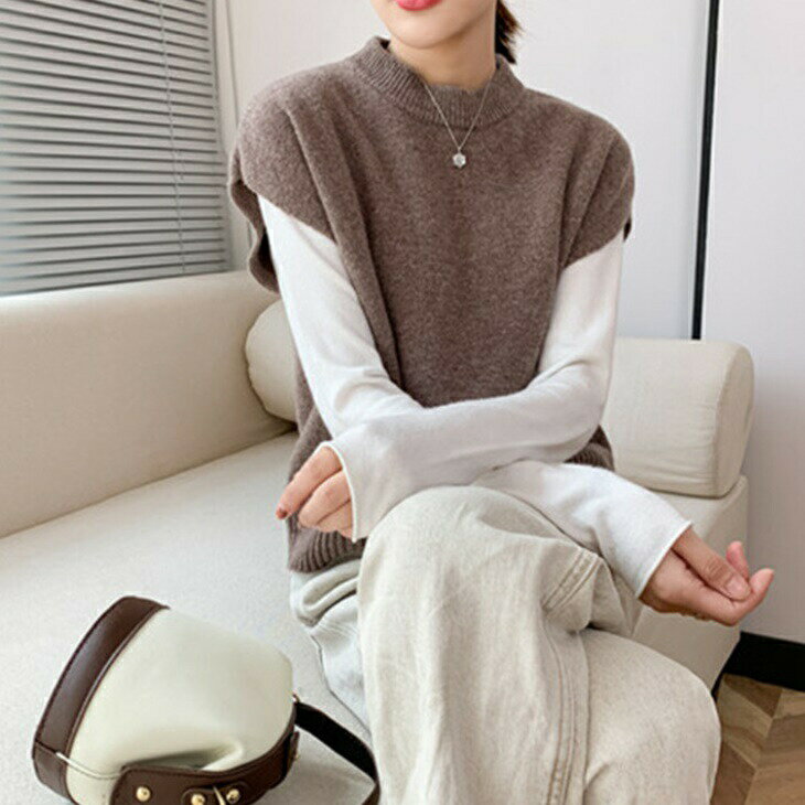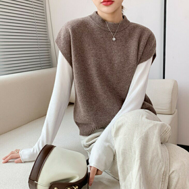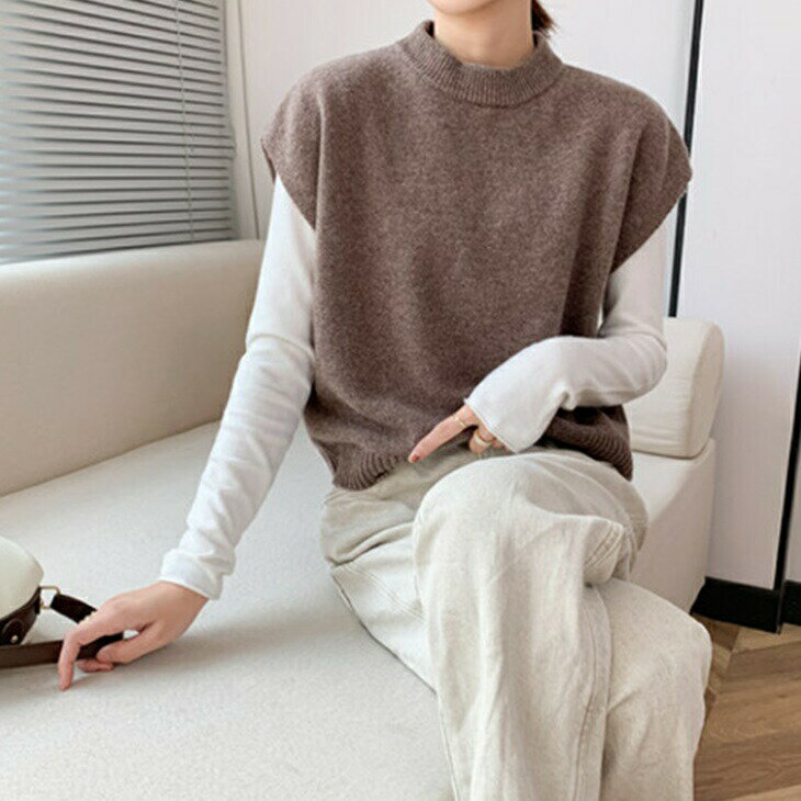 ウール混 ハイネックベスト 秋冬ベスト オーバーベストセーター ニットベスト シンプルニット 大人ファッション 大人コーデ 大人カジュアル ママコーデ ママファッション 韓国ファッション 韓国コーデ アラサーファッション アラサーコーデ ins
