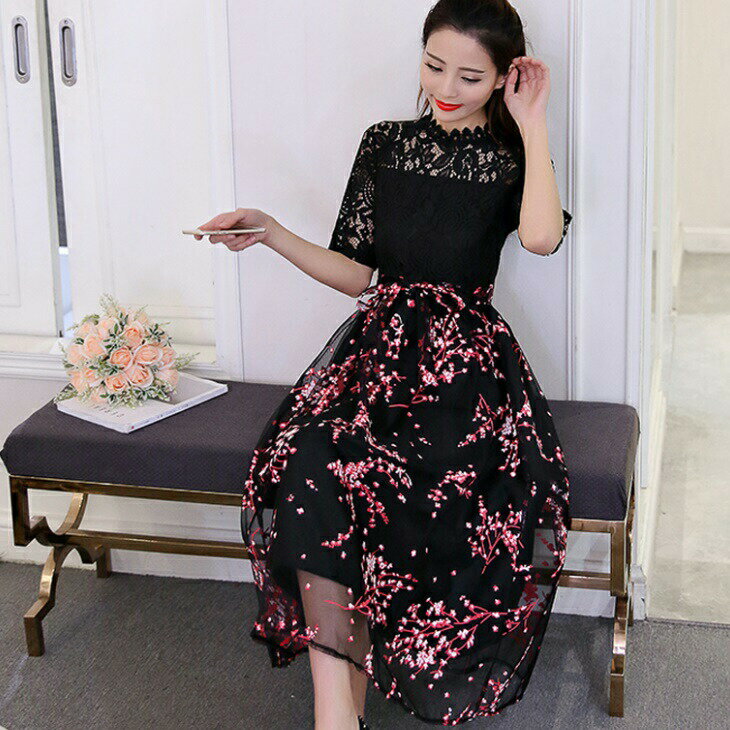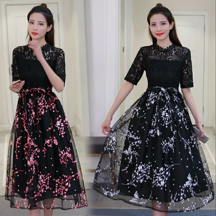 レース 刺繍 チュール ハイネック フレア イブニングドレス ドレス キャバ レディース ウエストマーク セクシー ワンピース ナイトドレス 大人 ホステス パーティー パーティードレス お呼ばれ イベント 上品 きれいめ 水商売
