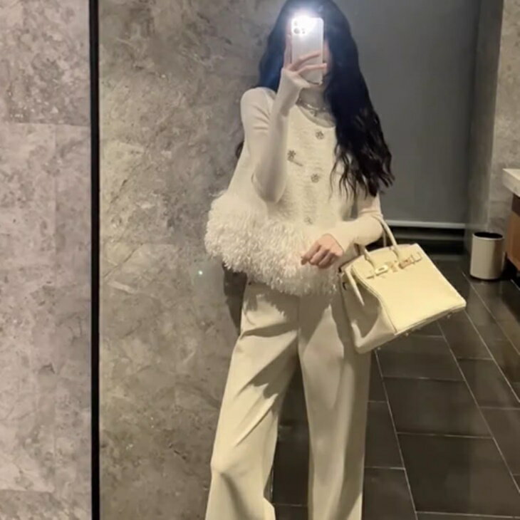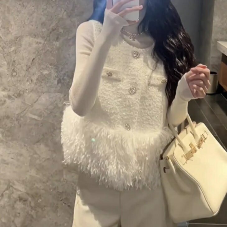ツイード ジレジャケット プードル ジレ ベスト もこもこ感 暖かジレ 秋冬ジレ プードルフリルが可愛い S~XL 大人カジュアル