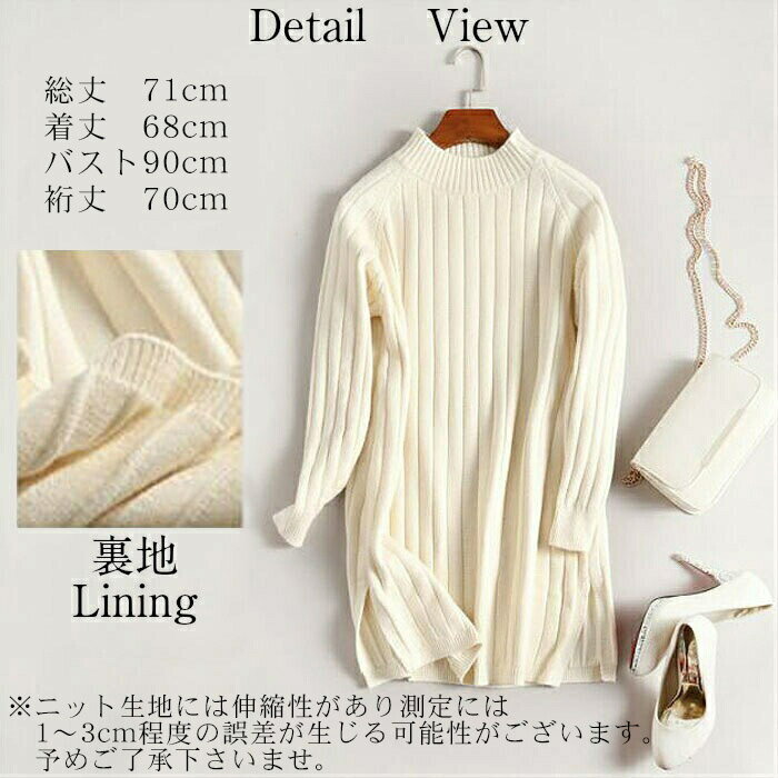 レディース ボトルネックニットチュニック ホワイト グレー ブラック リブ ニット チュニック 大人 かわいい きれいめ カジュアル シンプル 無地 トップス 冬物 ボトルネック 20代 30代 40代