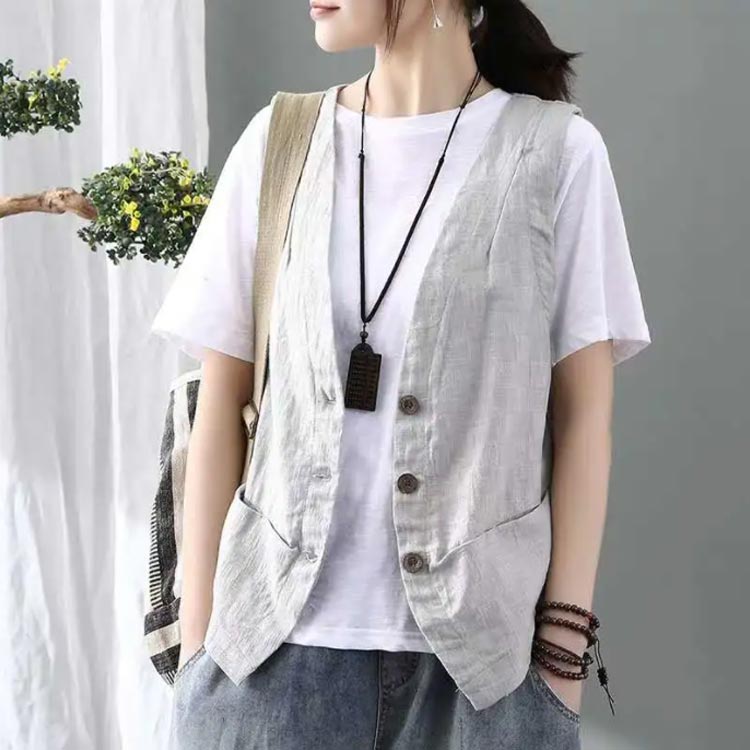 夏ベスト 綿麻ベスト レディース ベスト ジレ ノースリーブ リネン 綿麻風 レイヤード 前開き トレンチベスト 無地 Vネック トップス ショート丈 レディースジレ 春 秋 大きいサイズ ゆったり 大人 ナチュラル おしゃれ カジュアル 送料無料