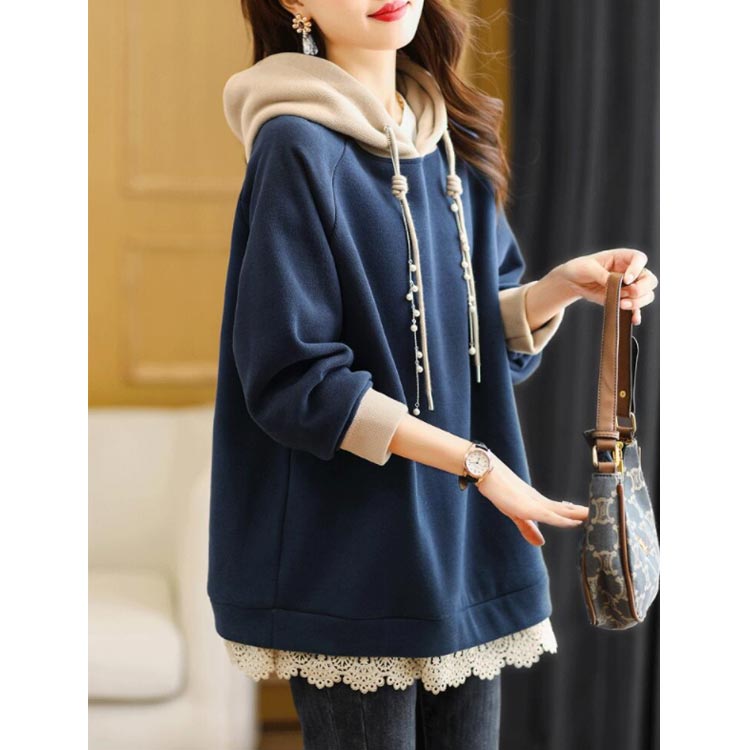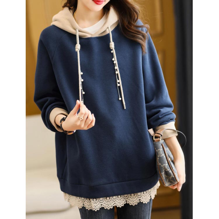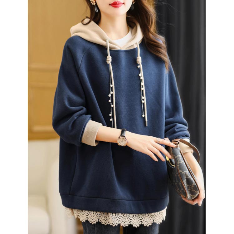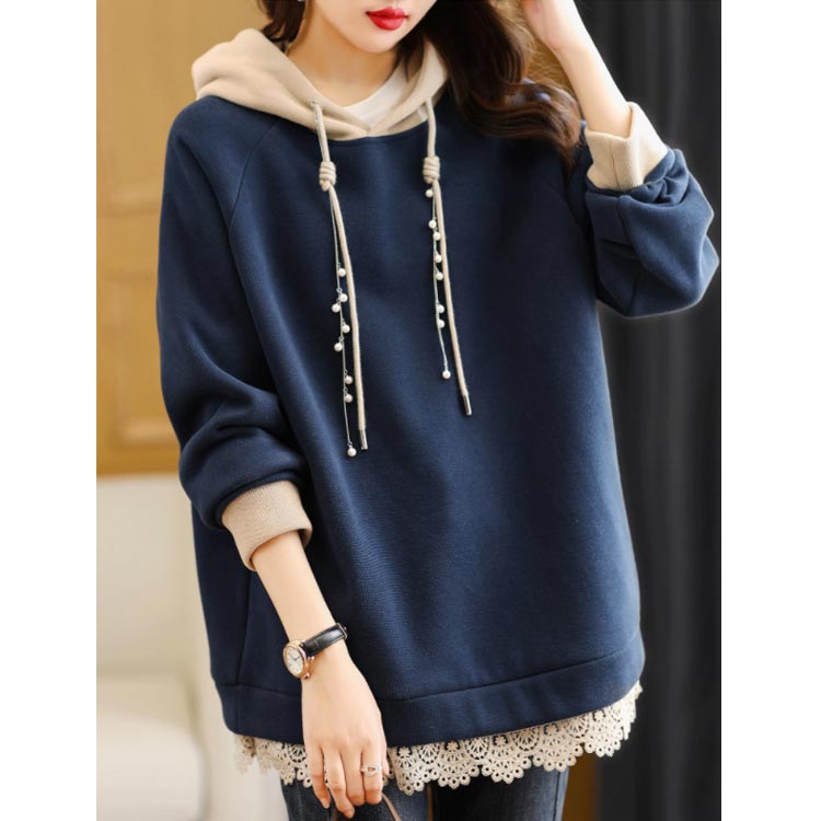 トレーナー パーカー おしゃれ フード付き レディース スウェットパーカー 防寒 裏起毛 レース パール 大人 可愛い パーカー トップス 大きいサイズ 体型カバー カジュアル あったか 春 秋 冬 M~4XL