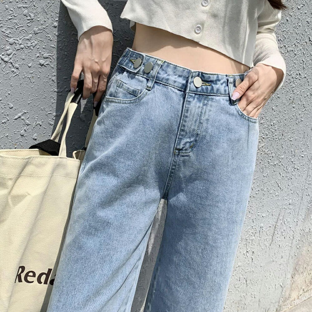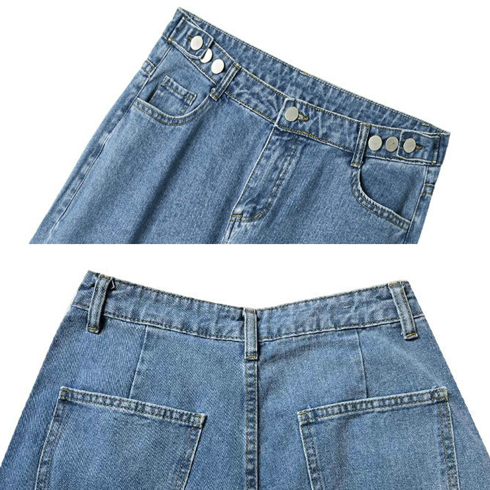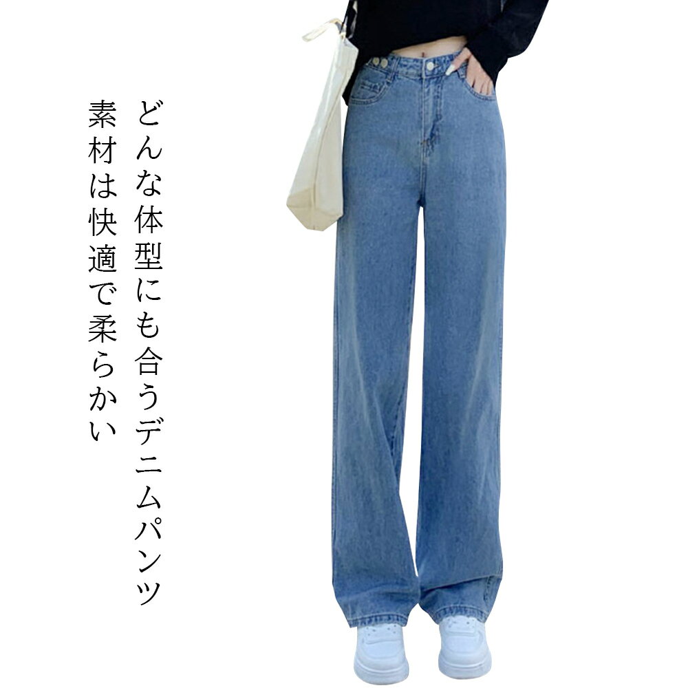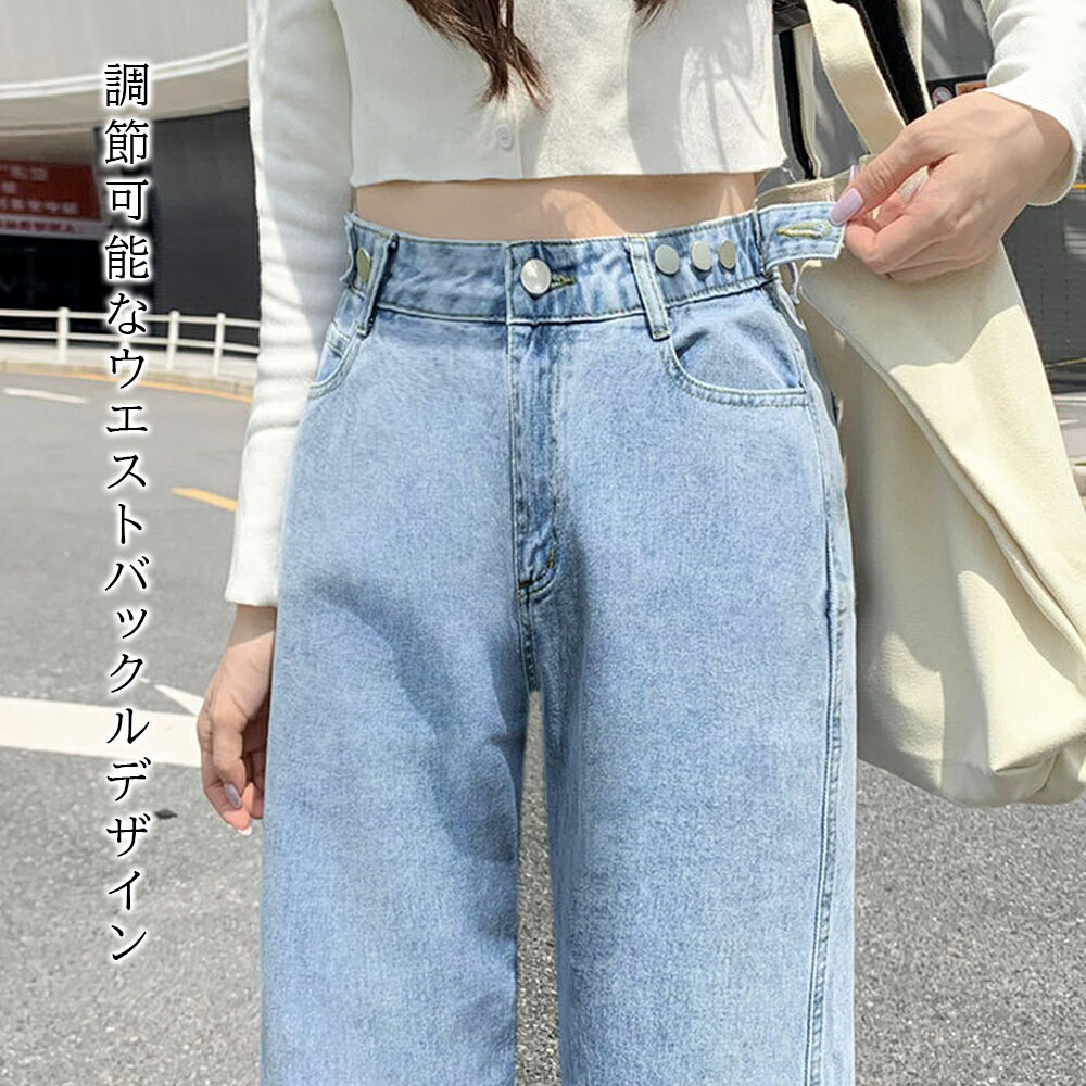 デニムパンツ レディース ウエスト調節 ボトムス ハイウエスト ウエストボタン ロング ジーンズ 調節可能 ストレートパンツ 大きいサイズ オールシーズン カジュアル 春夏