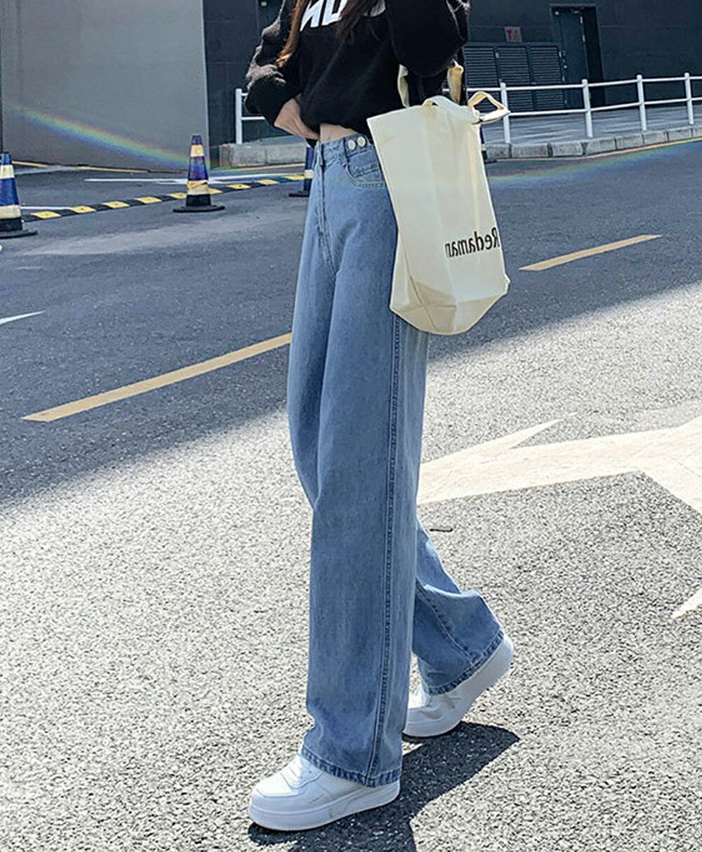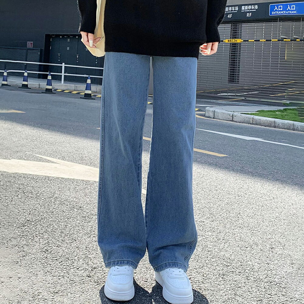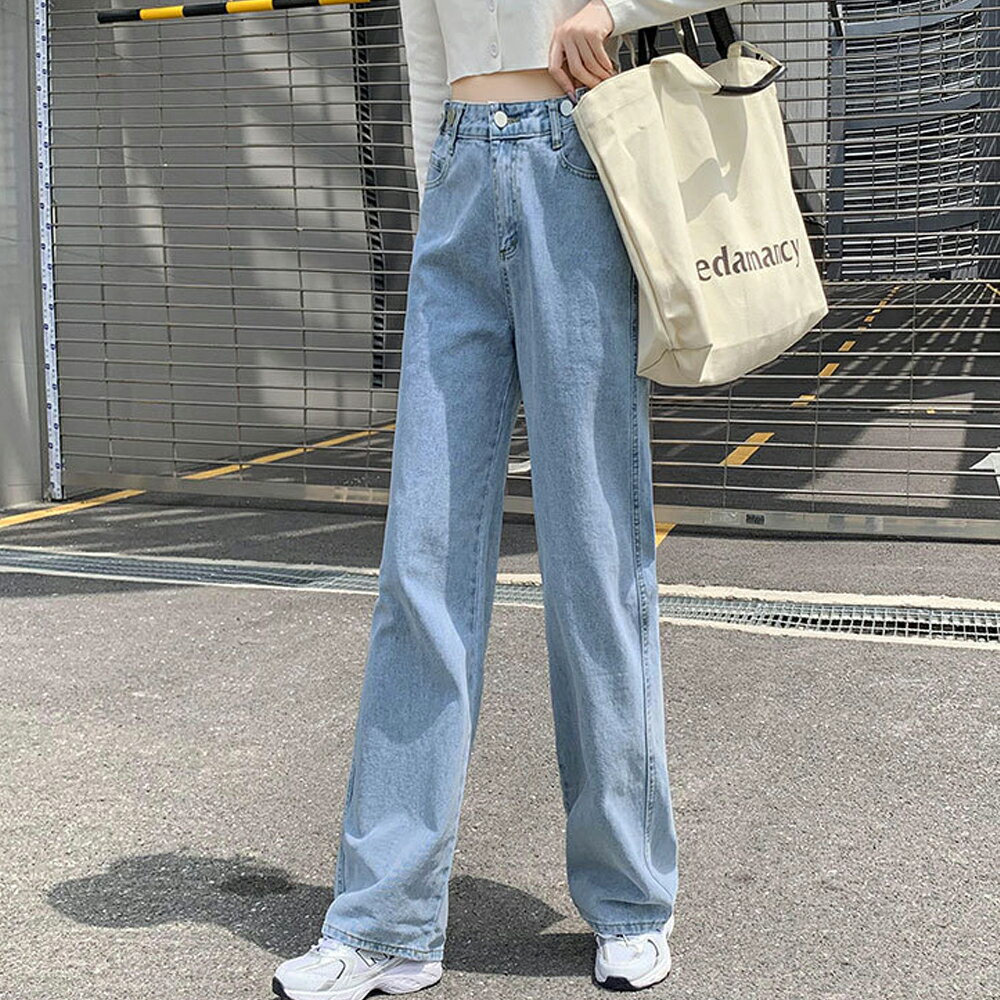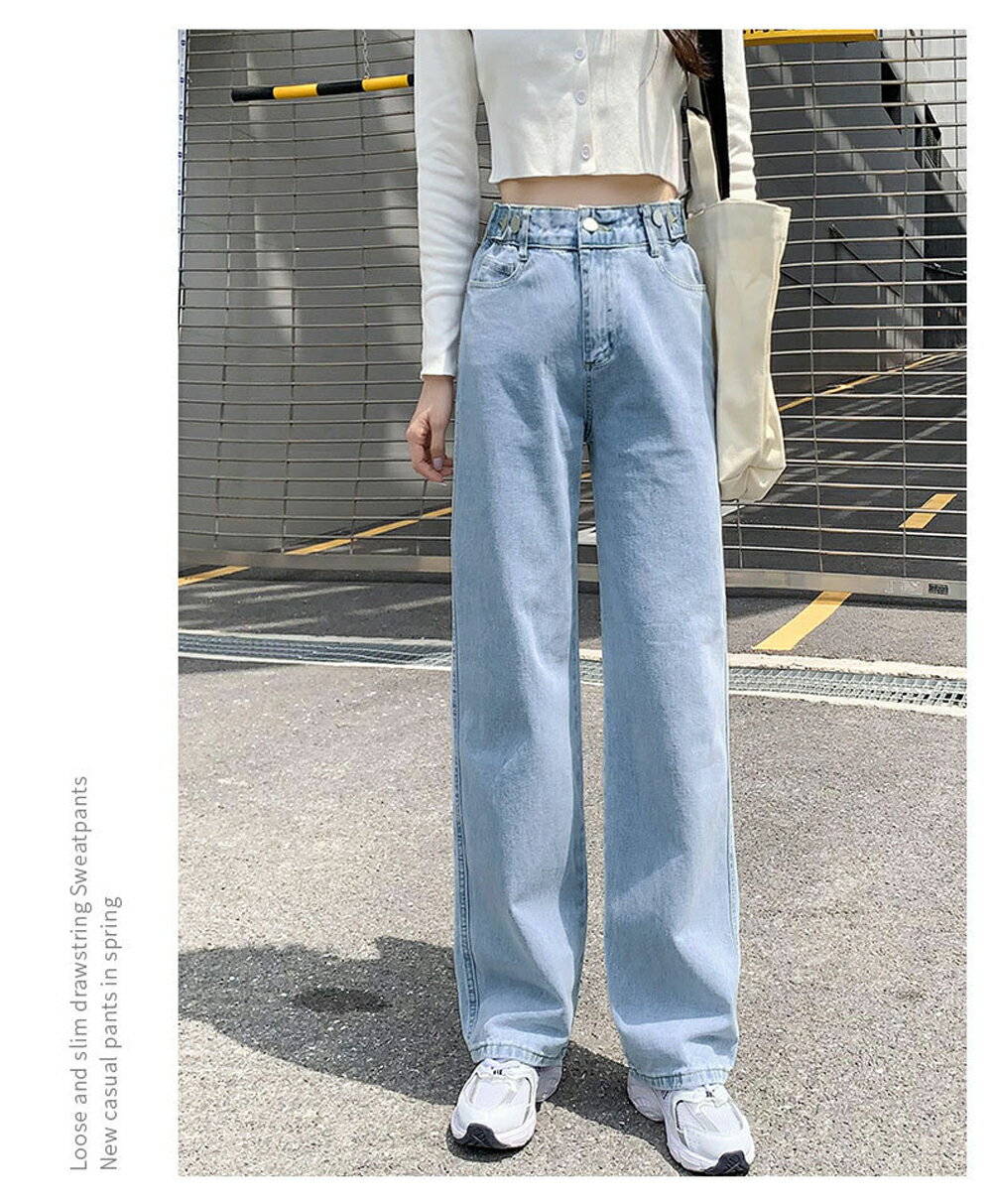 デニムパンツ レディース ウエスト調節 ボトムス ハイウエスト ウエストボタン ロング ジーンズ 調節可能 ストレートパンツ 大きいサイズ オールシーズン カジュアル 春夏