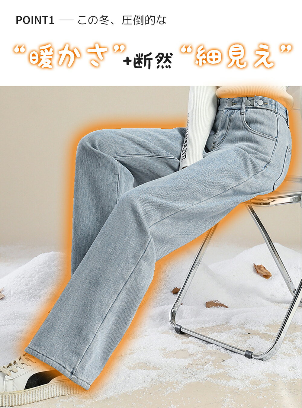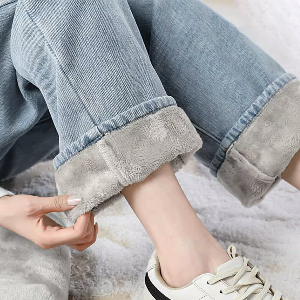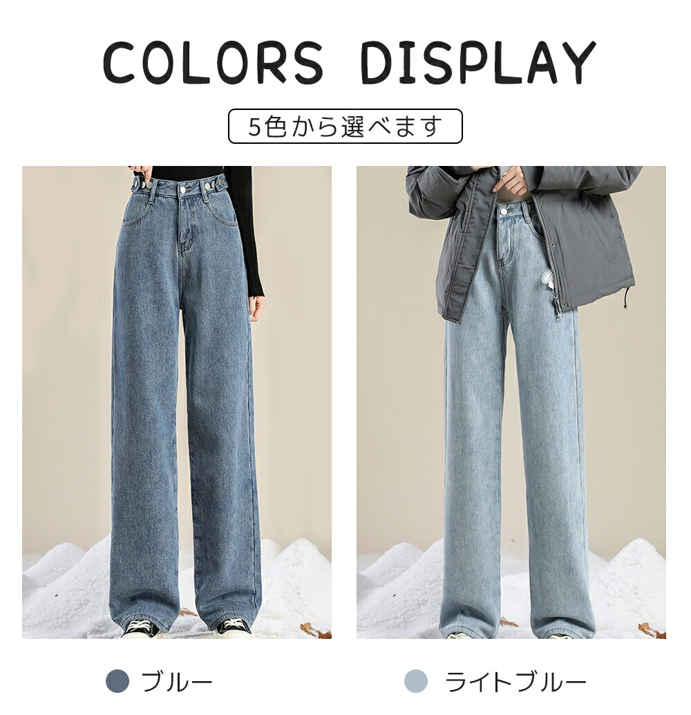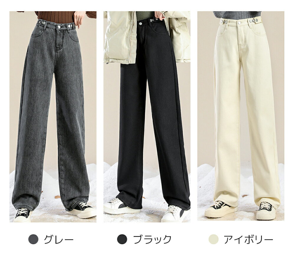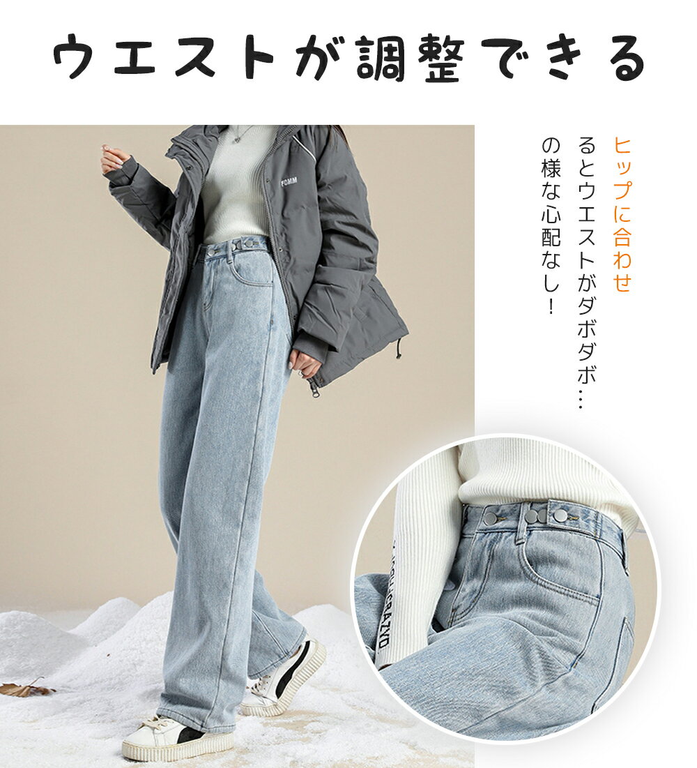 \クーポン利用で2,580円!!/裏起毛 デニム デニムパンツ パンツ レディース ストレート 防寒 防風 裏ファー あったか カジュアル ゆったり ジーンズ ズボン ボトムス ジーパン 極暖 秋冬