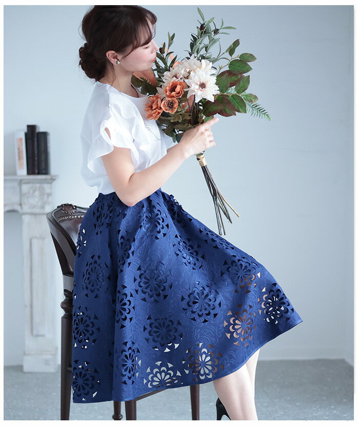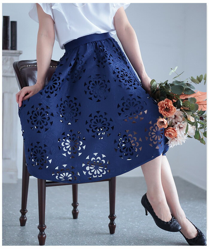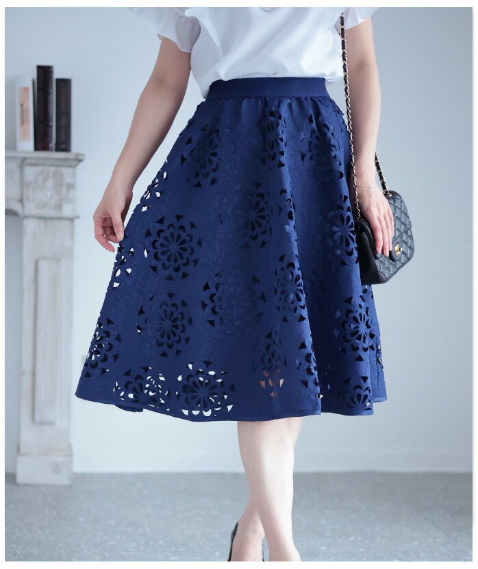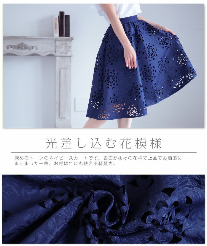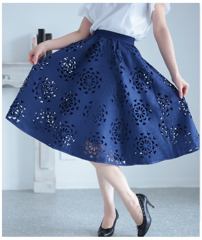 抜ける美しさで、映えるコーデ ボトムス スカート ハーフ丈 ネイビー navy 春夏 レディースファッション ナチュラル mori 森ガール otona kawaii フリーサイズ サワアラモード sawa alamode カワイイ かわいい 可愛い ◆alamode