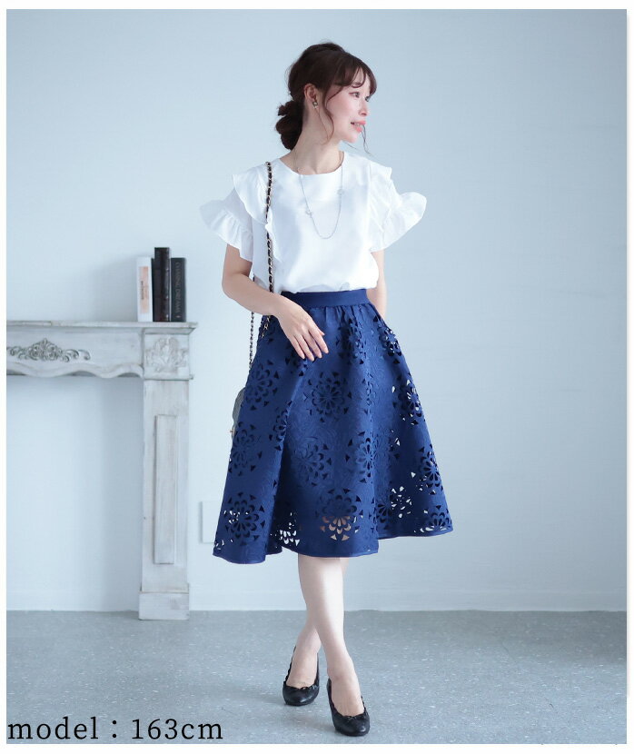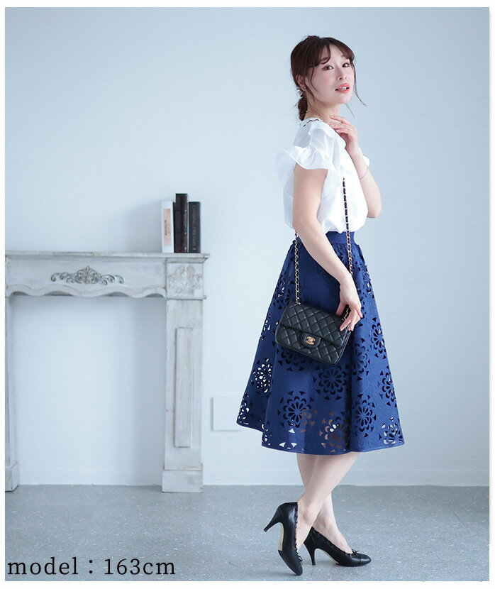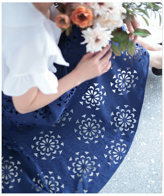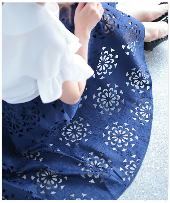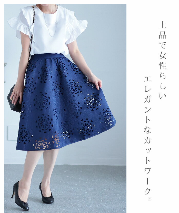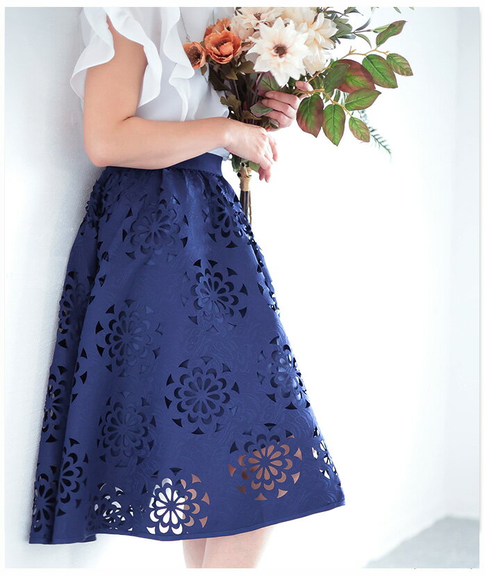 抜ける美しさで、映えるコーデ ボトムス スカート ハーフ丈 ネイビー navy 春夏 レディースファッション ナチュラル mori 森ガール otona kawaii フリーサイズ サワアラモード sawa alamode カワイイ かわいい 可愛い ◆alamode