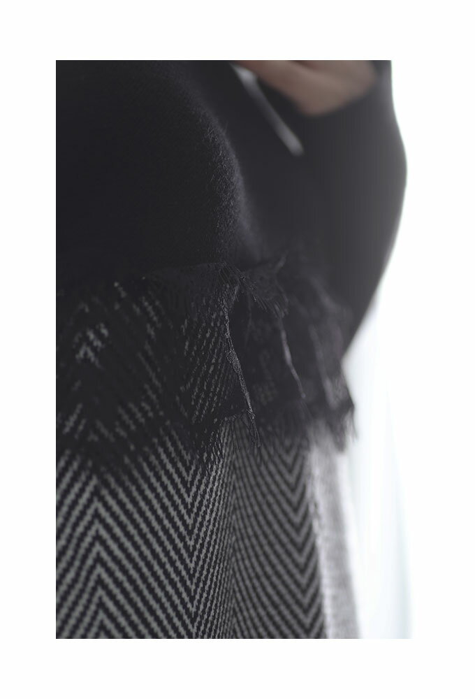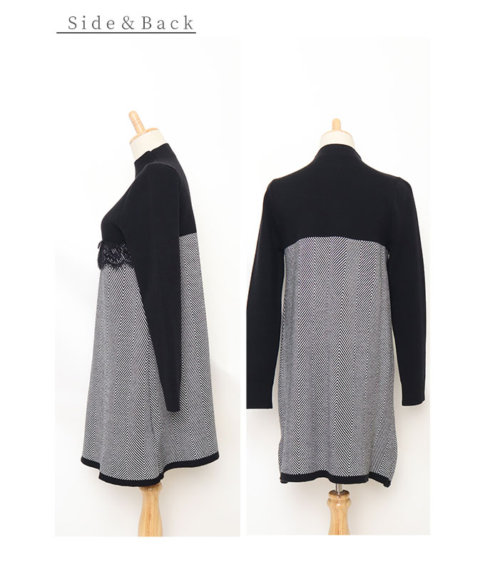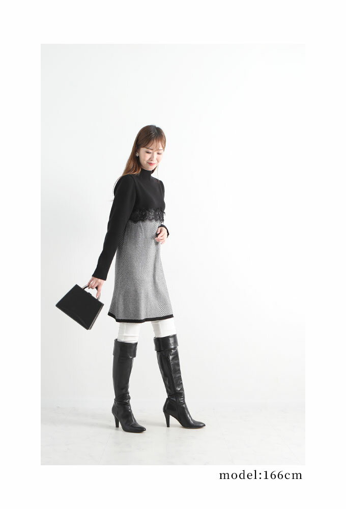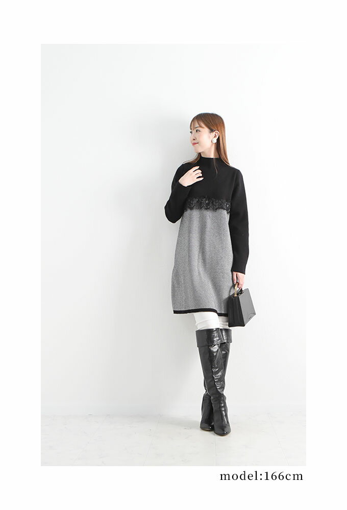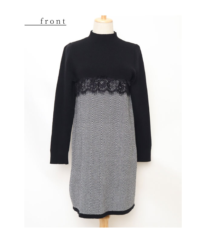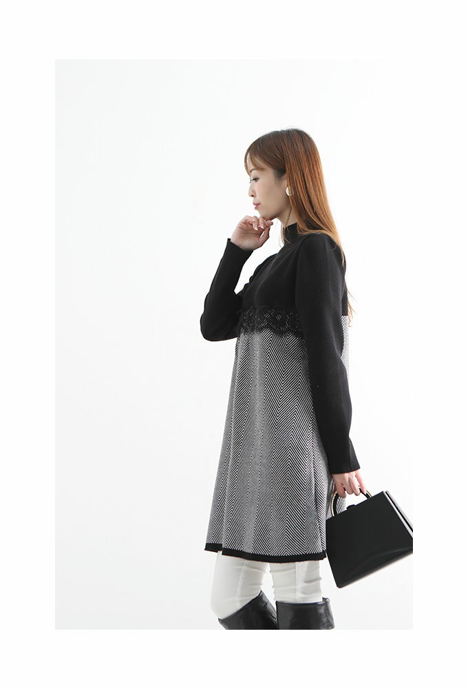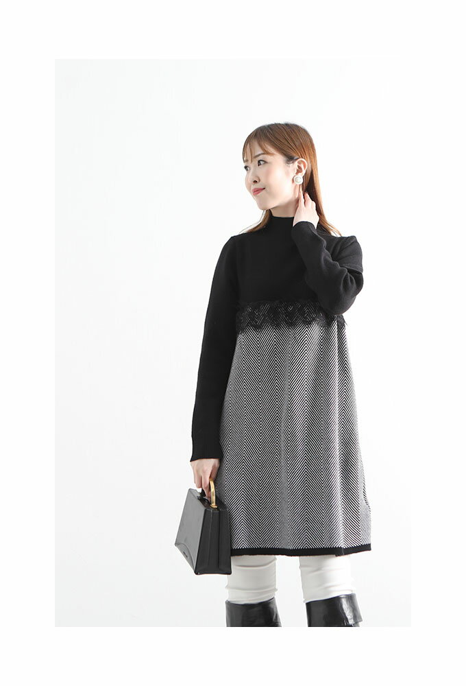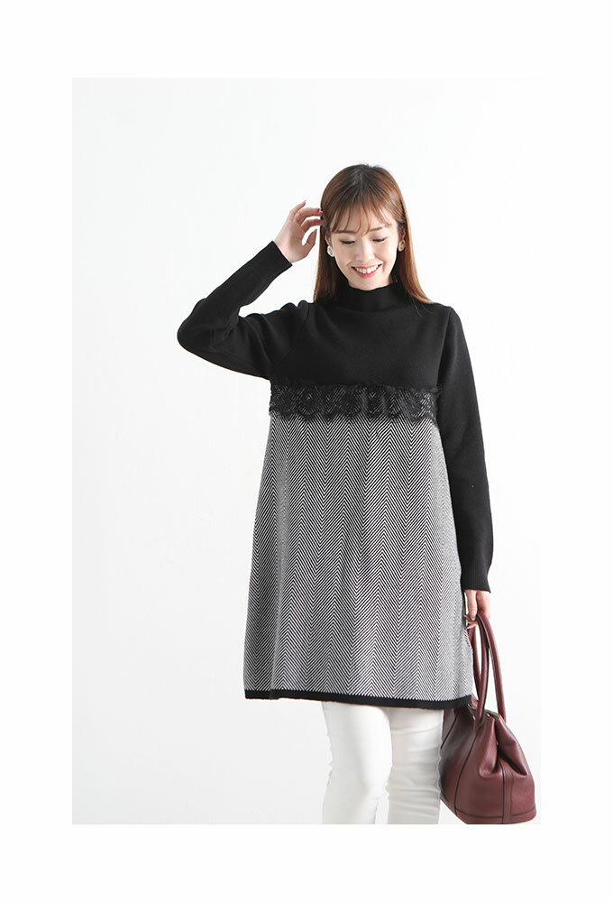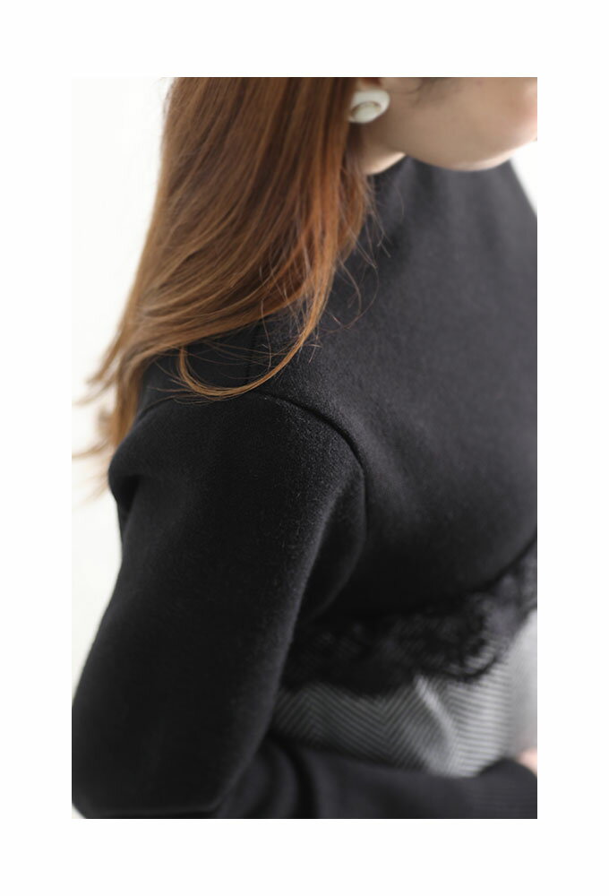 大人シックなモノトーンの胸元レースチュニック レディース ファッション トップス チュニック 黒 ブラック 長袖 秋 大人可愛い 40代 レディースファッション 50代女性 ファッション 60代 ミセスファッション サワアラモード sawaalamode otona ◆alamode