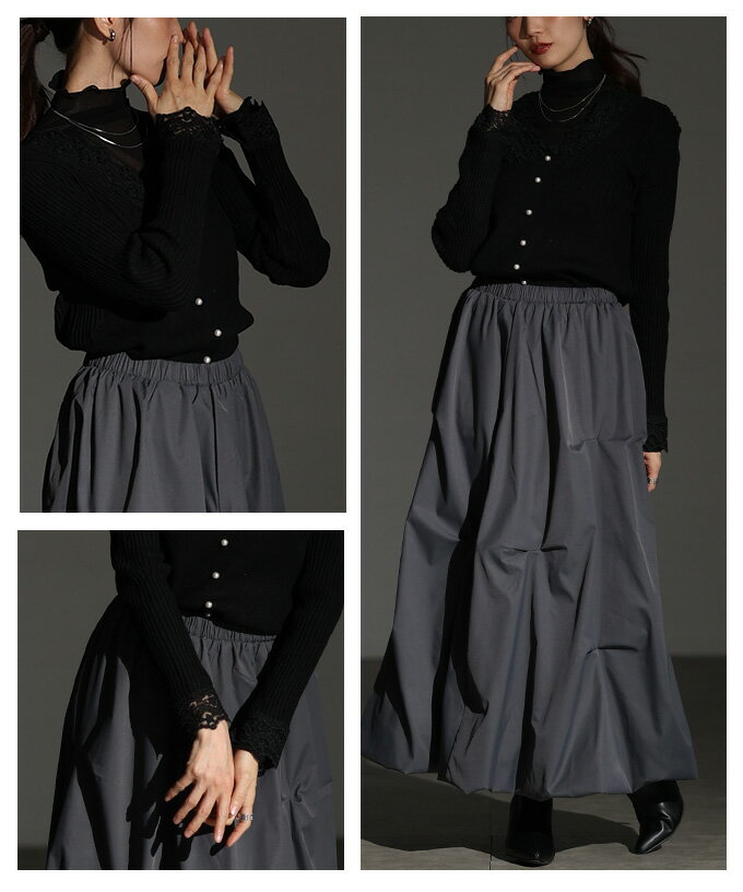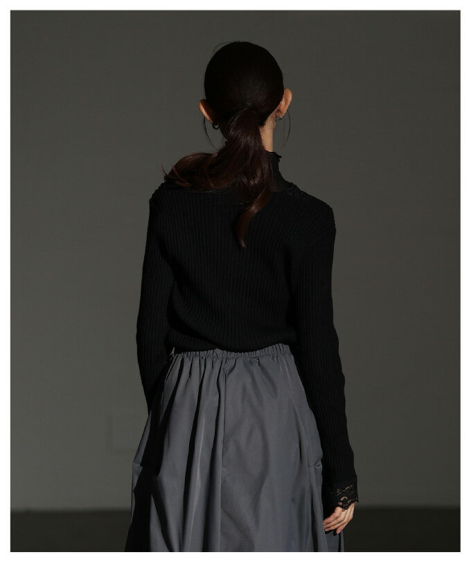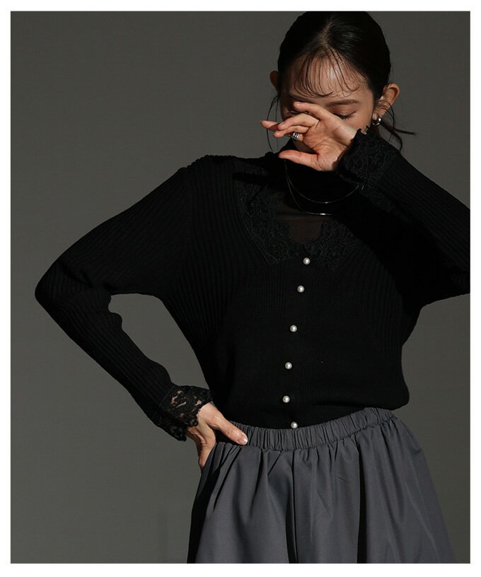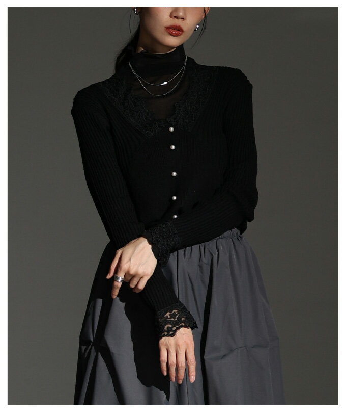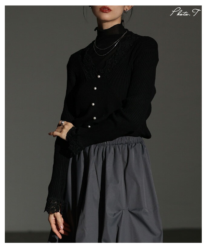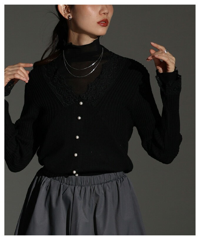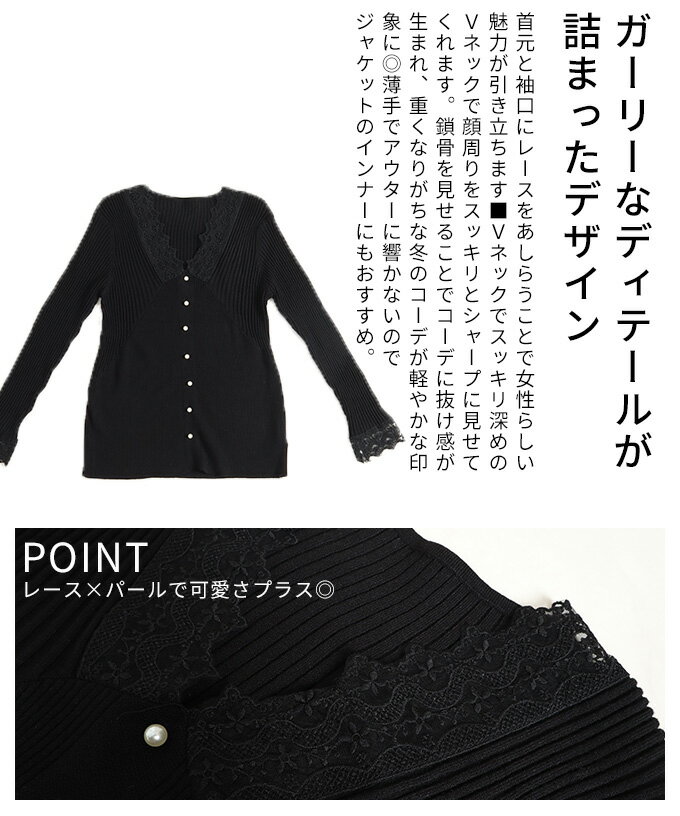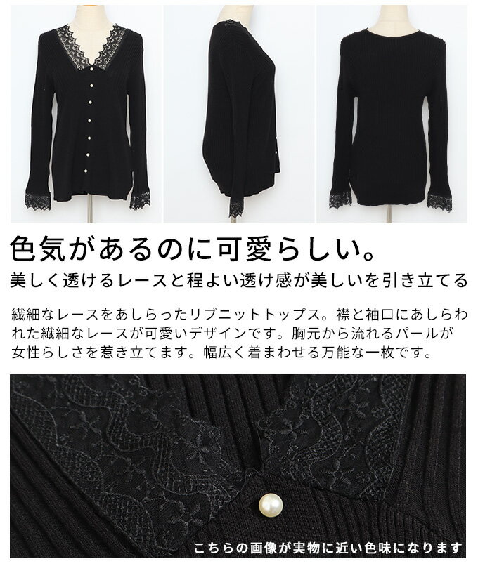 繊細なレースをあしらったVネックリブニットトップス レディース ファッション トップス ニット セーター 黒 ブラック 大人可愛い 40代 レディースファッション 50代女性 ファッション 60代 ミセスファッション サワアラモード sawaalamode otona 【12月30日20時販売新作】