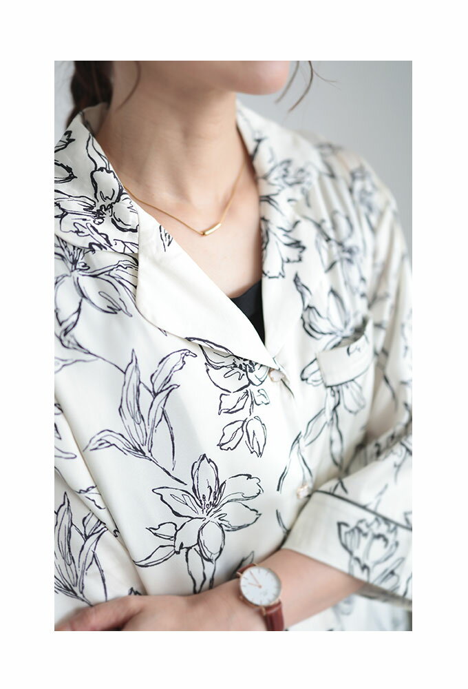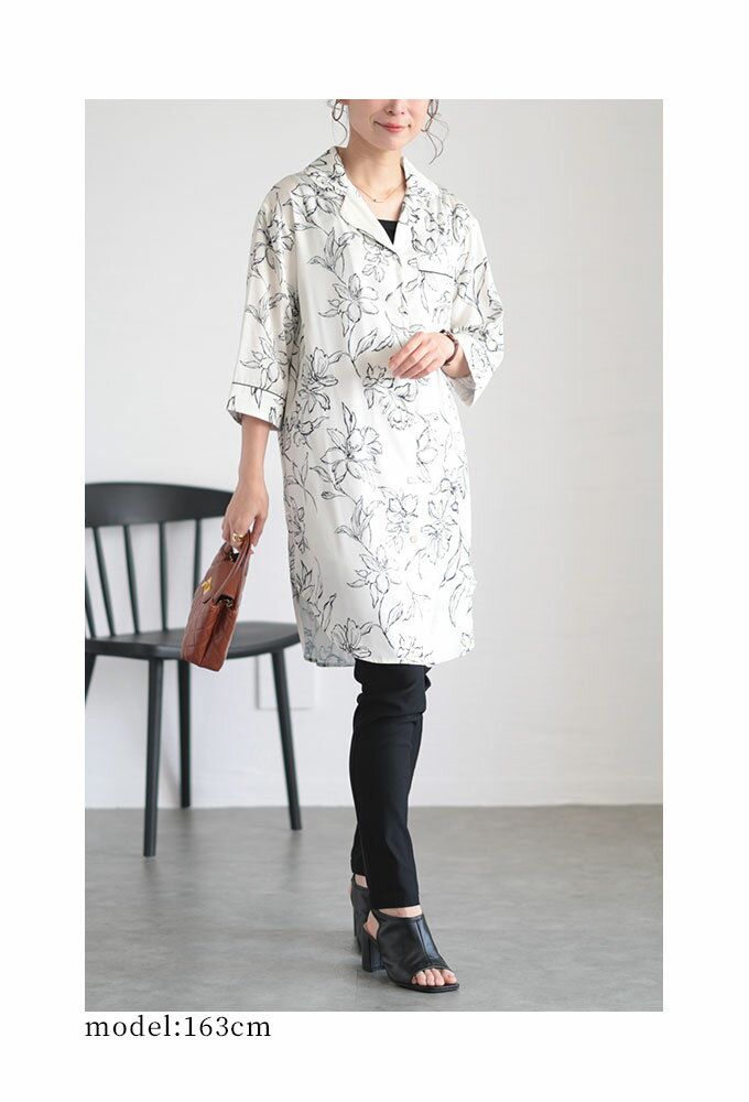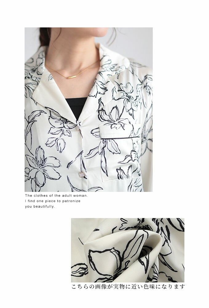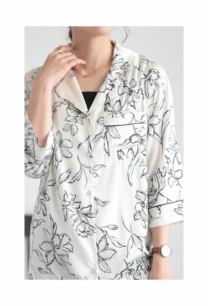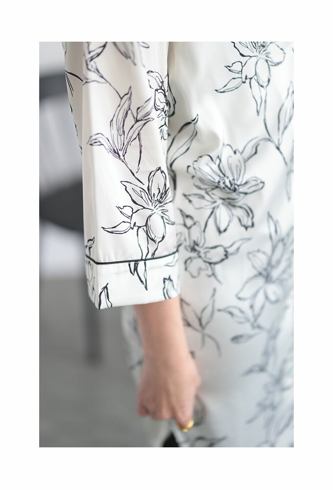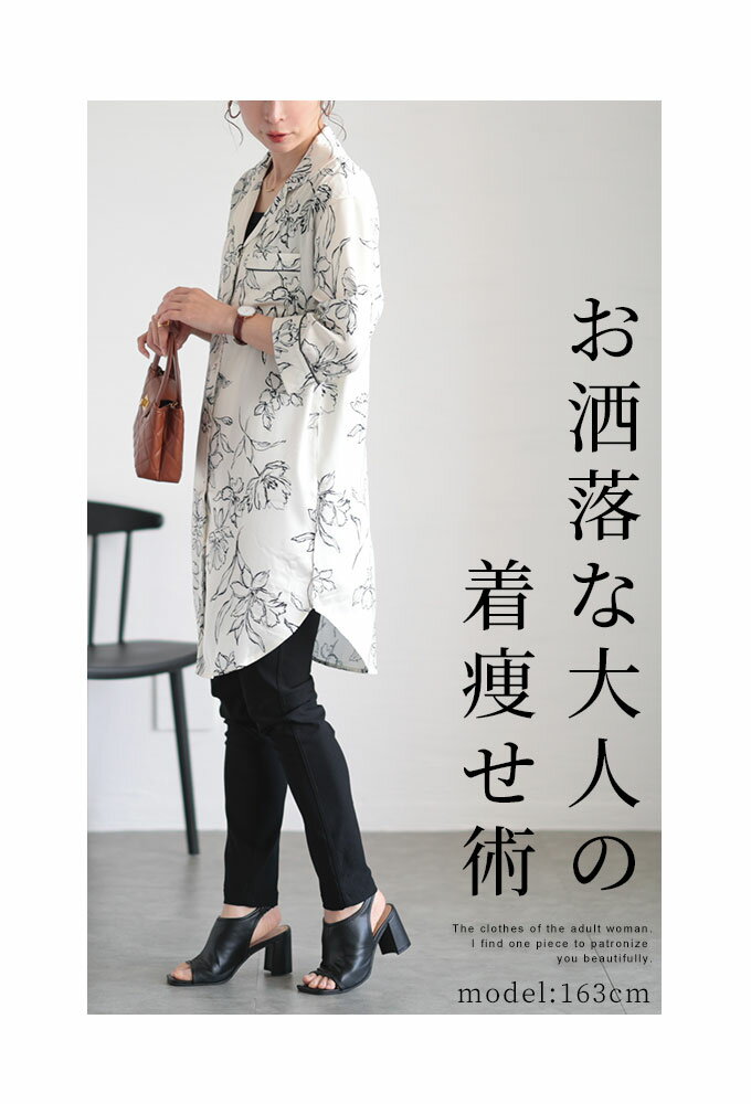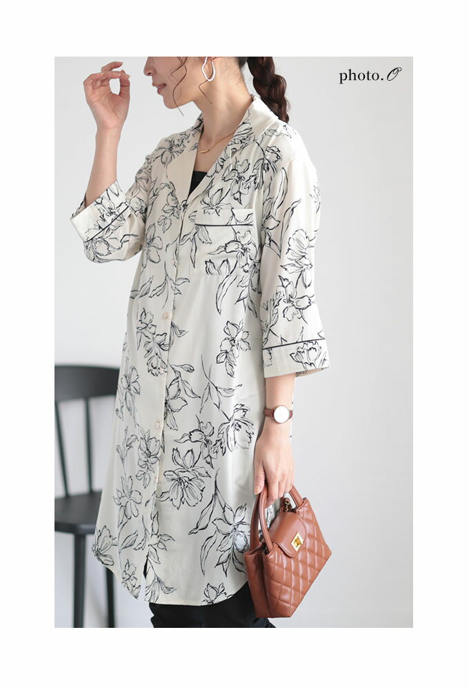 エレガントな花画の高見えシャツチュニック レディース ファッション チュニック トップス シャツ 白 オフホワイト 花柄 大人可愛い 40代 レディースファッション 50代女性 ファッション 60代 ミセスファッション サワアラモード sawaalamode otona