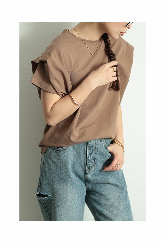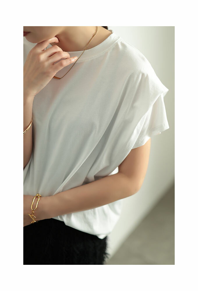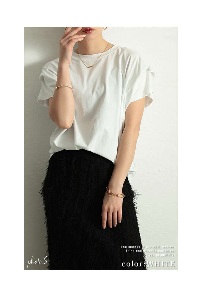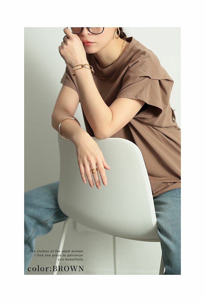 小粋なアクセントが光るタックスリーブカットソー レディース ファッション トップス カットソー Tシャツ タック 半袖 無地 シンプル クルーネック 夏 30代 40代 50代 60代 サワアラモード sawaalamode otona 大人 kawaii 可愛い 洋服 かわいい服 【3月10日20時販売新作】