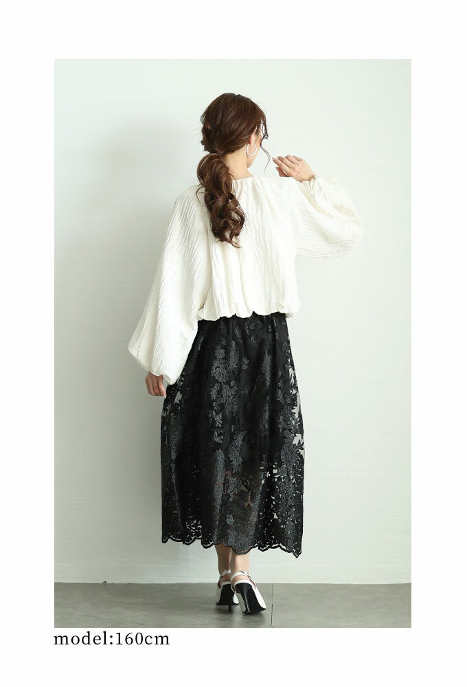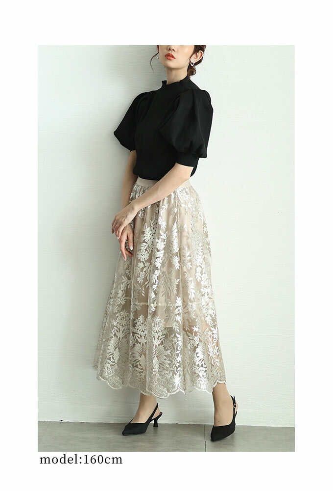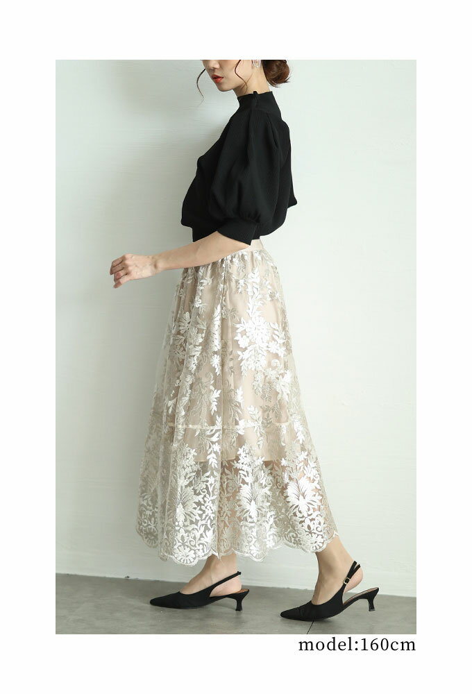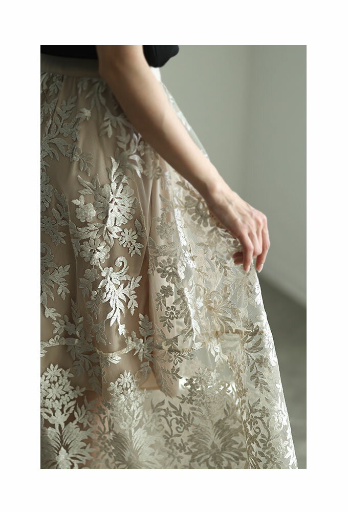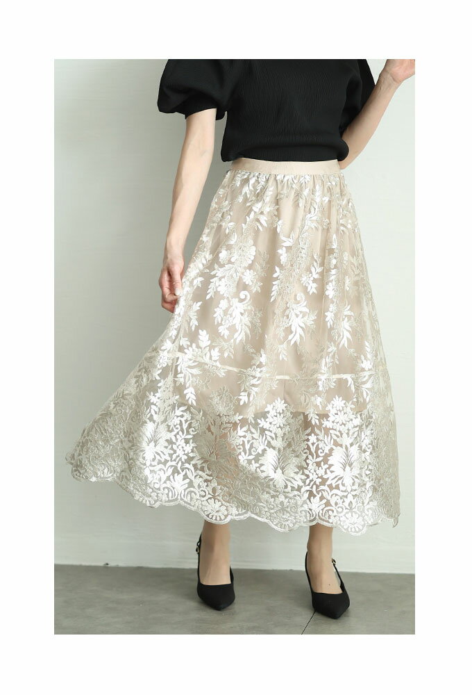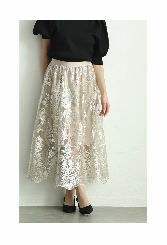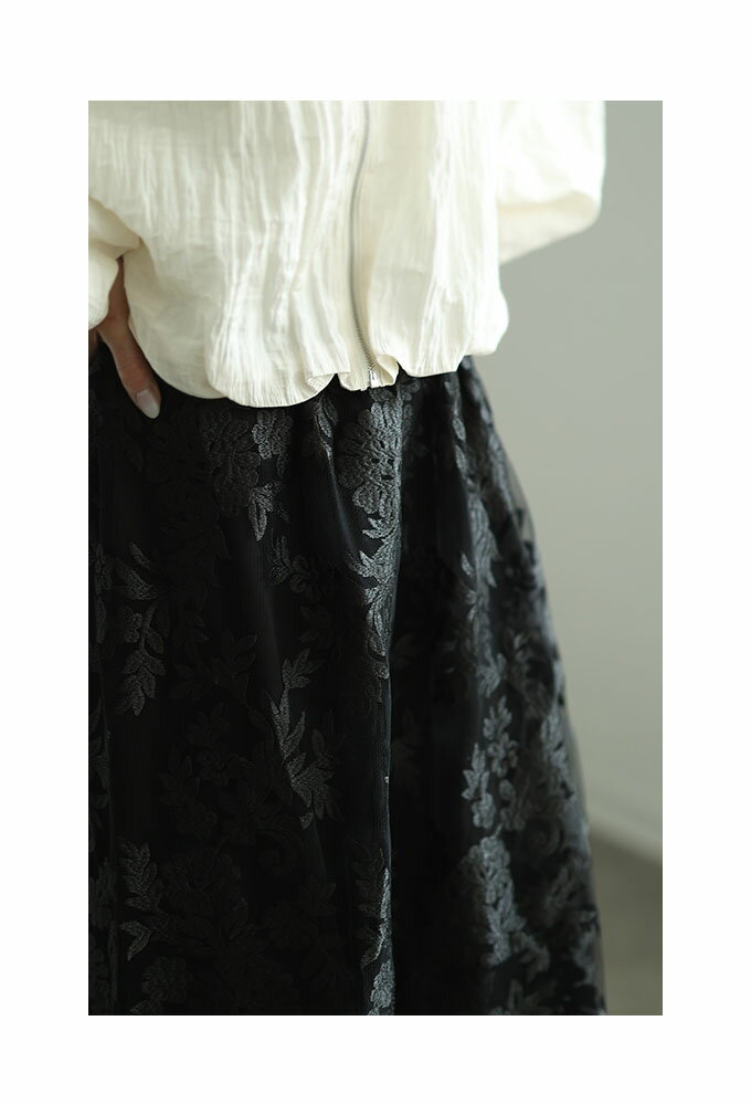 エレガントな柄が浮き立つ刺繍ベールのチュールフレアスカート レディース ファッション ボトムス スカート ブラック 黒 大人可愛い 40代 レディースファッション 50代女性 ファッション 60代 ミセスファッション サワアラモード sawaalamode otona 【3月15日20時販売新作】