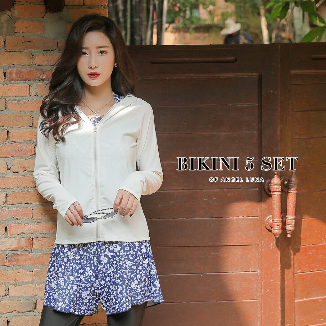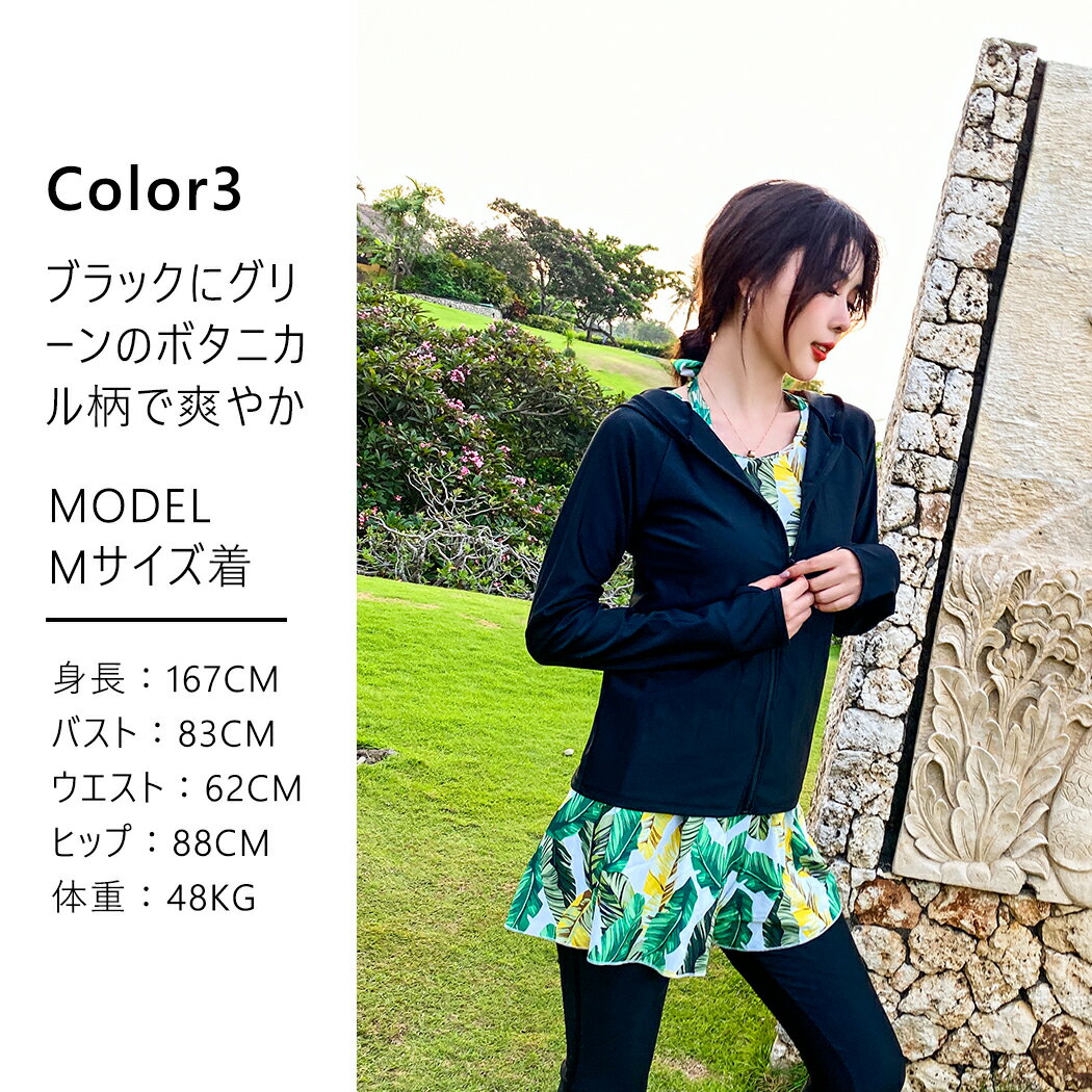 体型カバー 水着 レディース 長袖ラッシュガード 5点上下セット UPF50+ フィットネス水着 セパレート かわいい 大きいサイズ ビキニ ロンパース レギンス ママ水着 20代 30代 40代 50代 オトナ女子 露出控えめ 脚 二の腕 太もも お尻 お腹 カバーアップ 黒 白 リゾート