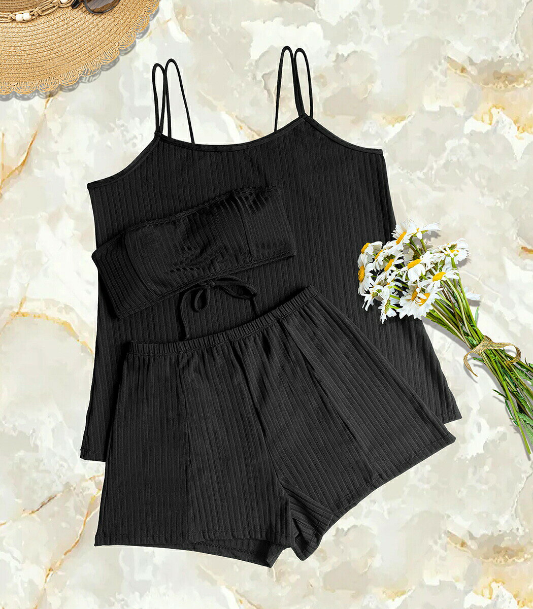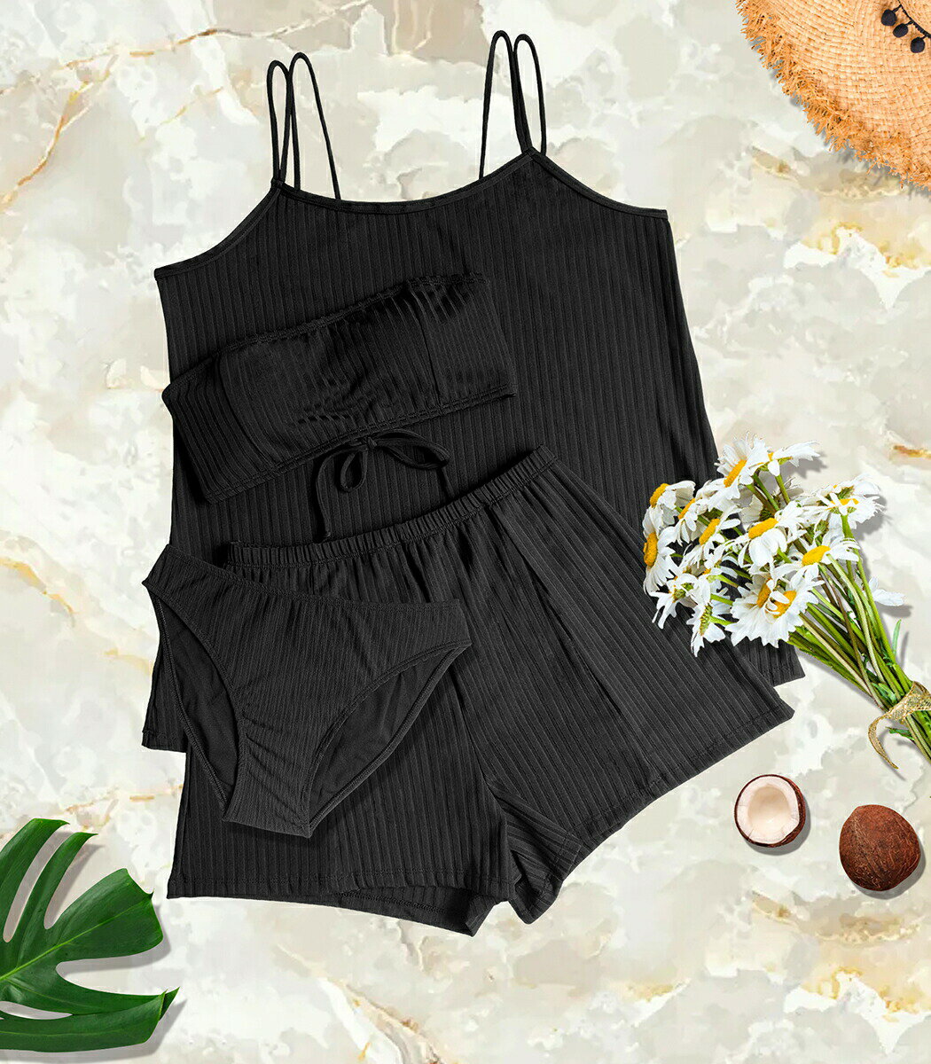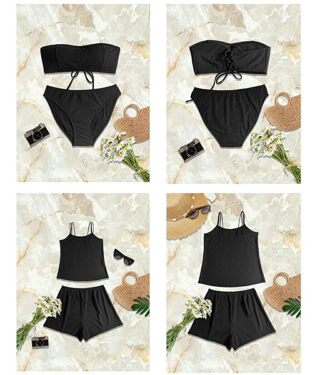 【ビキニ水着4点セット】レディース 体型カバー トップス アウター キャミソール風 トップス チューブトップ クロス 調節可 ショートパンツ 短パン セパレート 大きいサイズ シンプル 無地 小胸 盛れる お腹/太もも/お尻 露出控えめ 女子 ママ ぽっちゃり お洒落 セクシー