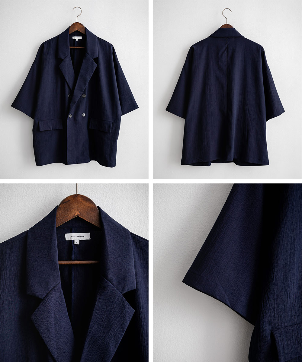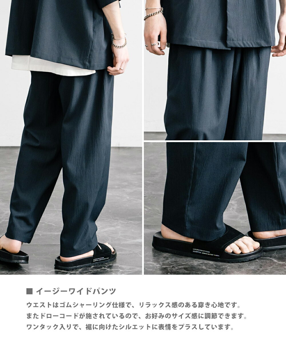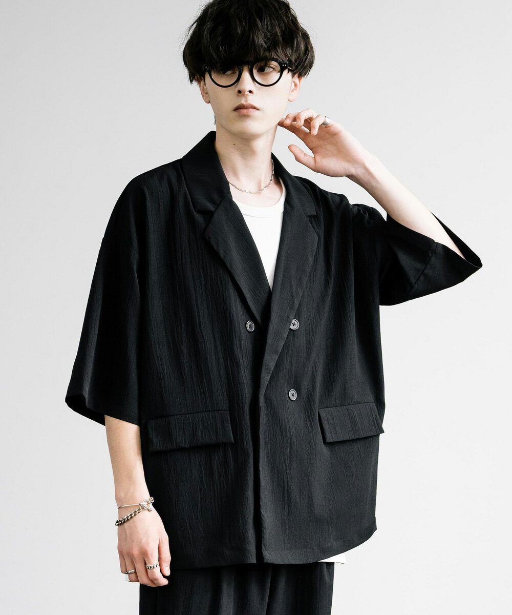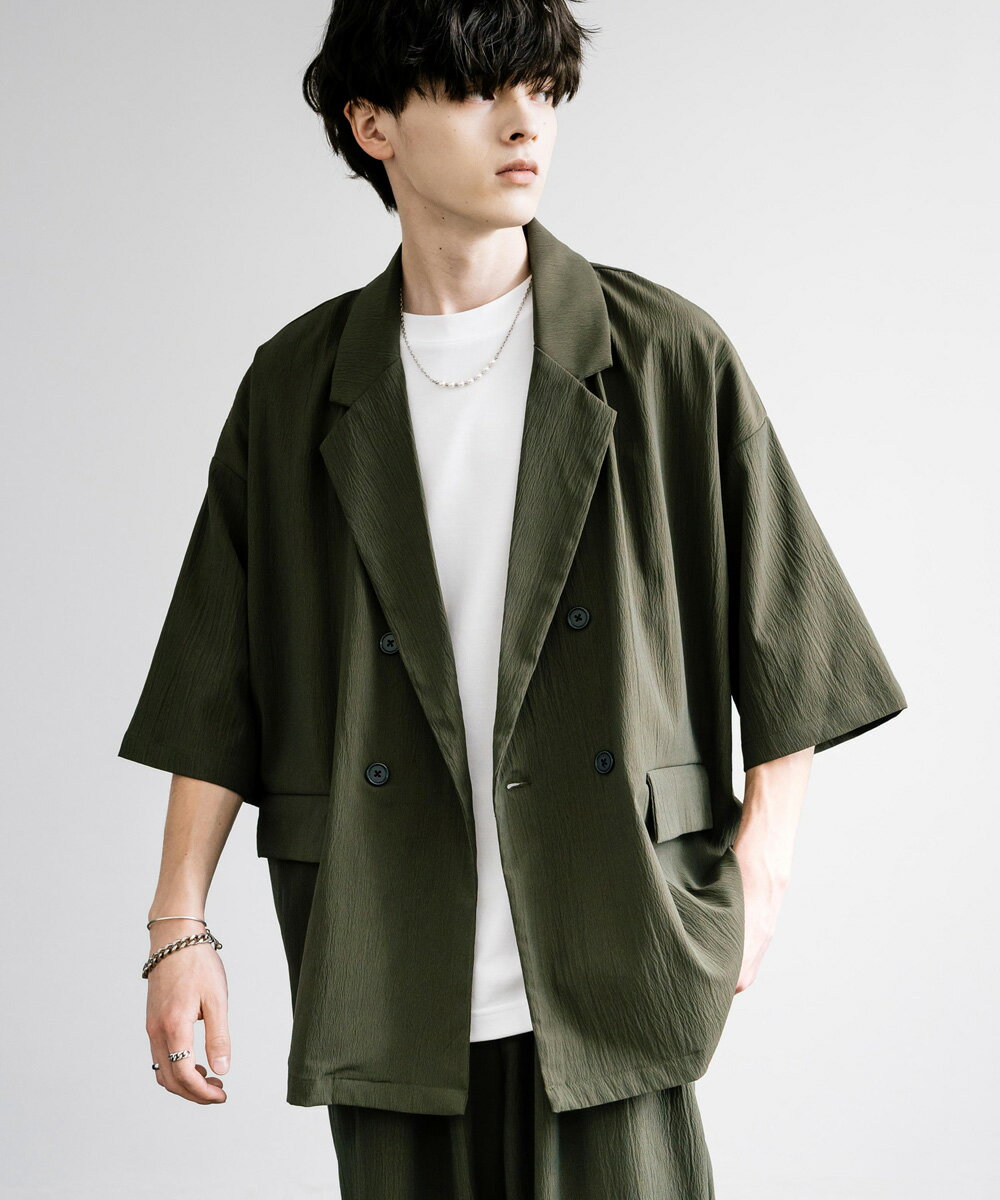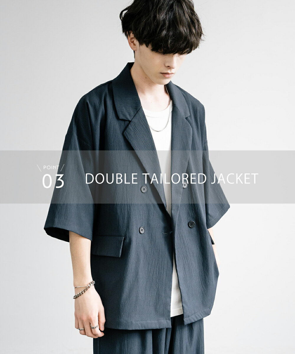 【SALE⇒22%OFF】セットアップ 上下 メンズ ストレッチ ダブルテーラード サマージャケット 半袖 2B ライトアウター スラックス イージー ワイド テーパード オーバーサイズ ビッグシルエット ルーズ リラックス 無地 通気性 涼しい シンプル きれいめ ビジカジ 夏 13539