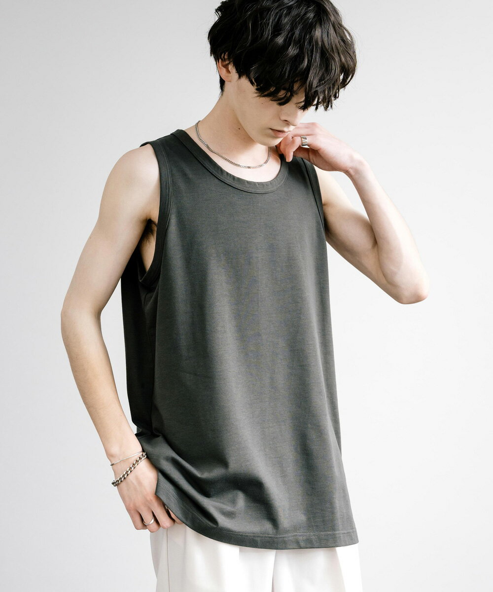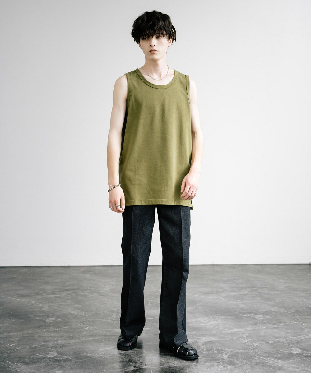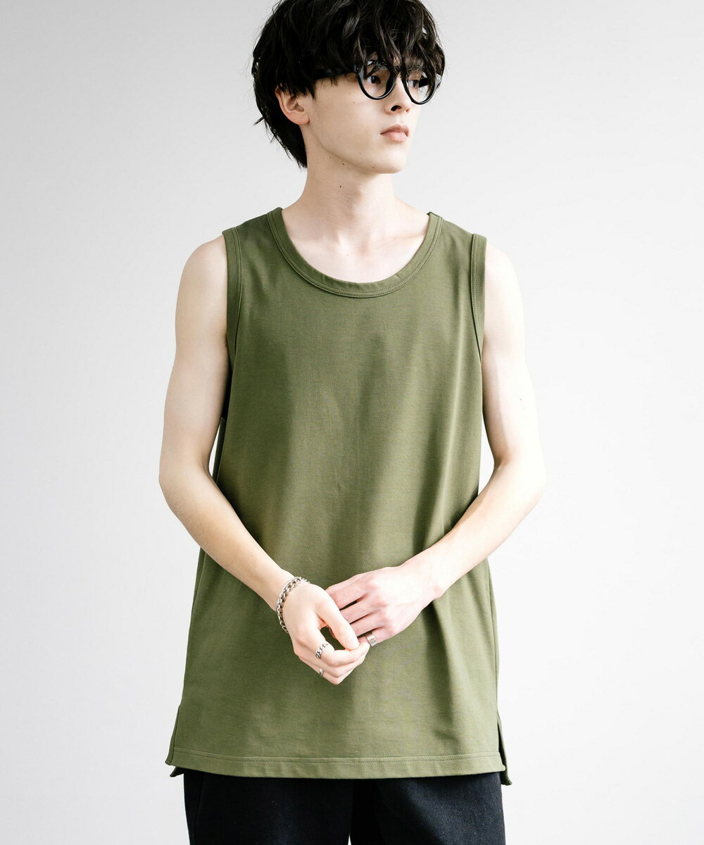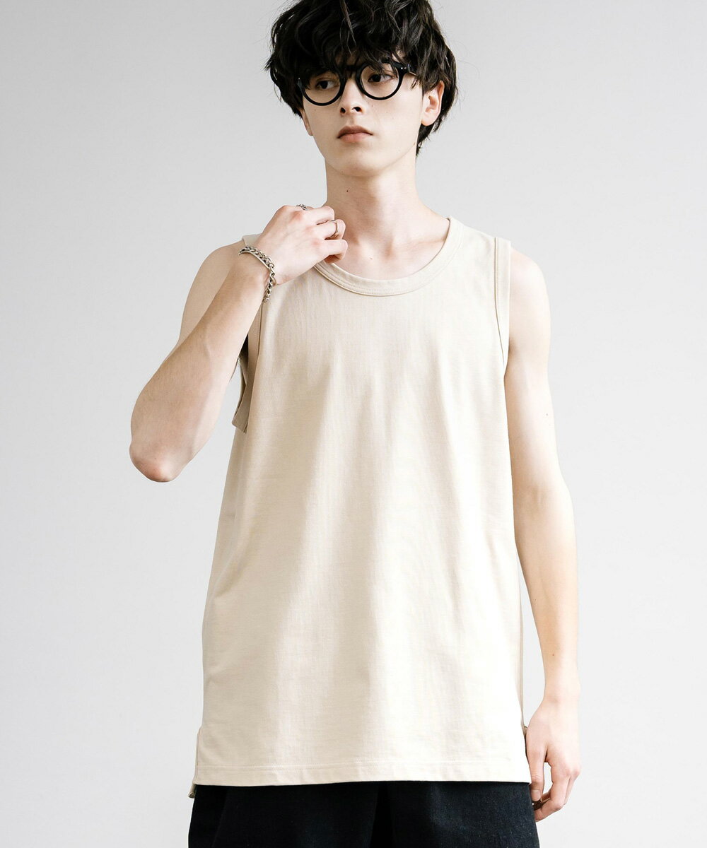 タンクトップ ロング丈 ノースリーブ メンズ レディース VORTEX 8オンス サイドスリット レイヤード 重ね着 日本製 国産 ルーズ ビッグシルエット オーバーサイズ 無地 シンプル カジュアル きれいめ Upscape Audience アップスケープオーディエンス AUD6527 13497