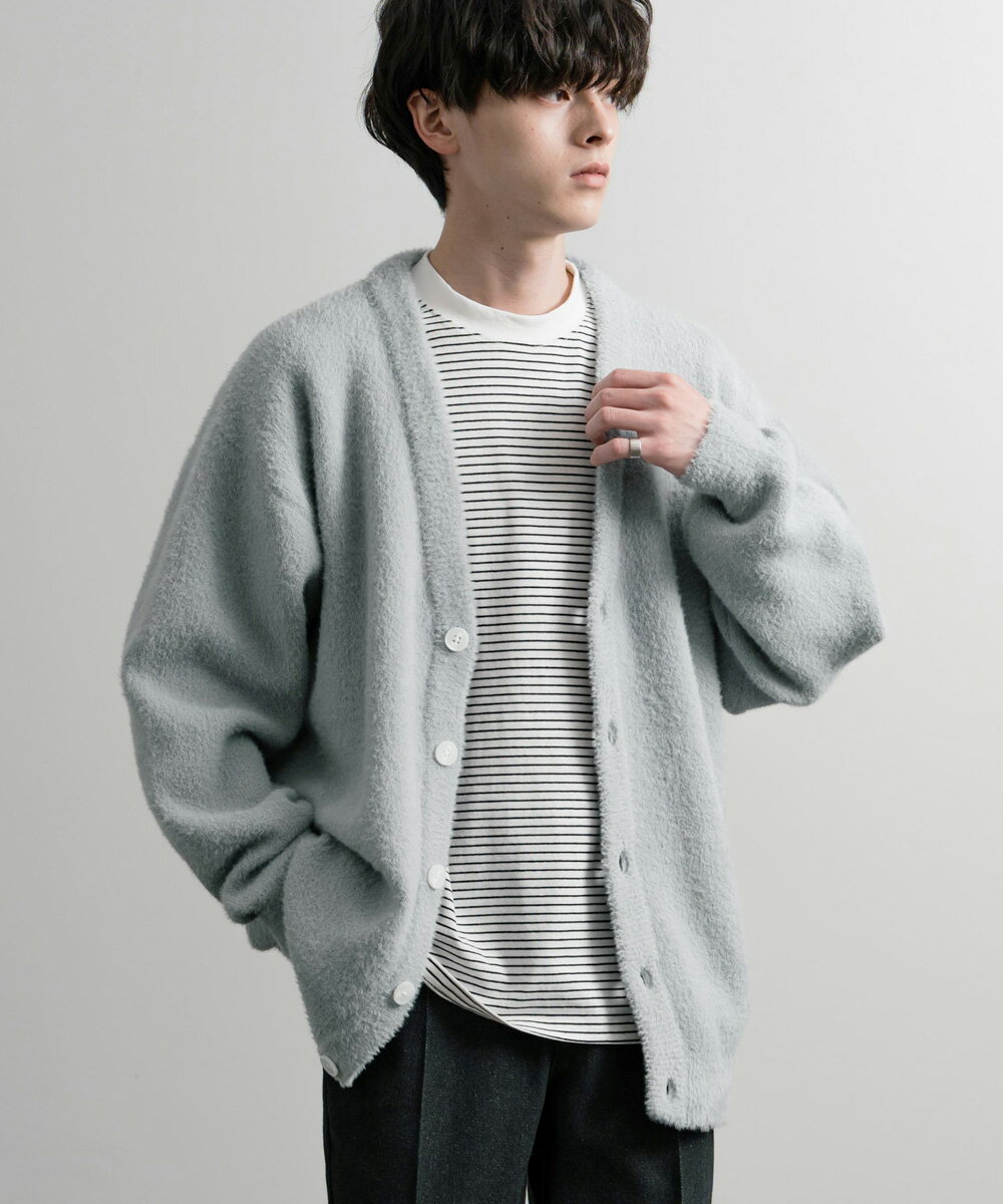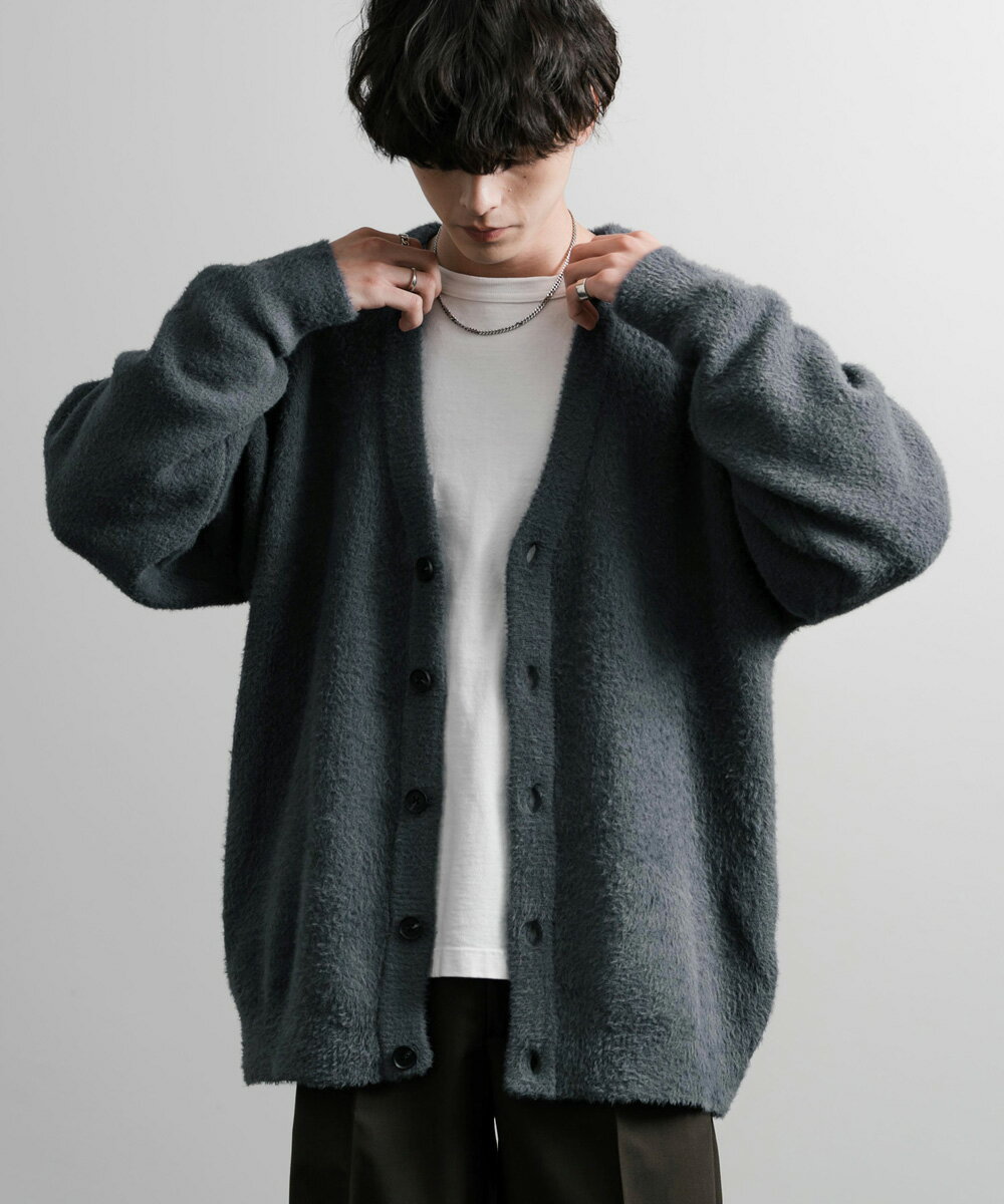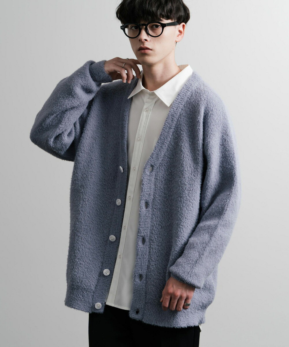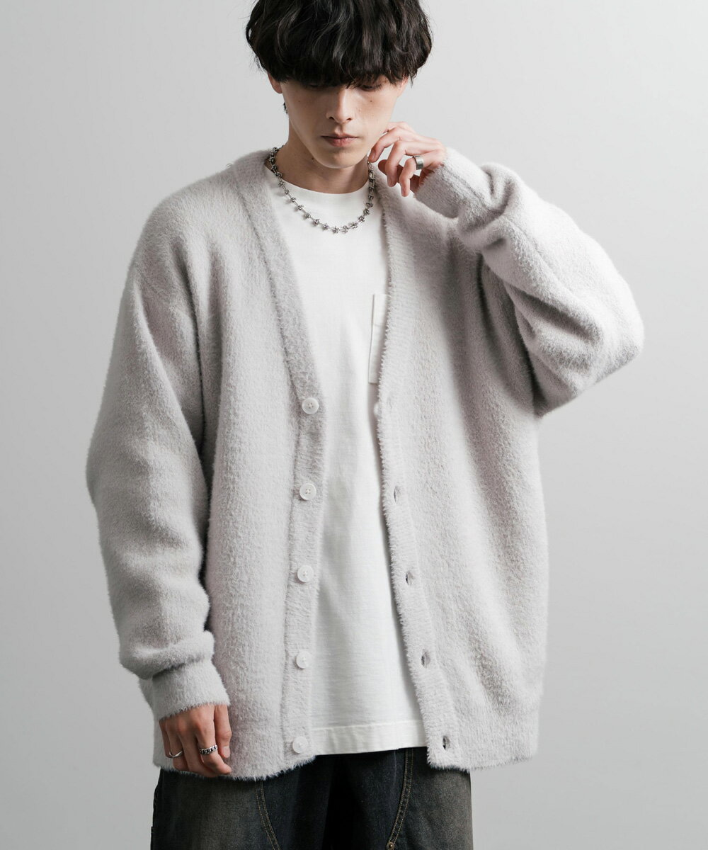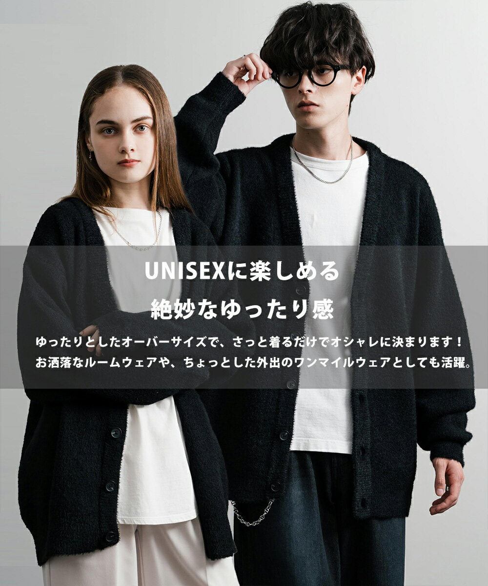 カーディガン ニット 無地 メンズ レディース 長袖 ライトアウター 羽織り フェザーヤーン Vネック ビッグシルエット オーバーサイズ ゆったり ルーズ ふわふわ カジュアル きれいめ シンプル ストリート 暖かい あったか 秋冬 14054