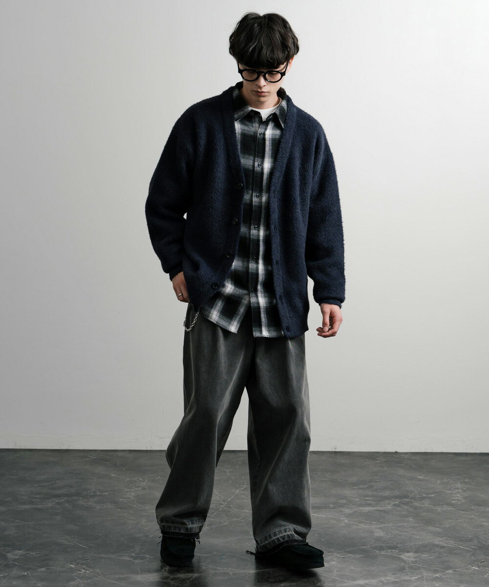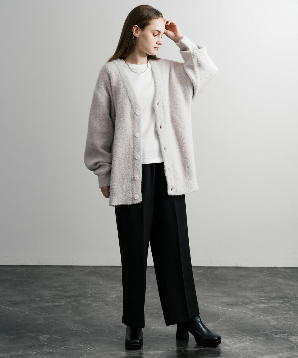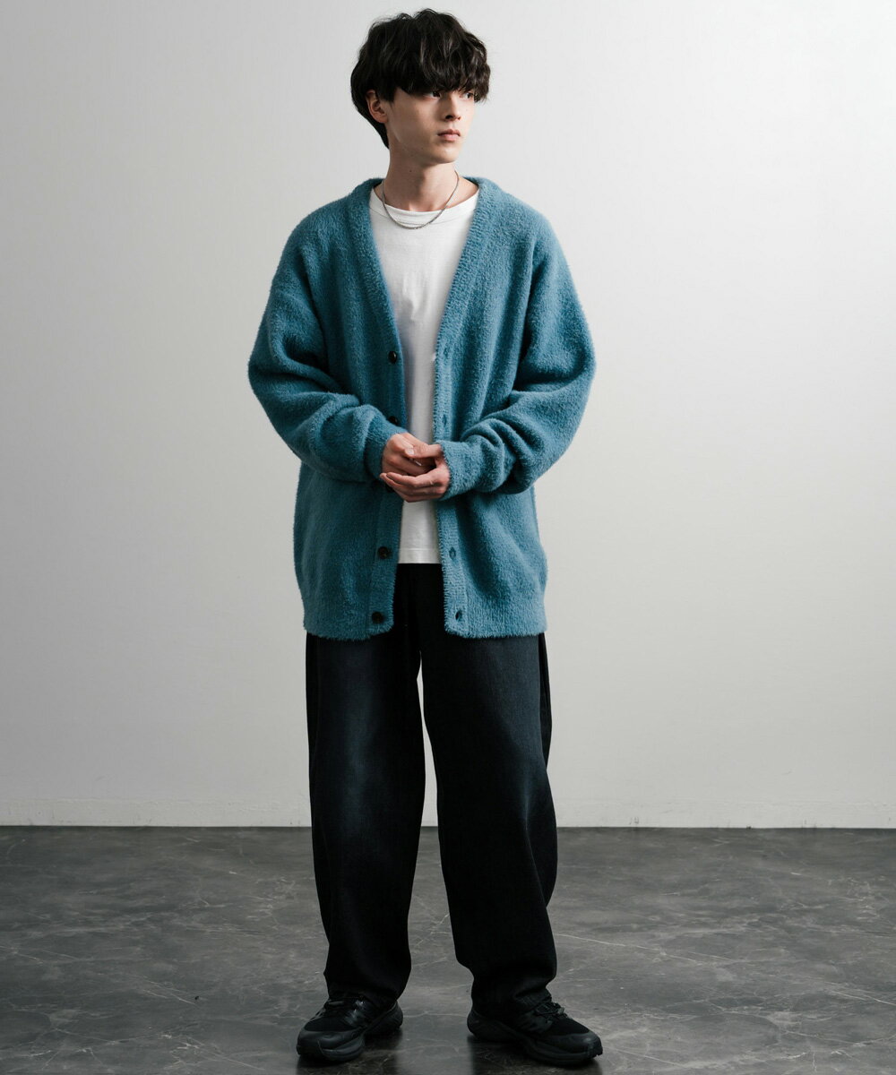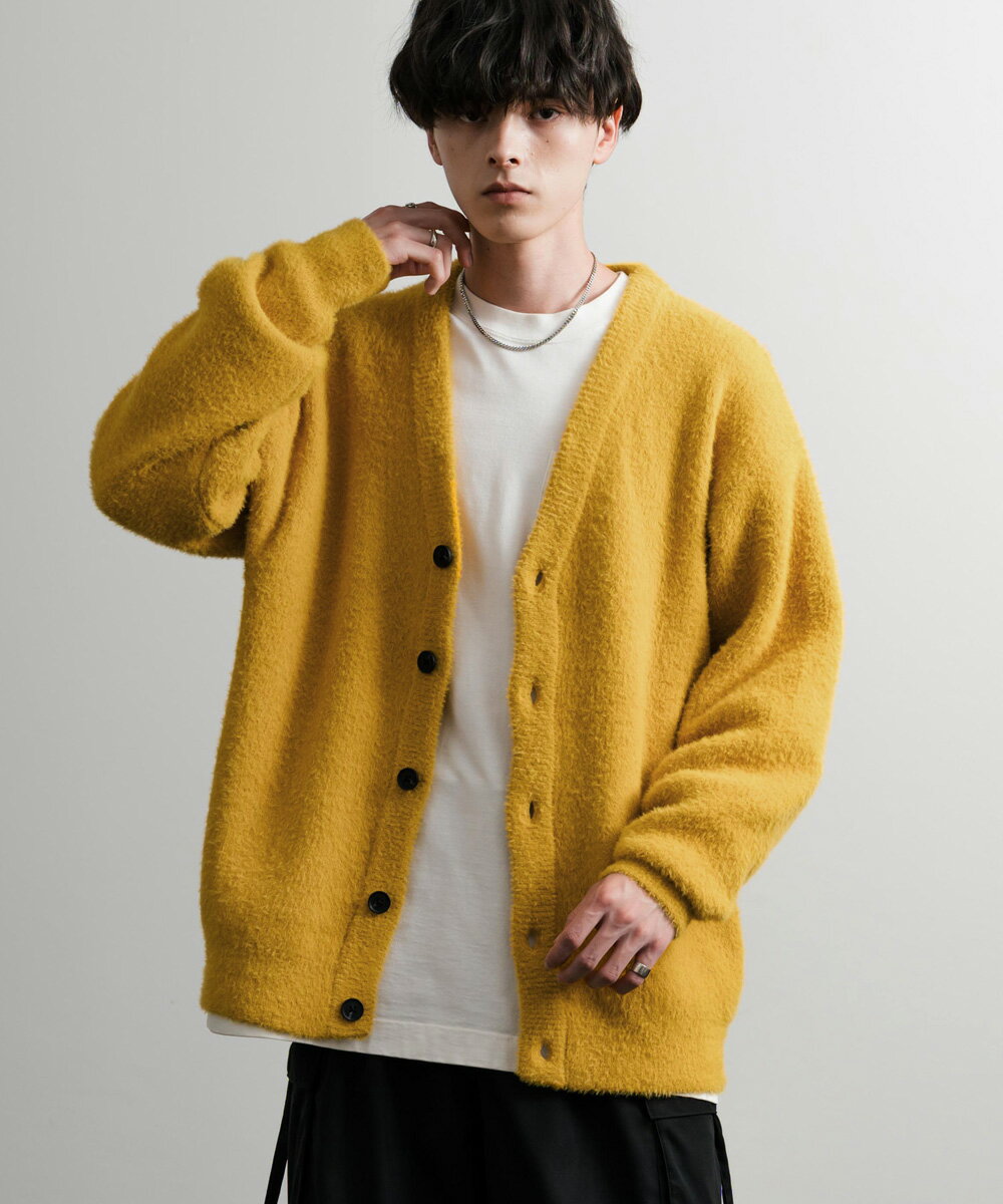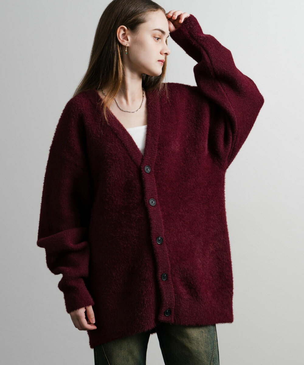カーディガン ニット 無地 メンズ レディース 長袖 ライトアウター 羽織り フェザーヤーン Vネック ビッグシルエット オーバーサイズ ゆったり ルーズ ふわふわ カジュアル きれいめ シンプル ストリート 暖かい あったか 秋冬 14054