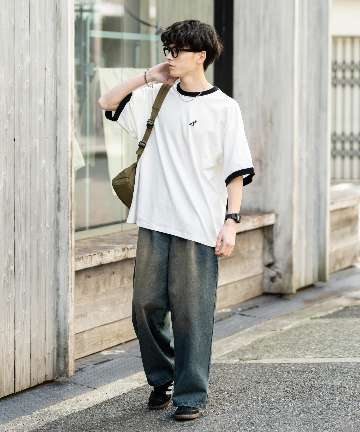 【SALE⇒30%OFF】KANGOL カンゴール Tシャツ 半袖 メンズ レディース カットソー オーバーサイズ ビッグシルエット リラックス ゆったり クルーネック ロゴ 刺繍 ワンポイント バイカラー パイピング 別注 コラボ 限定 シンプル カジュアル ゆうパケット 送料無料 14276
