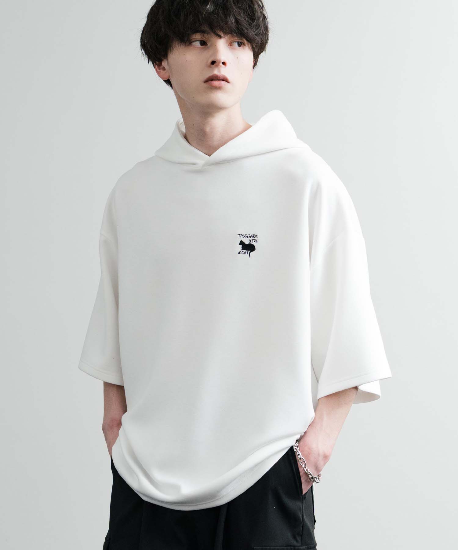 接触冷感 パーカー プルオーバー 半袖 メンズ レディース フーディー バックプリント オーバーサイズ ビッグシルエット ゆったり ルーズ リラックス ひんやり 清涼感 とろみポンチ ワンポイント 猫 刺繍 カジュアル ストリート シンプル 韓国 ルームウェア おしゃれ 14516