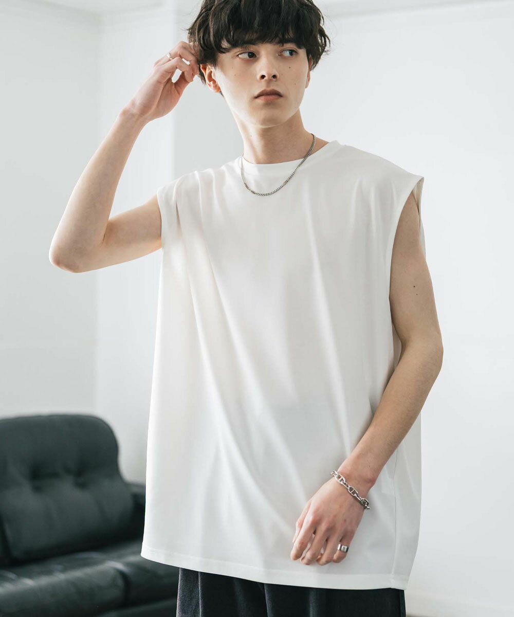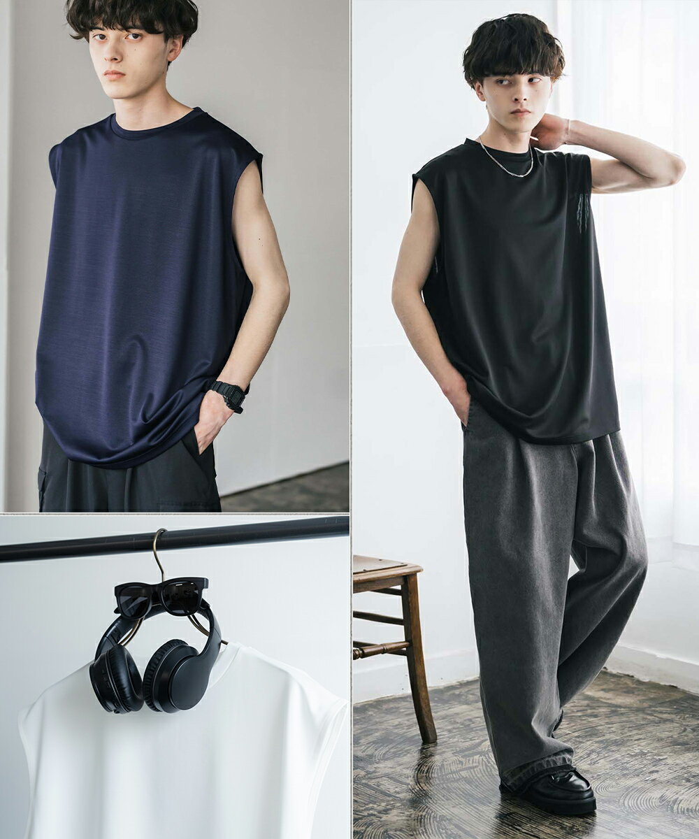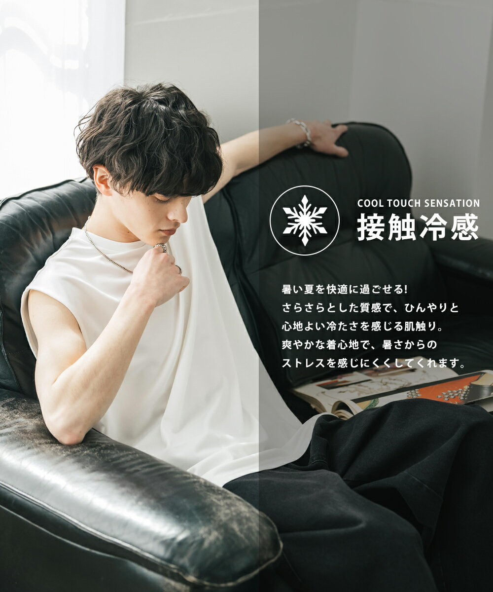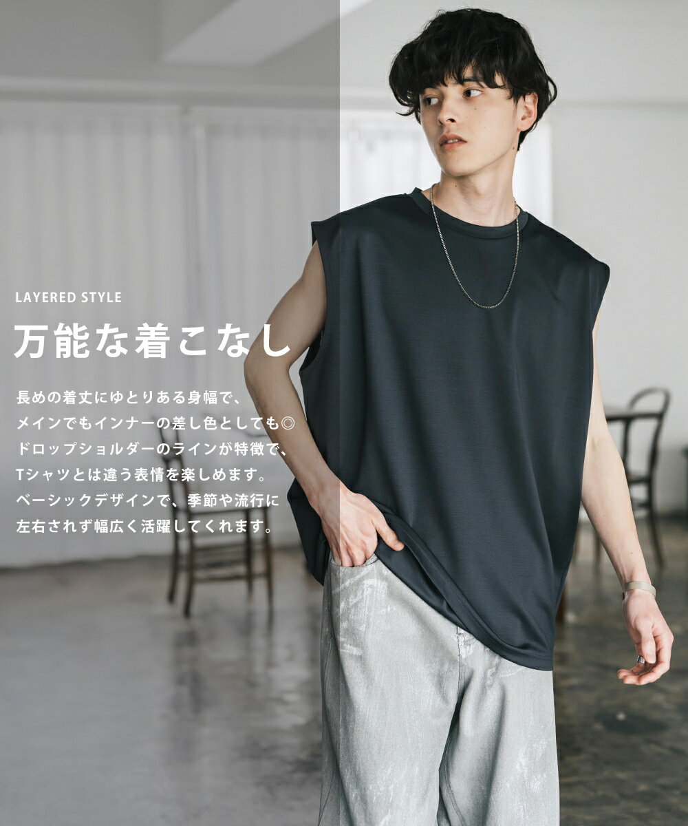 接触冷感 タンクトップ ノースリーブ ストレッチ メンズ レディース カットソー 無地 オーバーサイズ ドロップショルダー ワイド ルーズ リラックス ゆったり 清涼感 ひんやり クールタッチ 軽い インナー レイヤード 重ね着 ポンチ カジュアル ゆうパケット 送料無料 14296