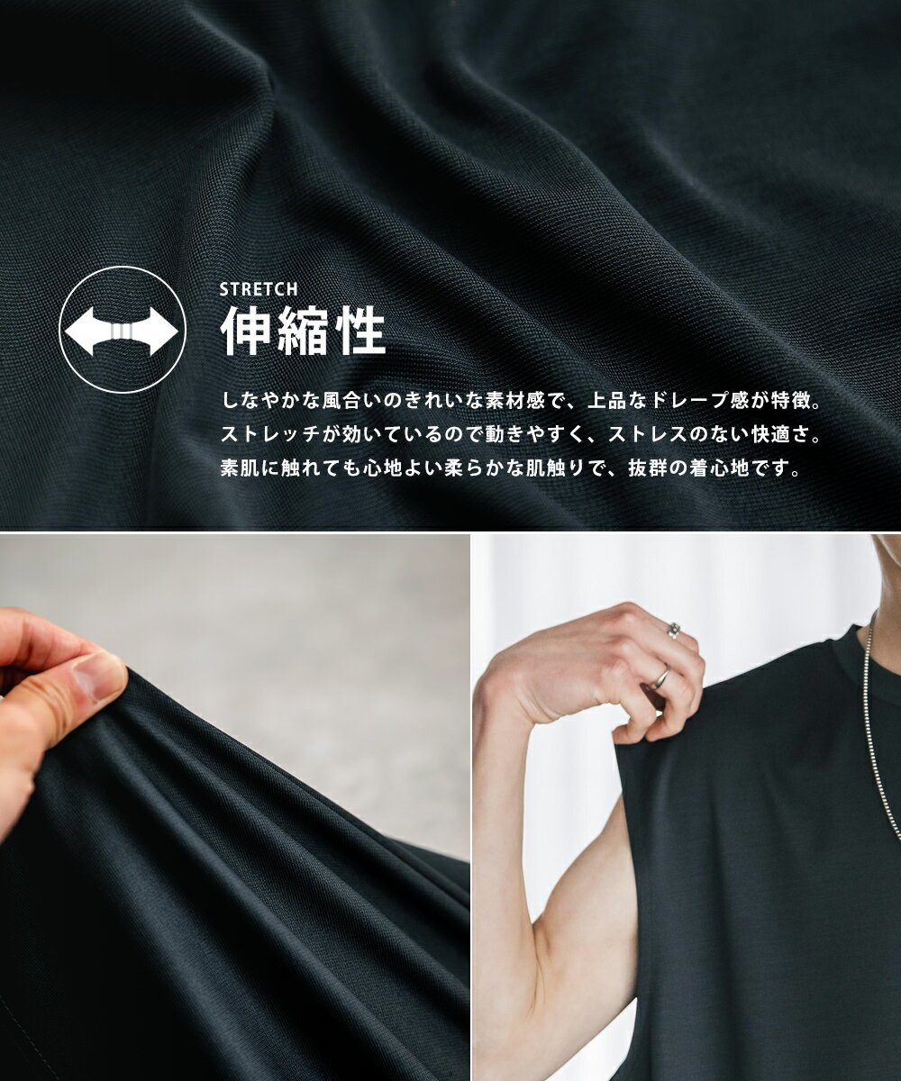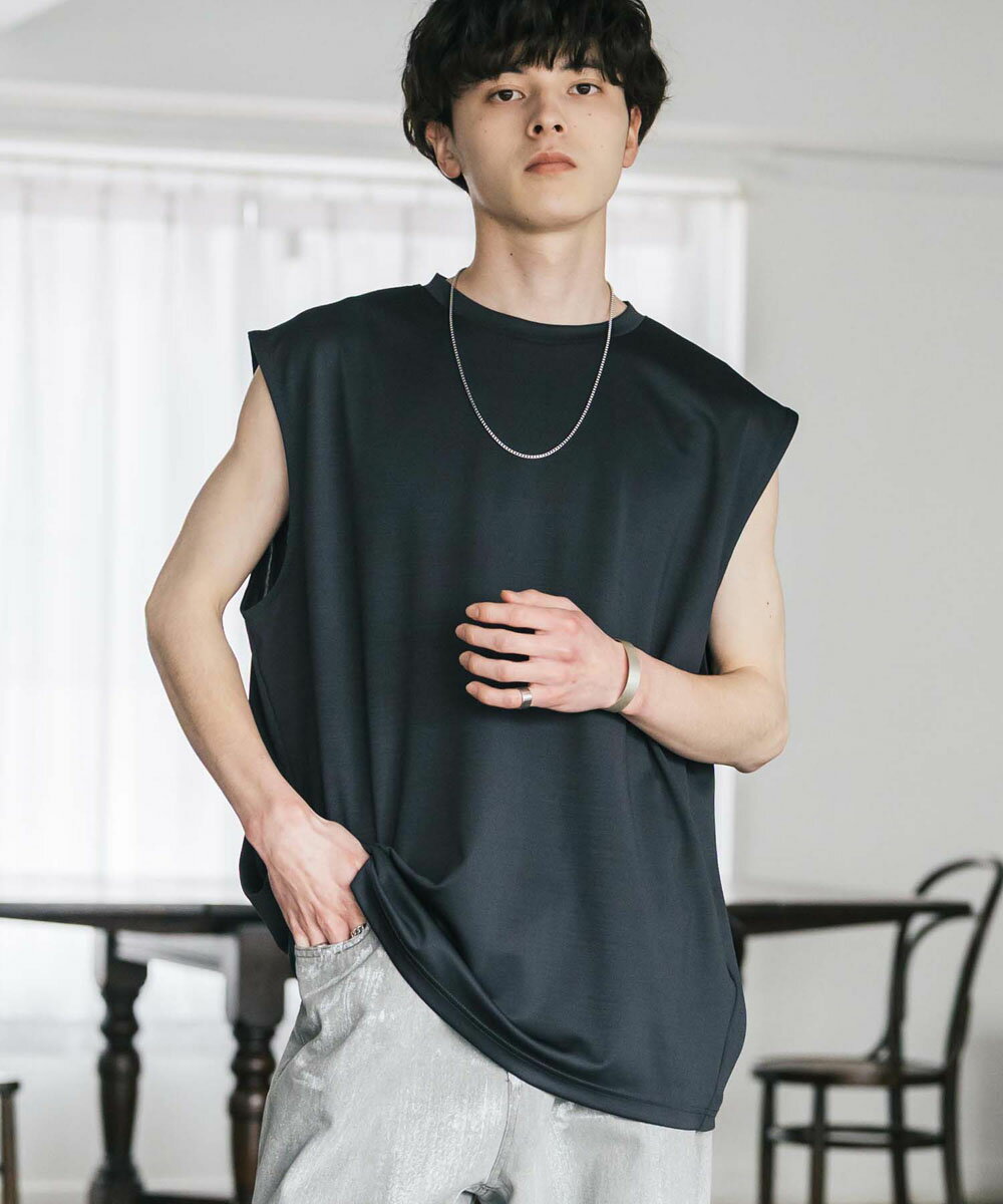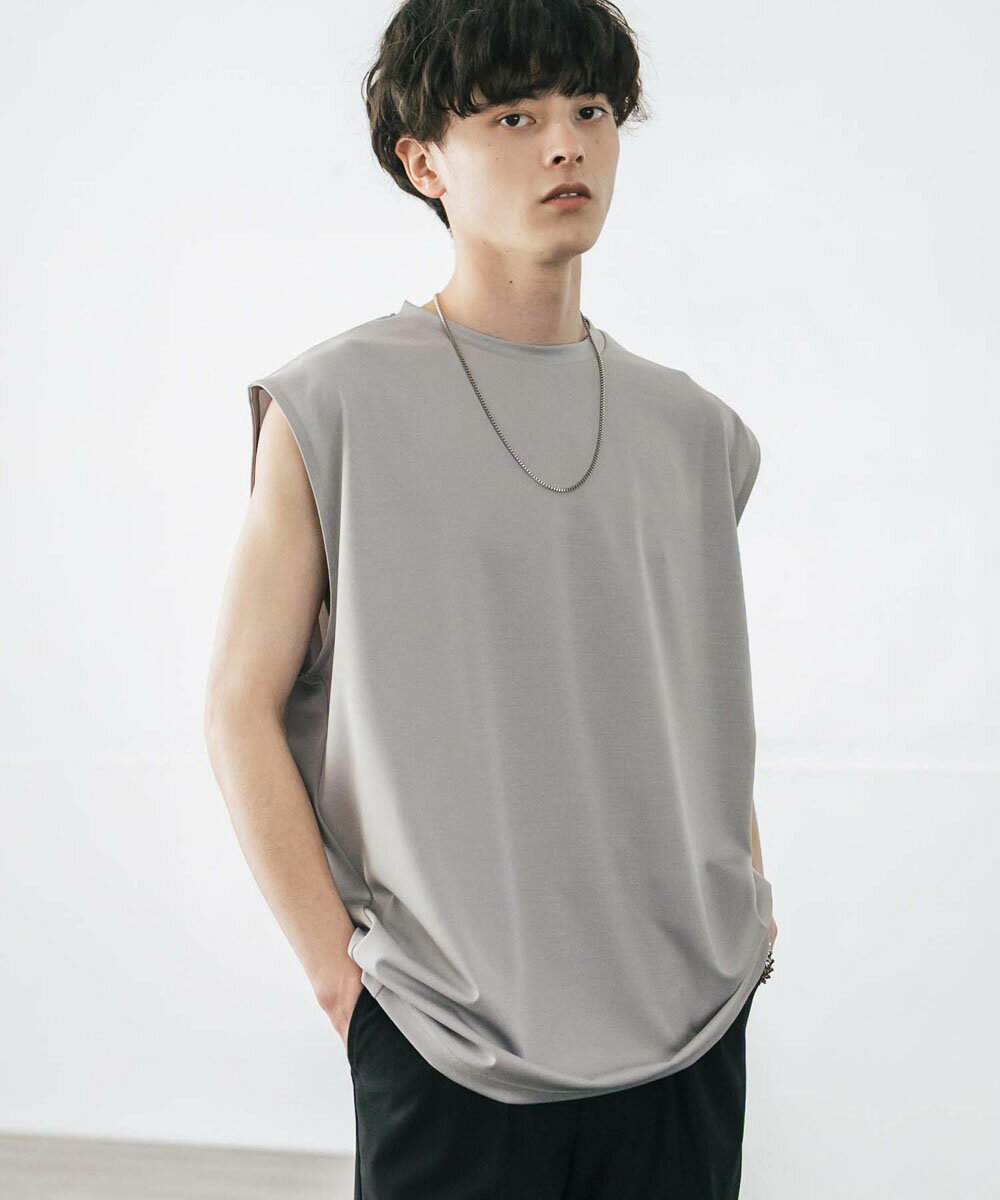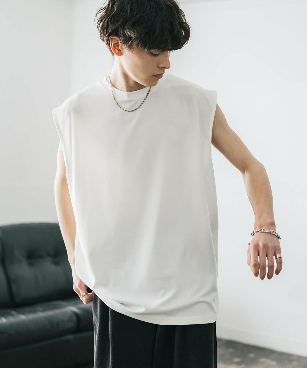 接触冷感 タンクトップ ノースリーブ ストレッチ メンズ レディース カットソー 無地 オーバーサイズ ドロップショルダー ワイド ルーズ リラックス ゆったり 清涼感 ひんやり クールタッチ 軽い インナー レイヤード 重ね着 ポンチ カジュアル ゆうパケット 送料無料 14296