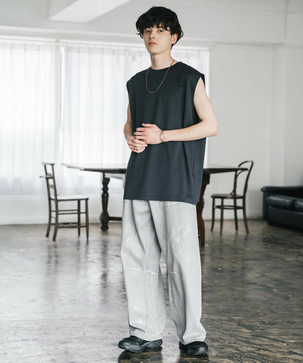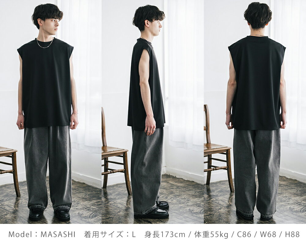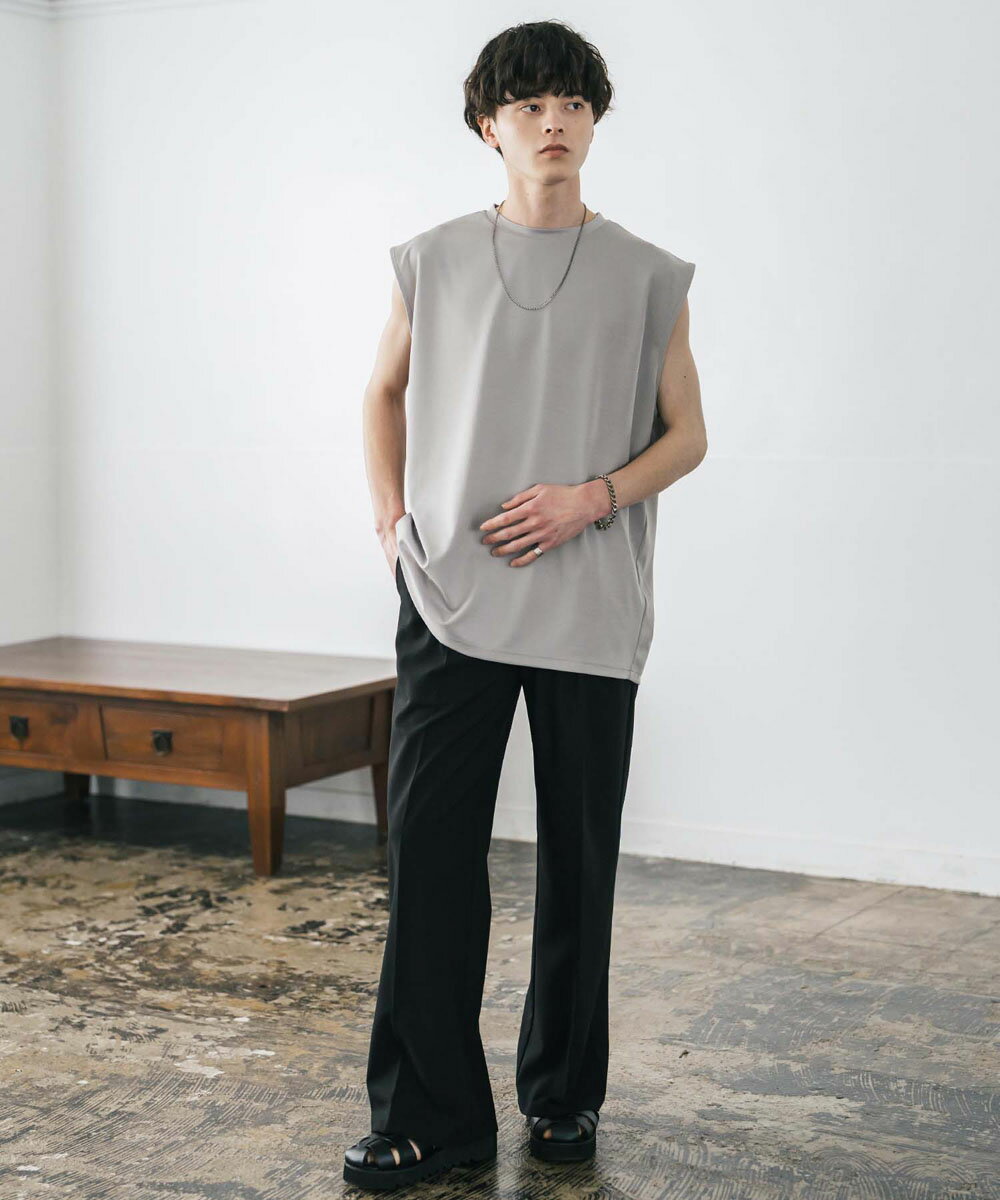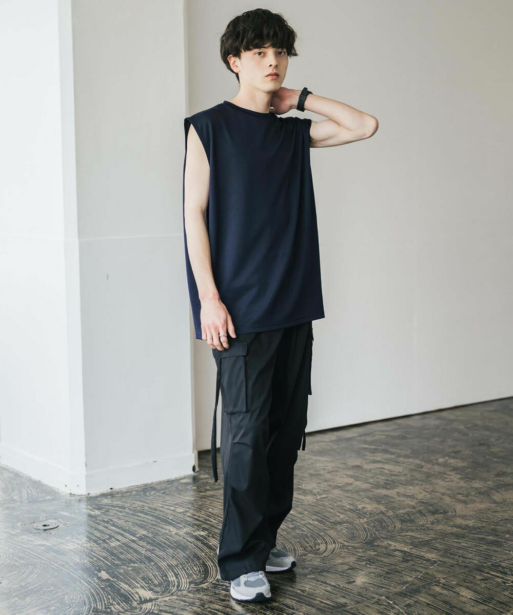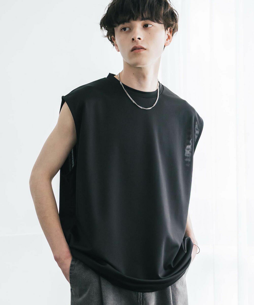 接触冷感 タンクトップ ノースリーブ ストレッチ メンズ レディース カットソー 無地 オーバーサイズ ドロップショルダー ワイド ルーズ リラックス ゆったり 清涼感 ひんやり クールタッチ 軽い インナー レイヤード 重ね着 ポンチ カジュアル ゆうパケット 送料無料 14296