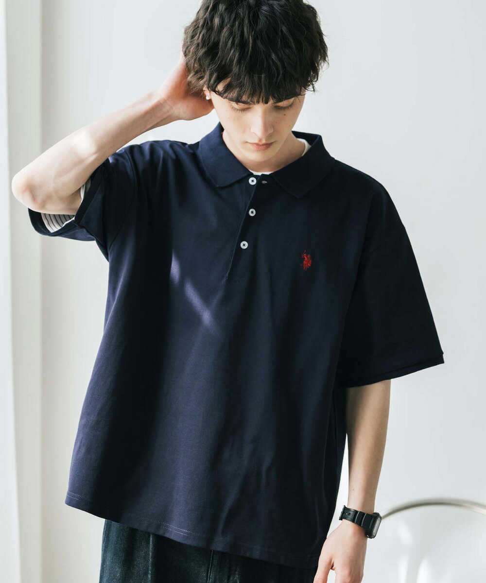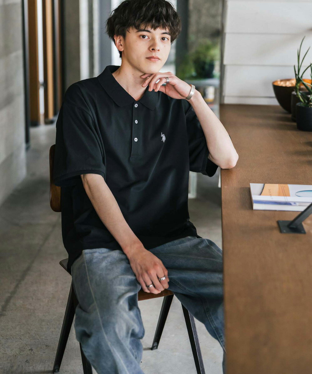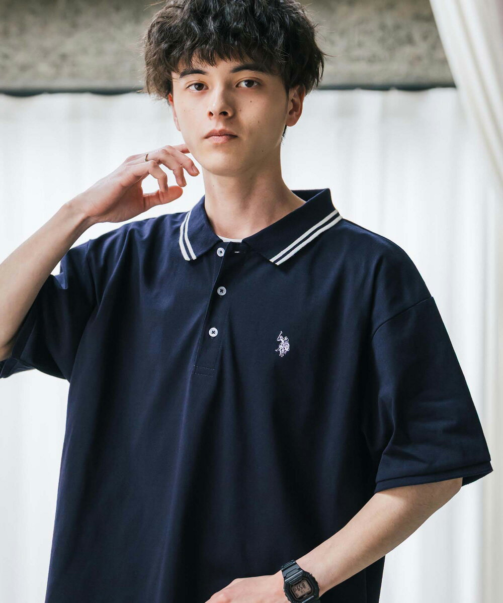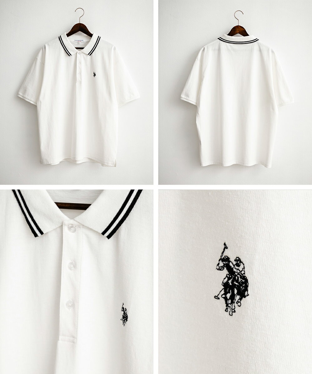 U.S. POLO ASSN. ユーエスポロアッスン ポロシャツ プルオーバー 半袖 メンズ レディース 天竺 オーバーサイズ ビッグシルエット ロゴ刺繍 ワンポイント 無地 ラインリブ ルームウェア 別注 コラボ 限定 シンプル カジュアル ストリート ゴルフ 14369